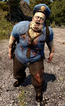 我通常喜欢蜘蛛,但不喜欢那些半人半僵尸的蜘蛛模仿者。它们拥有惊人的跳跃能力,能一跃跳过一堵高墙。它们过去能攀爬垂直的墙壁,但现在它们有一种更难对付的能力。 生命值:125 狂暴状态生命值:300 辐射状态生命值:550 感染的警察