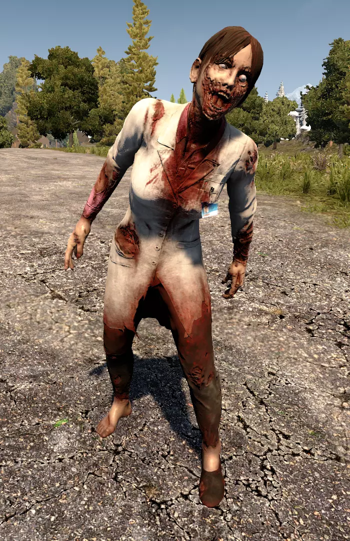 你最好永远不要看到她和她的孩子们在一起。母僵尸就像母熊一样,一旦它们认为你要带走它们的孩子,就会不顾一切地发起攻击。 生命值:150 狂暴状态生命值:350 辐射状态生命值:650 防护服僵尸