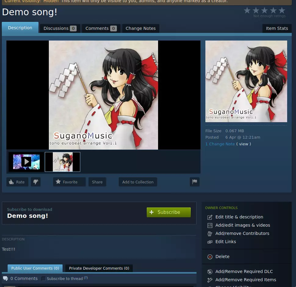 同时请确保将你的歌曲设置为对所有人可见,否则没有人能够游玩它。 在创意工坊之外分享歌曲
