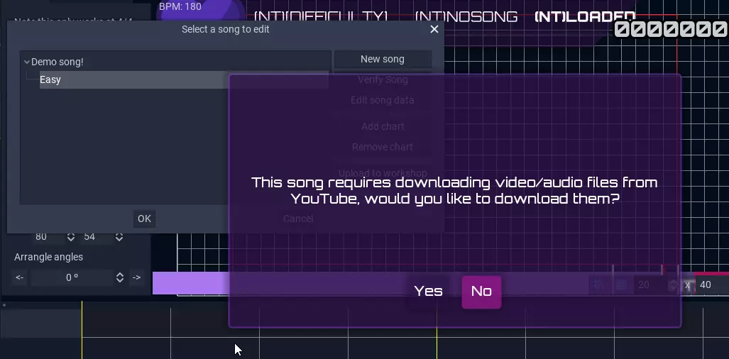 编辑我们的谱面 为了编辑我们的歌曲,我们需要选择谱面并点击确定。如果你选择了YouTube视频作为音频或视频源,系统会提示你下载该视频。
