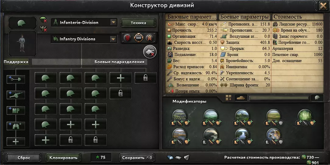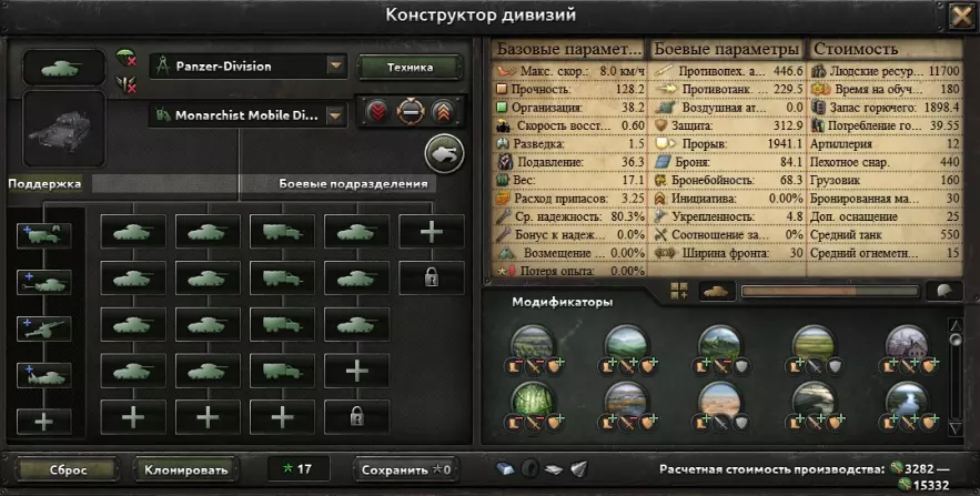 将战线宽度(以下简称战线宽度)扩展至30,这使得能够组建更强大的师。 后期坦克模板(1943年~游戏结束)