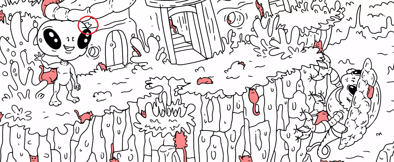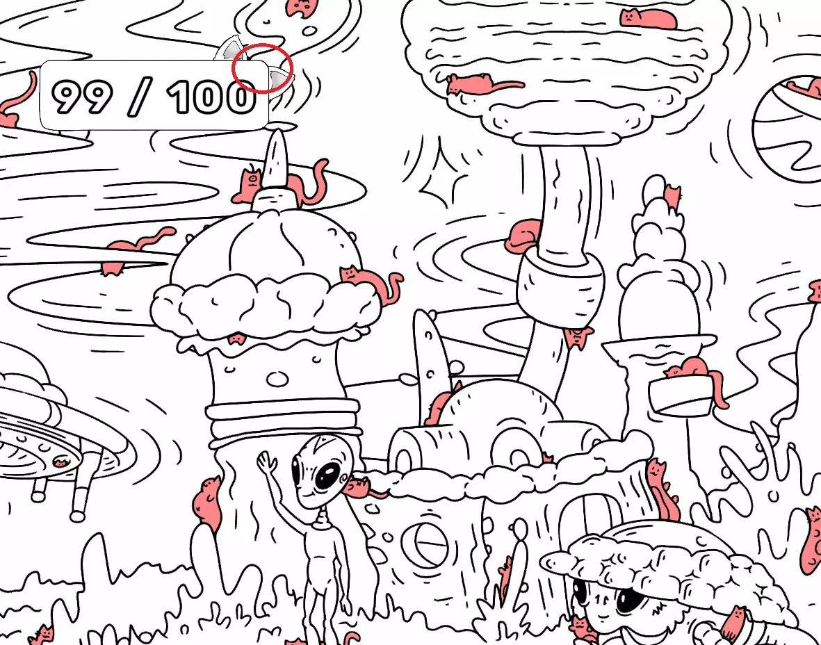 大家好, 本指南旨在帮助你找到所有隐藏的猫咪。有些猫咪很难被发现,所以如果你在寻找遗漏的猫咪以完成游戏,可以随时使用本指南或参考一下。保证能达成100%成就! 祝你玩得开心! 第一关 注意: 1) 最后一只猫咪在红色圆圈内。 2) 还有一只猫咪藏在计数条后面。 左侧