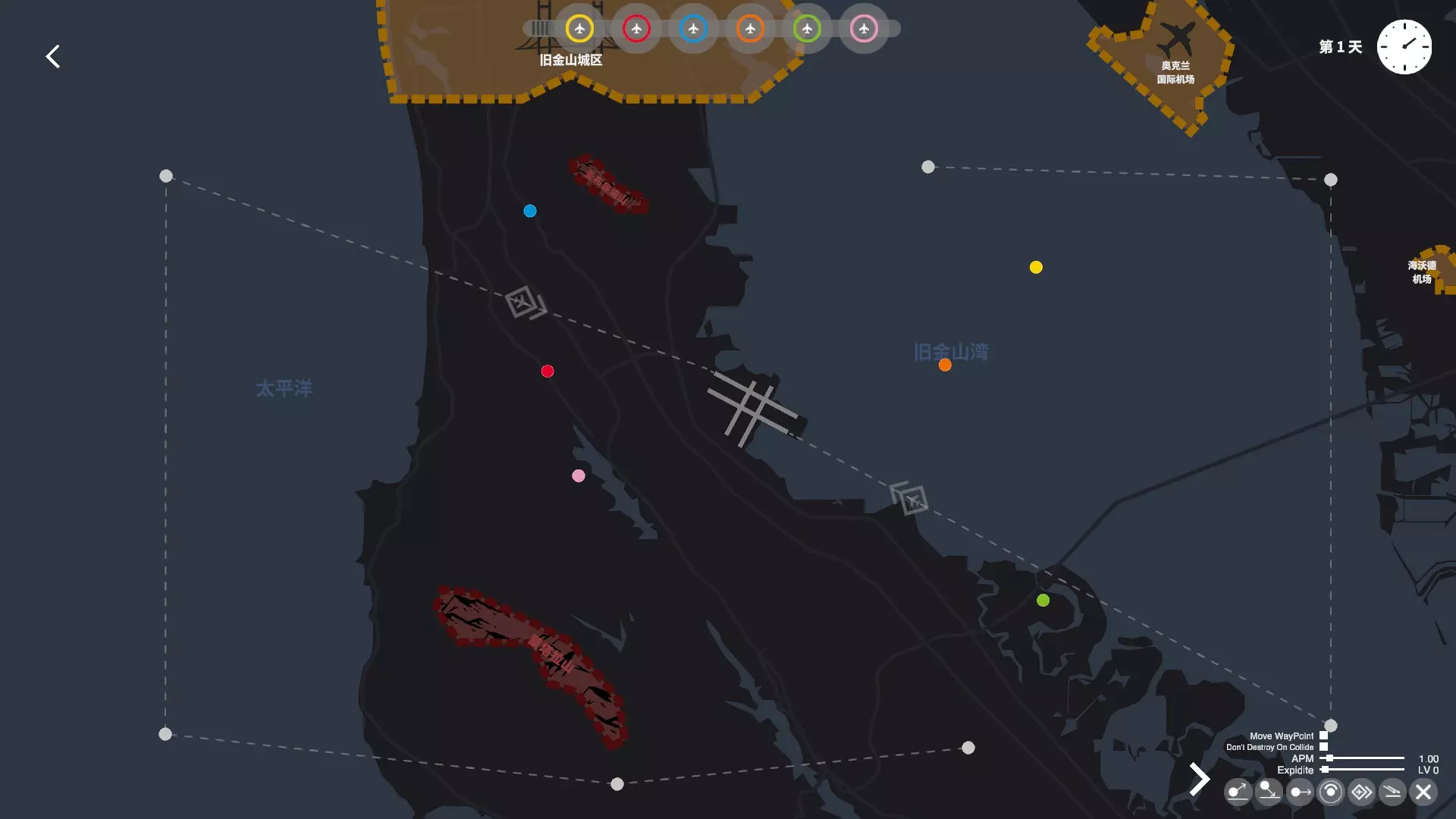 点击增加空域,灰色飞机在规避出场飞机的情况下可偷偷进场 11. 旧金山国际机场