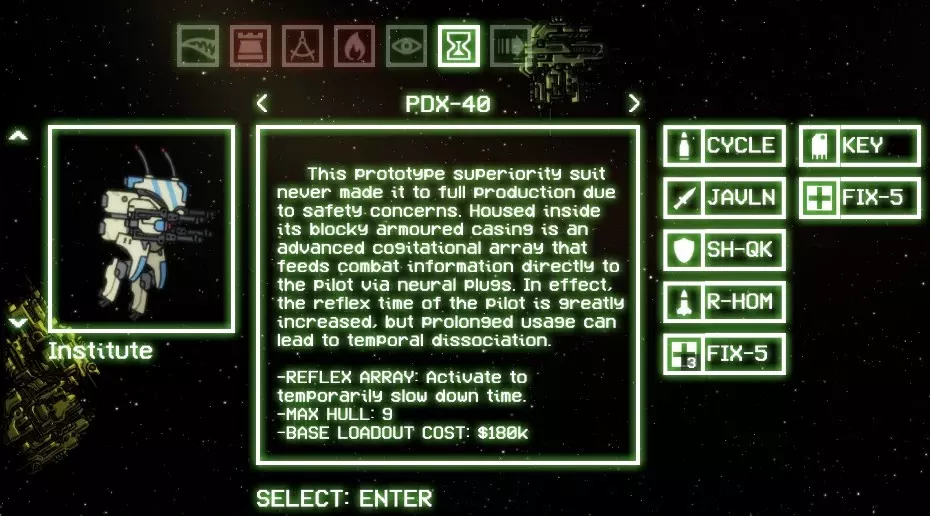 为了方便自己,建议解锁角色PDX-40。他需要消耗2个 artifact(神器)。该角色拥有相当高效的武器,以及按空格键激活的时间减缓能力。