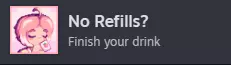 没有续杯? 与坐在桌边的切莉对话时,要么继续小口喝你的饮料,要么稍后回到桌边把饮料喝完。