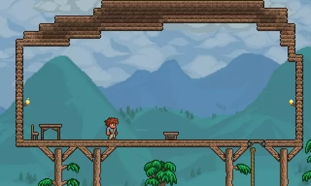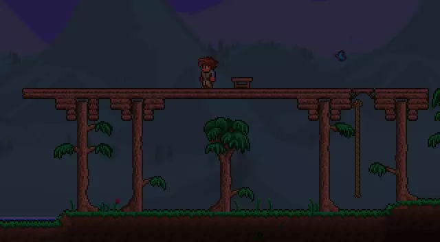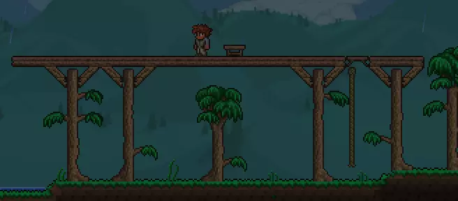将你的房子建在地面之上 最好把房子建在地面之上,以防止任何怪物进入并攻击你的NPC。 放置一个工作台(可用10个木材制作) 要放置绿色的物品【绳子】,你需要打破一些罐子,它们在世界各处都能找到。