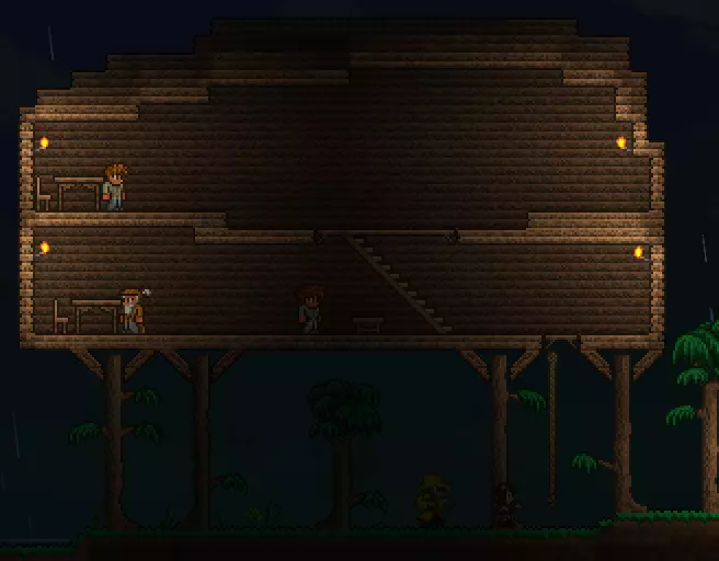 夜晚时分,星星会从天空坠落。你可以用星星制作非常有用的物品,但要记住,如果你没有趁手的武器,夜晚外出可能会很危险。