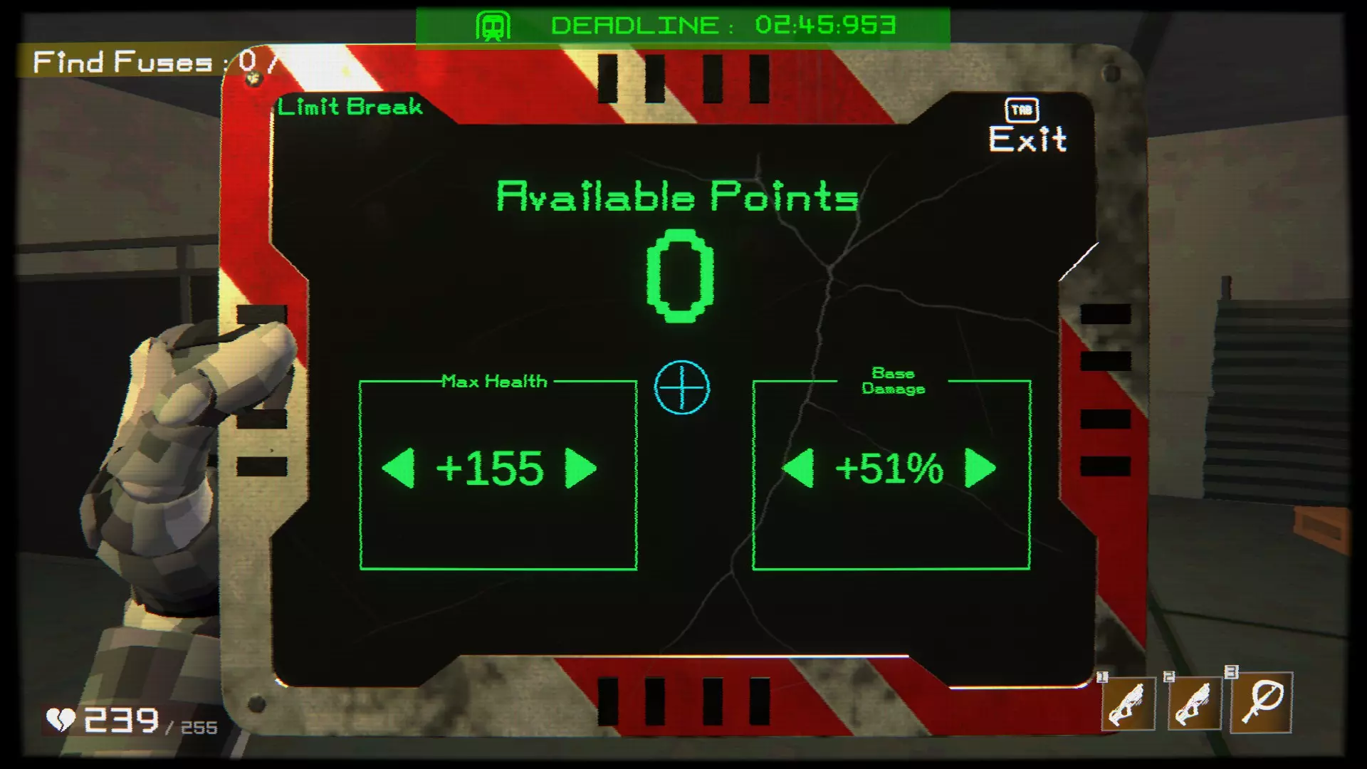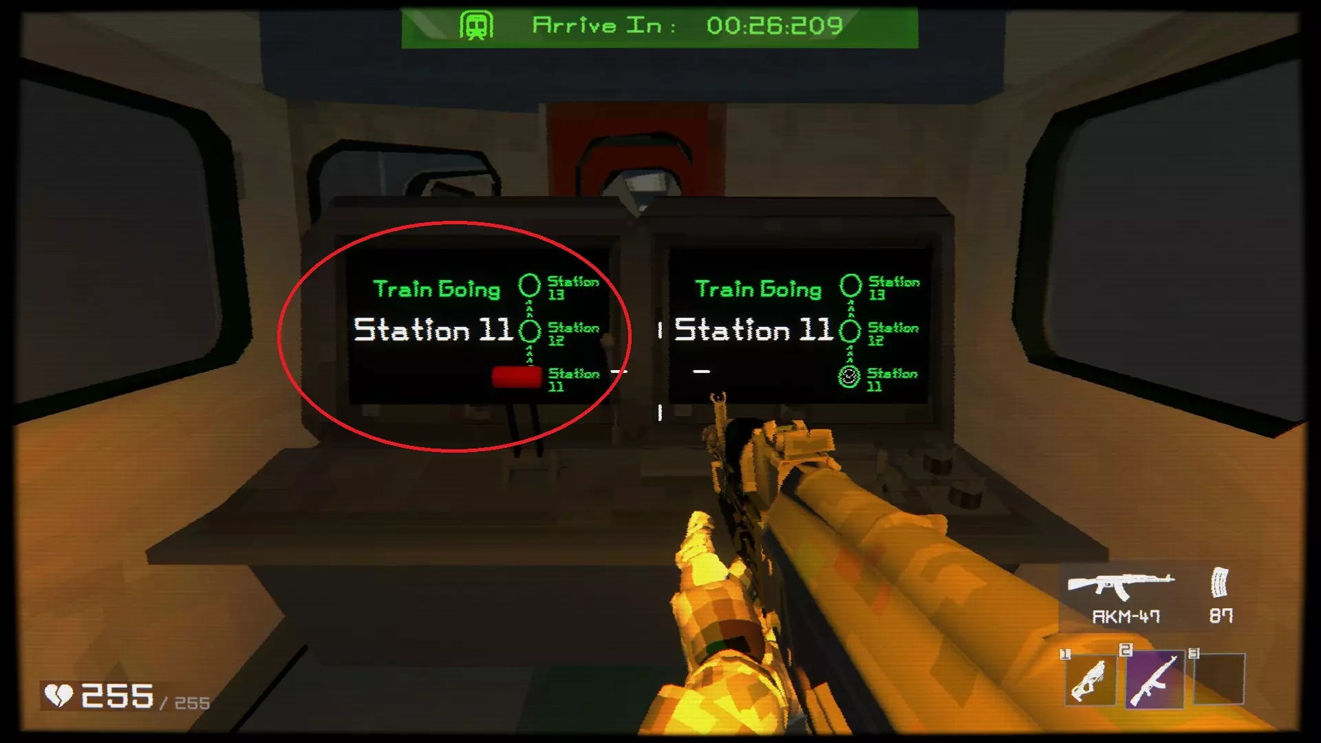 时间就是金钱 在20分钟内通关战役模式 这并不像看起来那么难,但确实有点 tricky。是时候学习速通技巧了。我强烈建议在尝试这个成就前,至少游玩并完成无尽模式的20个关卡,以更好地了解游戏机制,并学习如何更快地获取保险丝。至于升级优先级,首先应投入生命值,至少达到190(3个芯片),然后是每击杀恢复2点生命值(3个芯片),最后是武器弹药增加100%(5个芯片)。战术很简单,下火车后立即跑向上层,收集传说级(黄色)或史诗级(紫色)武器,然后冲进每个房间。检查墙壁上是否有黄色物品,跳过僵尸,返回门口时再收集。此时僵尸会聚集在一起,直接消灭它们即可。最好使用传说级武器或带有爆炸效果的武器。不要浪费时间收集技能芯片。前6个地铁站必须快速完成,因为总共有1-3个保险丝。有时你会很幸运,在一楼仅2个房间内就找到3个保险丝,这完全取决于运气和你的速度。为了获得最佳结果,请专注于以下时间: 1号/2号地铁站=1个保险丝-45秒=1.5分钟 3号/4号地铁站=2个保险丝-1分15秒=2分钟5分钟 第5/6号地铁站=3个保险丝-2分钟=4分钟 第7/8号地铁站=4个保险丝-3分钟=6分钟 第9号地铁站=5个保险丝-4分钟=4分钟 这份快速的速通车站攻略应该能帮助你提升时间把控: 关键在于迅速回到列车上,不要在击杀来袭的僵尸上浪费时间,这里有个快速通过的简单技巧。跟随绿灯,它们会指引你通往楼梯。到达楼梯后,始终要紧靠右侧或左侧的墙壁。如果上方没有来袭的僵尸,你可以从楼梯顶部直接跳下,快速到达底部。跳的时候,确保你拥有能够产生爆炸范围的武器,以便在落地前清理僵尸;或者使用能够一击击杀僵尸并穿透它们的武器,比如【紫色狙击枪】或任何传说级武器。然后继续跳向火车。到达火车后,立即点击生命值再生,并启动火车以快速到达。在这4秒内,使用Tab键进行升级,一旦车门打开就开始连跳。