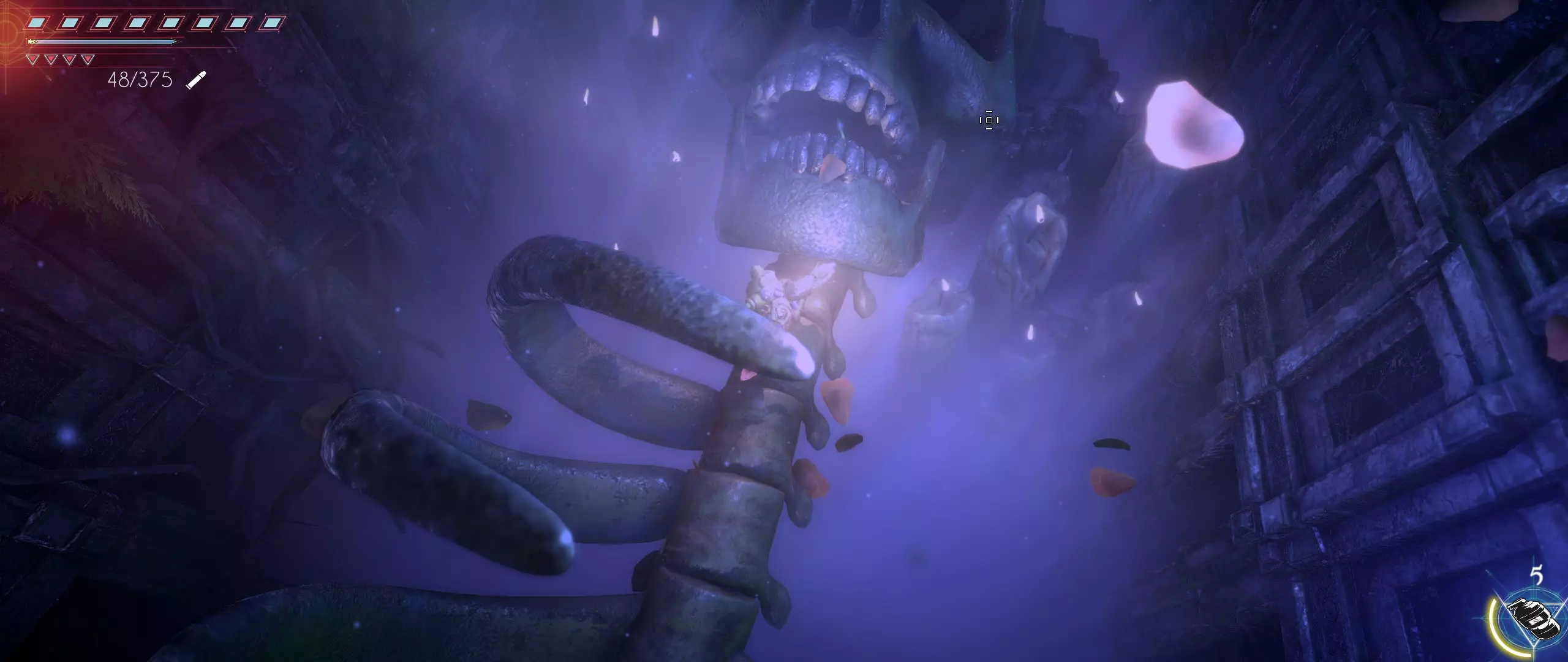 脊椎骨将我们引向一个巨大的颅骨,第十二颗种子就藏在颅骨内部。现在克利德已经拥有四个额外的生命值格子了。