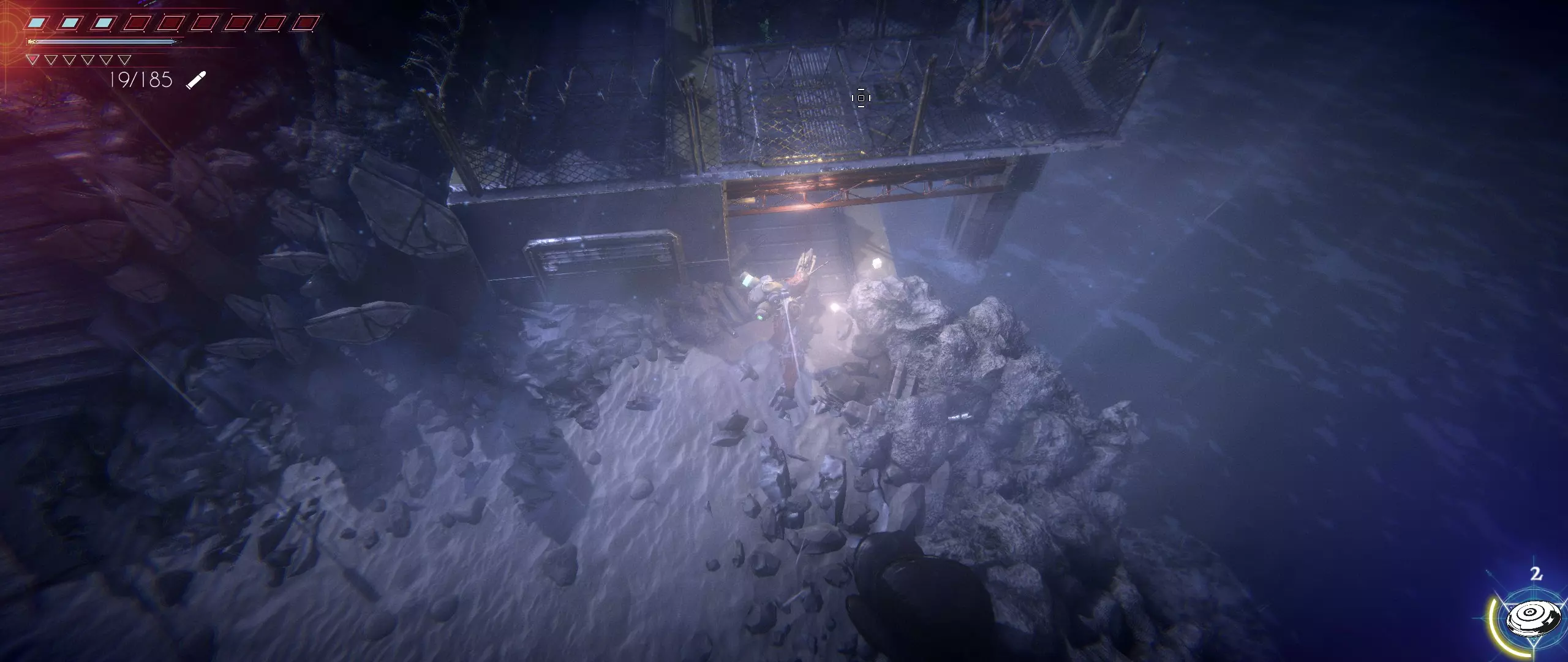 死海之岛 离开鱼类基地的安全区域后,需要抵达岸边。岸边环绕着基地区域,很难错过。需朝着下方和右方前进,直至岸边尽头,那里与一条金属通道相连,通道上方被基地第二层的部分结构覆盖。通道尽头会有第十三颗种子。