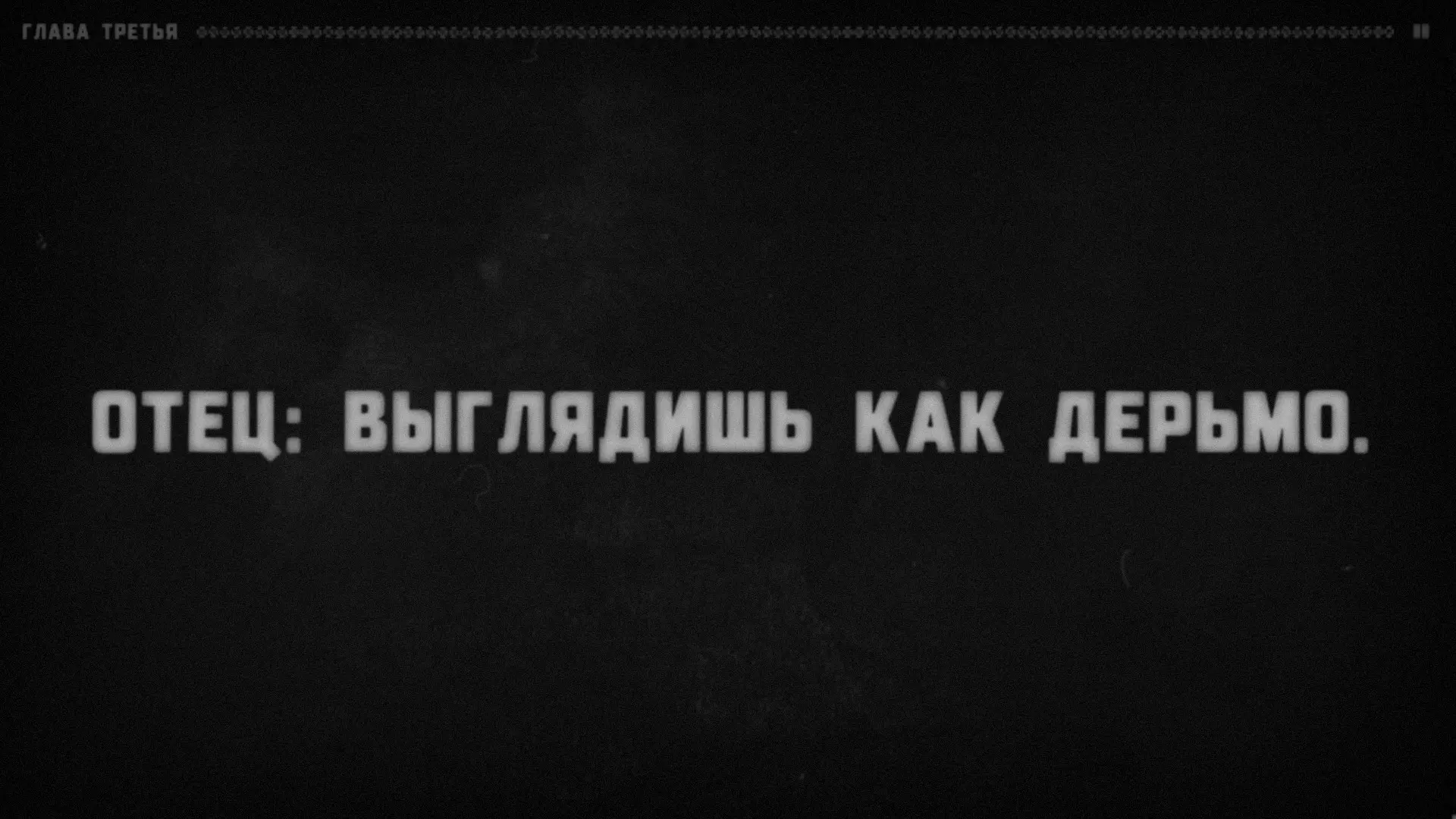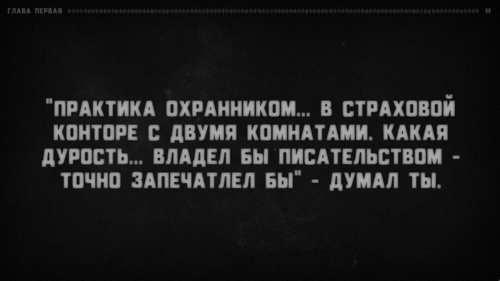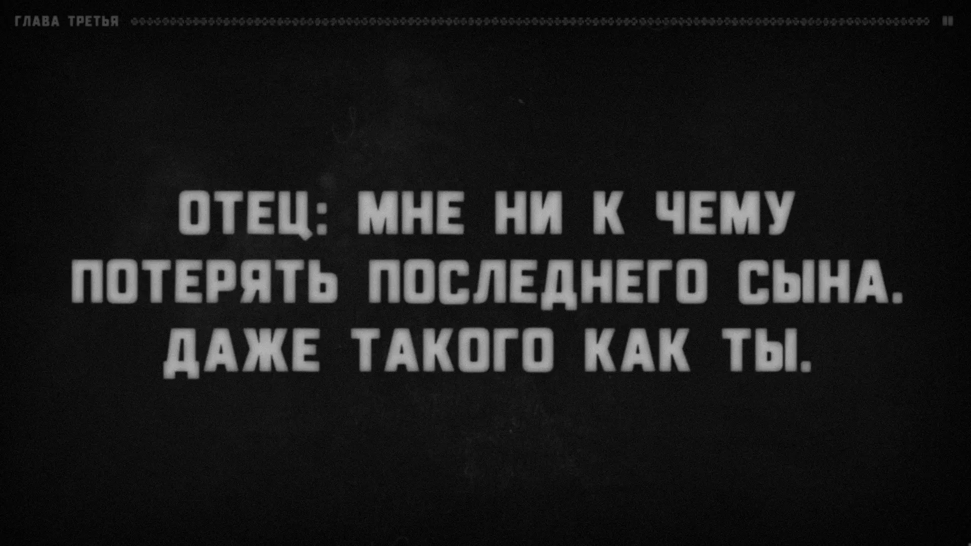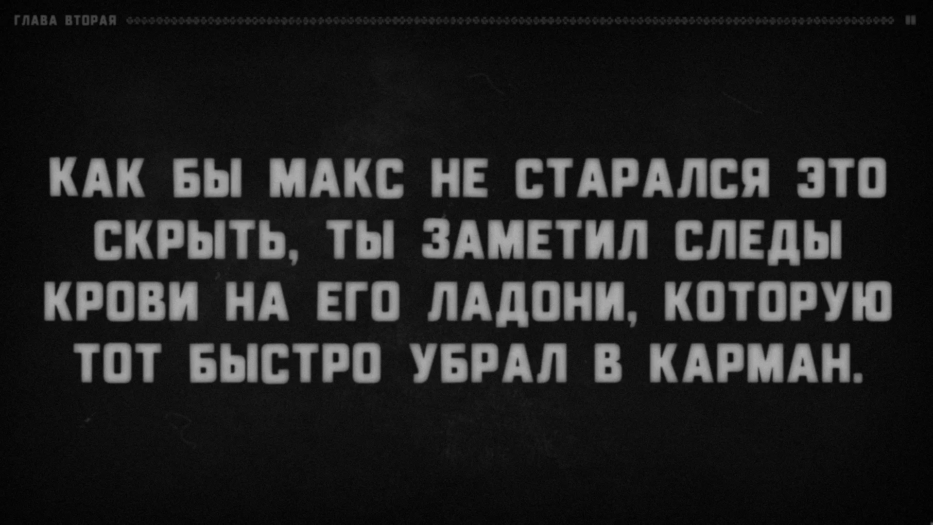 很明显,有某个叙述者在对听众说话,而听众的角色由玩家扮演。支持这一点的还有成就【Сломанная история】(要获得该成就,需要连续十次接听电话)。叙述者会语无伦次,问道:“我清楚地记得……他绝对没有听到回答!我说到哪儿了?”——然后会哗啦哗啦地翻着纸页,说道:“看来得从头开始了”——接着便会重新从第一章开始。注意:他正在翻页。显然,这意味着叙述者正在朗读一个已经写好的故事。或许偶尔会给听者选择的权利(否则故事怎么会在上述“结局”处“中断”呢?不太可能是它自己中断的)。难道你就是叙述者?巧合实在太多了。我们确切知道三件事。