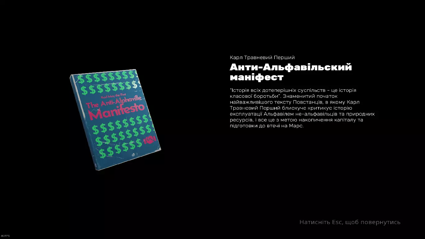 大家好,我最近制作了一个乌克兰语本地化补丁,并且很高兴用它通关了游戏。 仅翻译了文本(界面/字幕,不包含图像资源)。 翻译是基于英语进行的,并且覆盖在英文之上。 主要信息 就我个人而言,这个翻译的优点包括: - 保留了原始字体 - 成功在我所注意到的游戏中所有诗歌部分的翻译中保留了押韵。我已经反复检查过文本,但可能还是有疏漏之处——毕竟眼睛也会看花。如果大家有任何意见或建议,欢迎在评论区留言。 安装方法很简单:解压后将_Data文件夹放入游戏目录并覆盖文件。 或者使用Updater来简化操作(更新也更方便)。 这里为您提供几张截图作为预览: