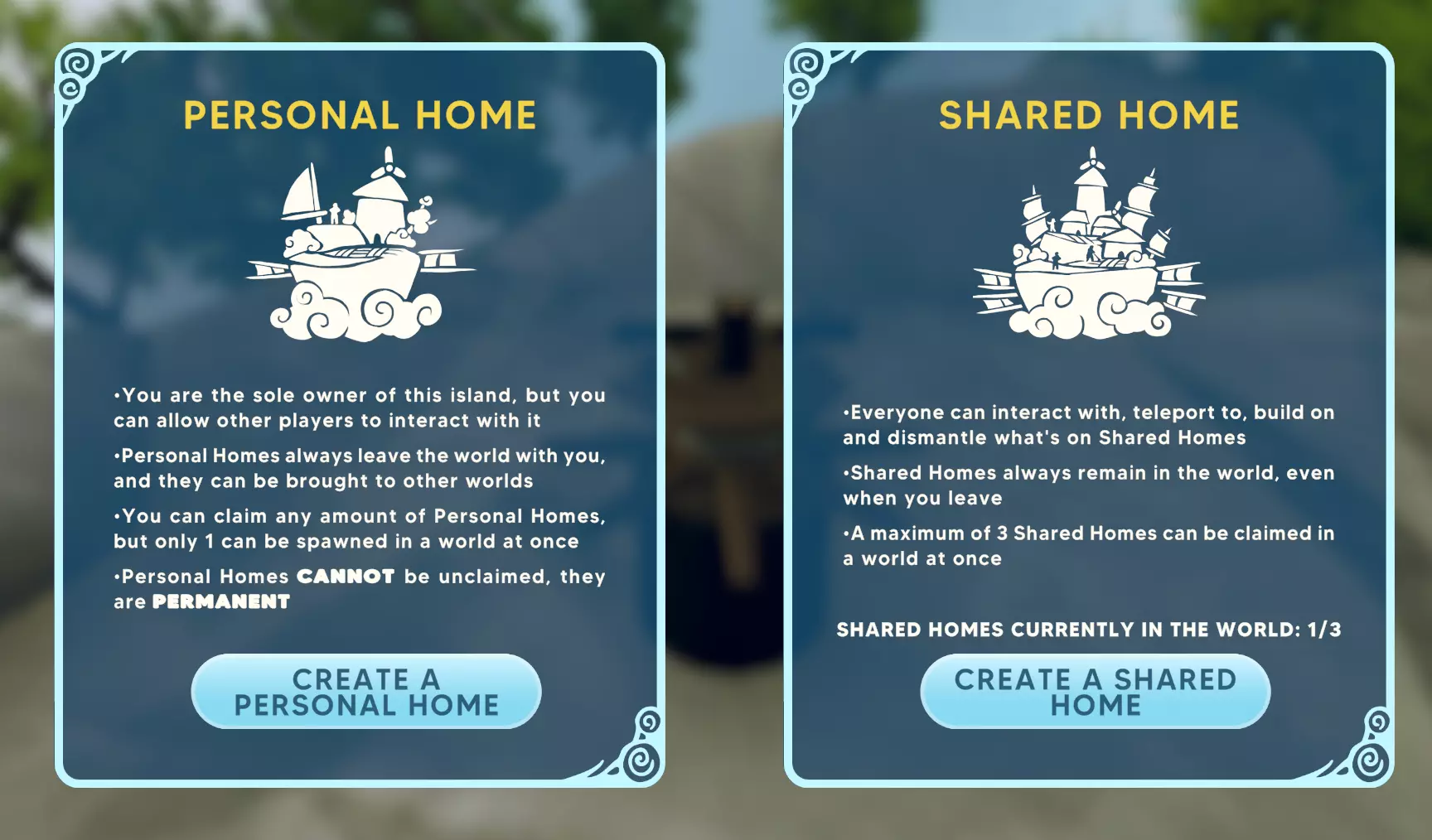 将你的家园岛屿导入多人游戏 在联机游玩时,可通过TAB菜单召唤你的岛屿。 若没有好友,可通过游戏主菜单加入任意服务器
