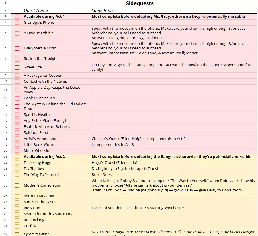 《布鲁姆镇:别样故事》清单(电子表格)