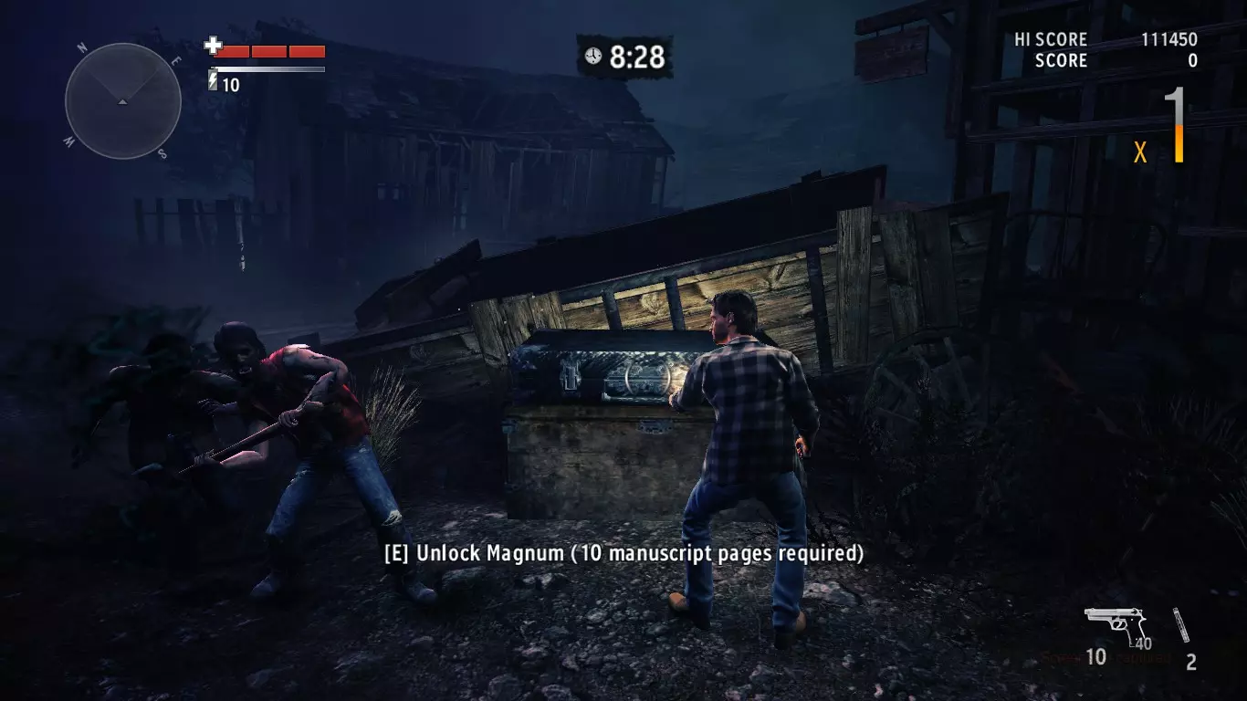 在我看来,【幽灵镇】地图是最简单的,原因如下: 尽快获取最好的武器。 我强烈推荐你获取【麦格农】,它比【9毫米手枪】和【左轮手枪】威力大得多。在主线剧情中只需找到10份【手稿页】就能解锁【麦格农】。 【幽灵镇】地图中【麦格农】的位置