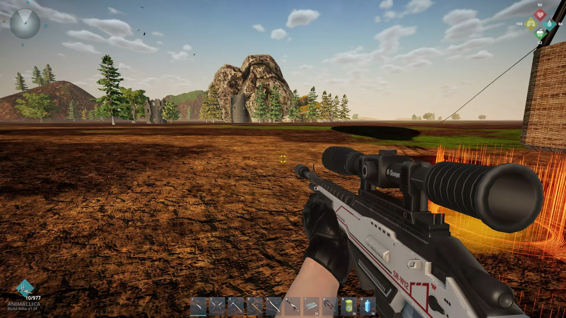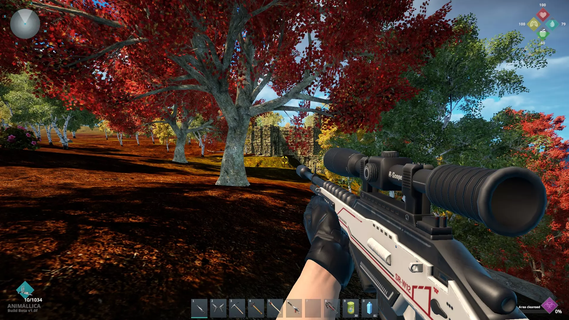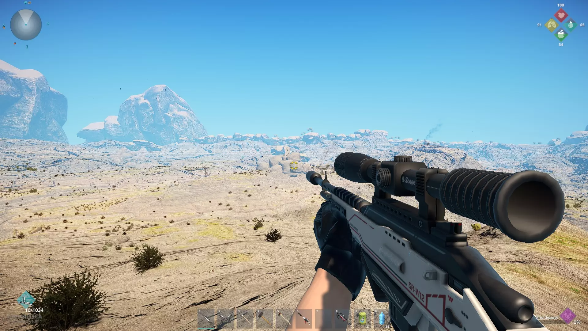 解决掉它们之后,骨头就躺在水中的一个小土堆上(如果你看不清楚,就在步枪的瞄准点位置)。为了方便参考,变异体生成器被保留了下来,哈哈。