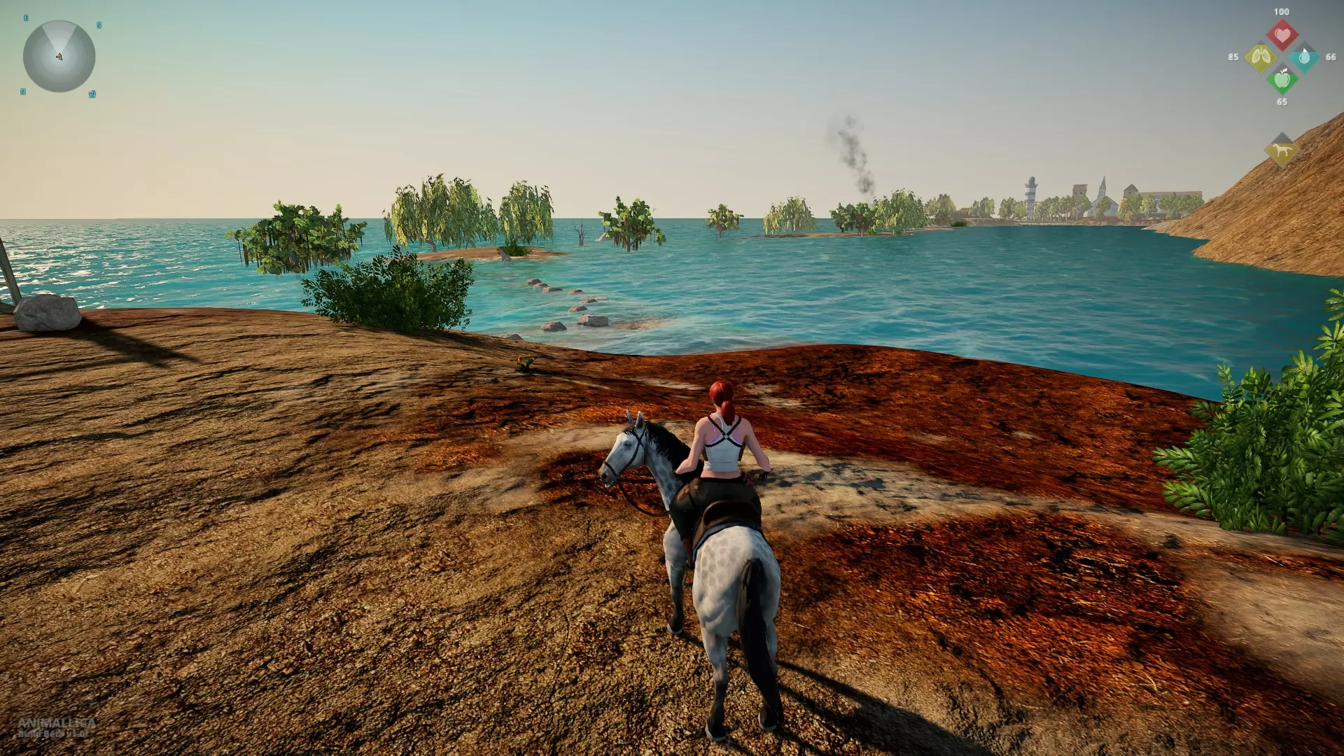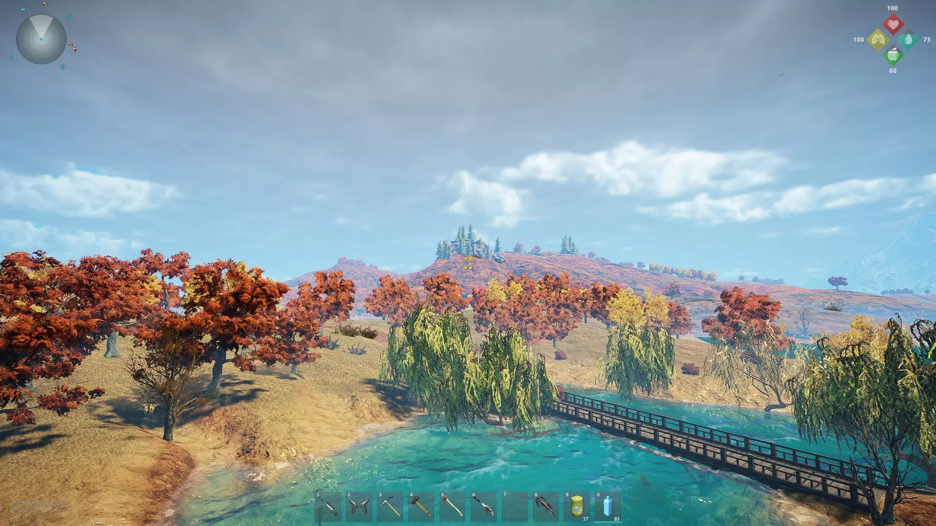 陆地基地 从前门离开陆地基地,前往海岸边的桥梁处,那里有一座部分淹没在水下的陆桥,可通往小镇。