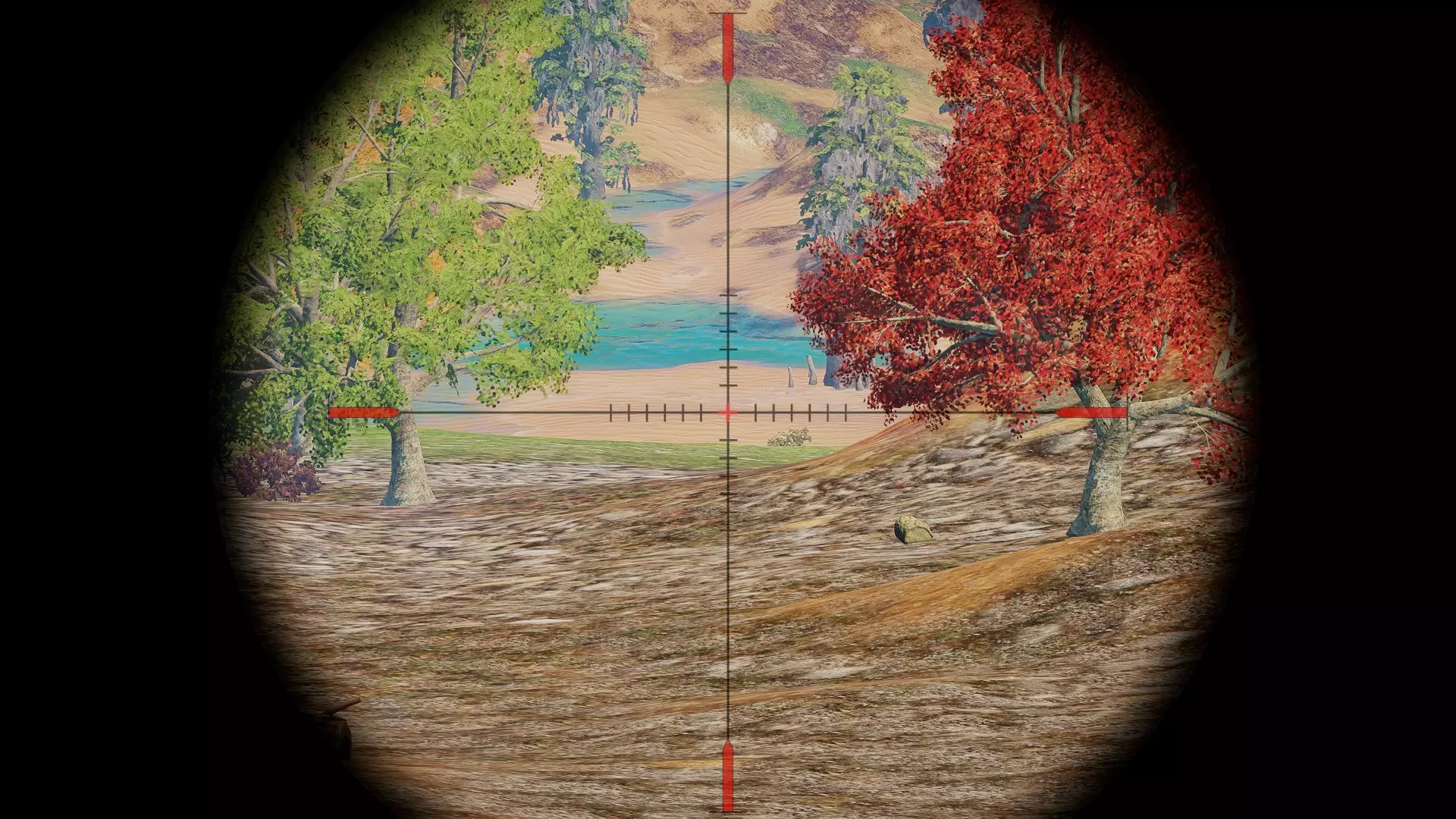 尸体港湾 从主城镇前往巨橡树,截图中光标下方中央位置的那棵模糊树木就是巨橡树。