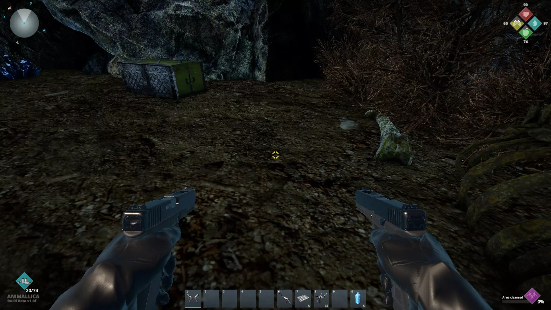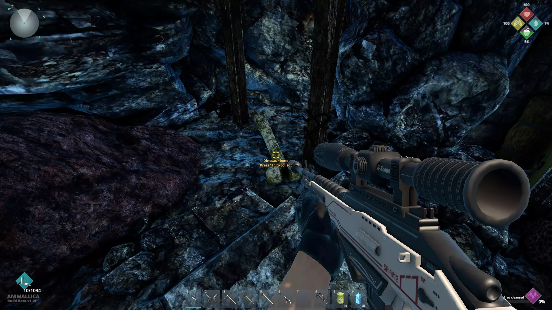 小心,洞穴里有一个突变体生成器!入口在城镇对面的岩石远端,骨头就在绿色箱子附近的地板上。
