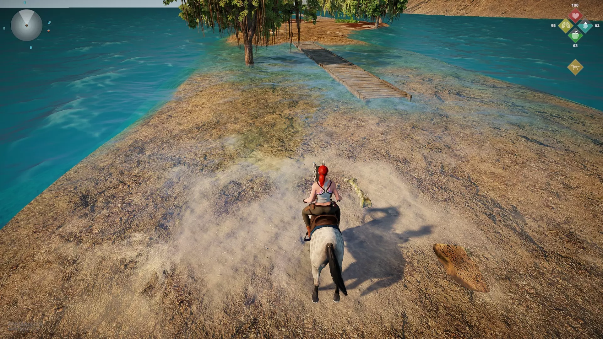 第二根骨头 前往气球以北的城堡,那里有一匹马,很容易找到,你可以在雷达上追踪图标(除非你移动了它)。 前往城堡左侧,那里有一个钓鱼小屋和一座木桥,然后过桥。