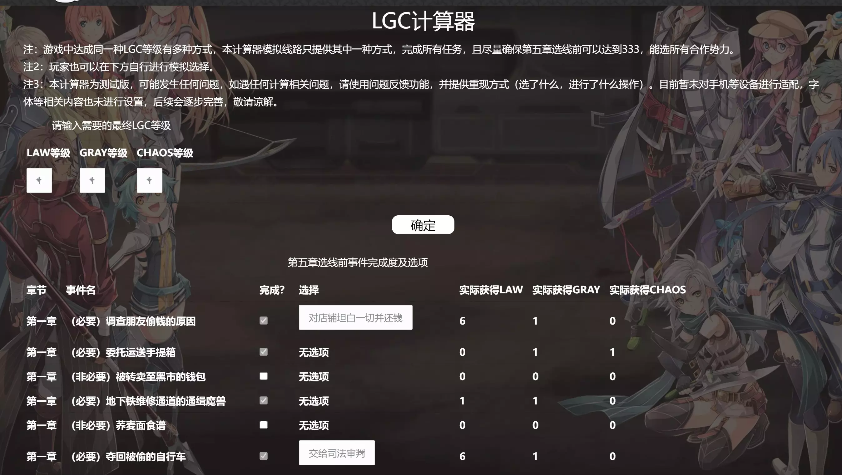 LGC选项模拟 可以用这个计算器模拟大部分路线,也可以自己选择选项,确认最终LGC等级