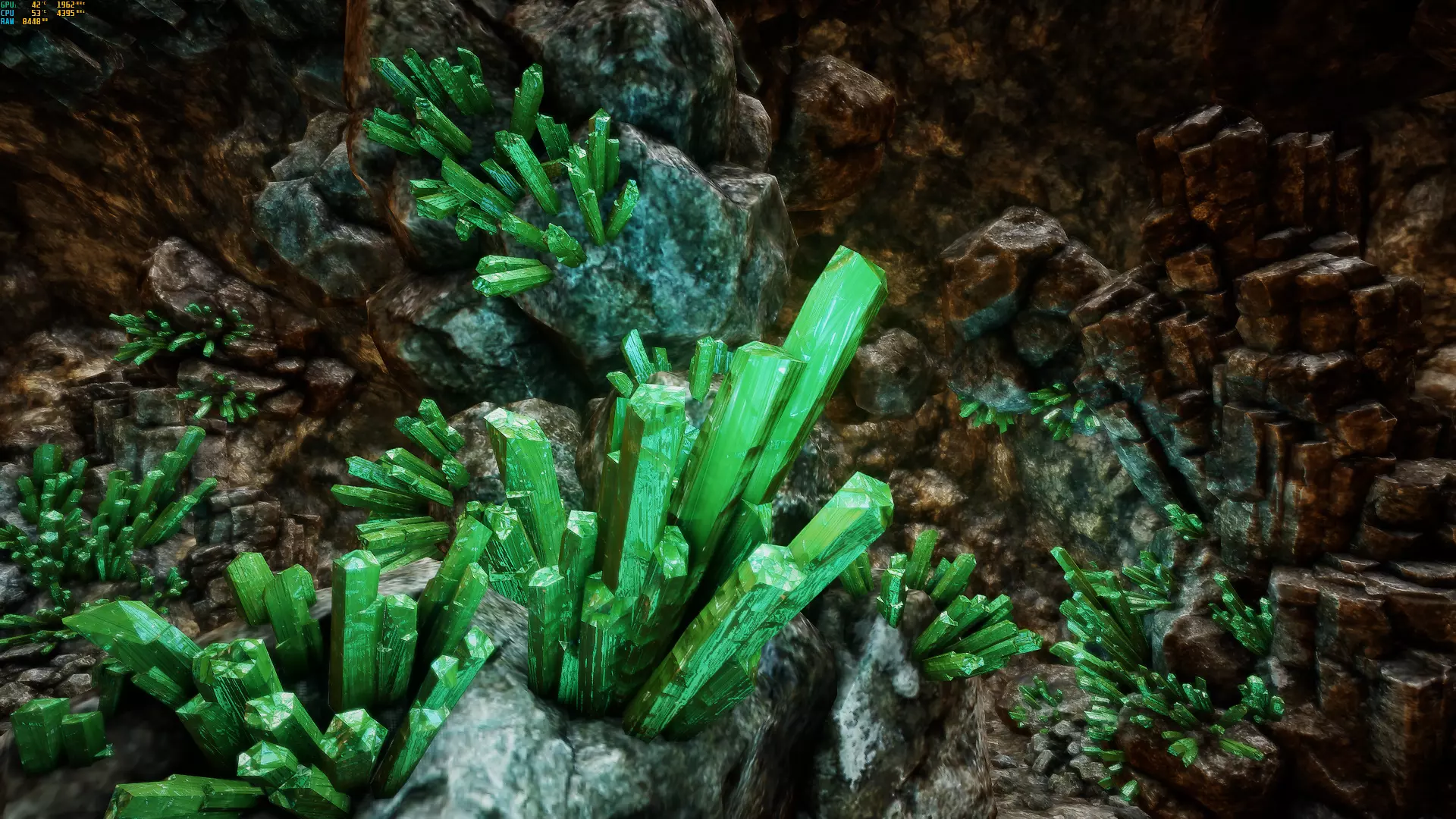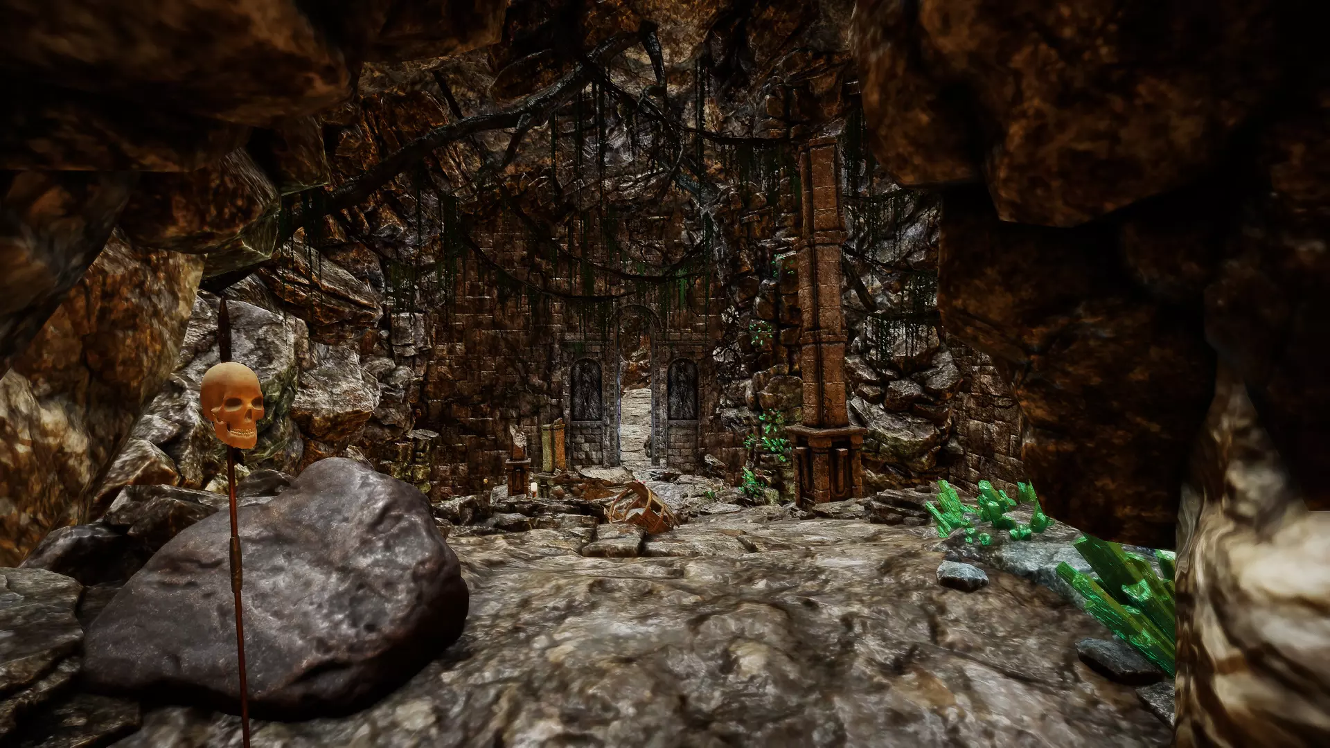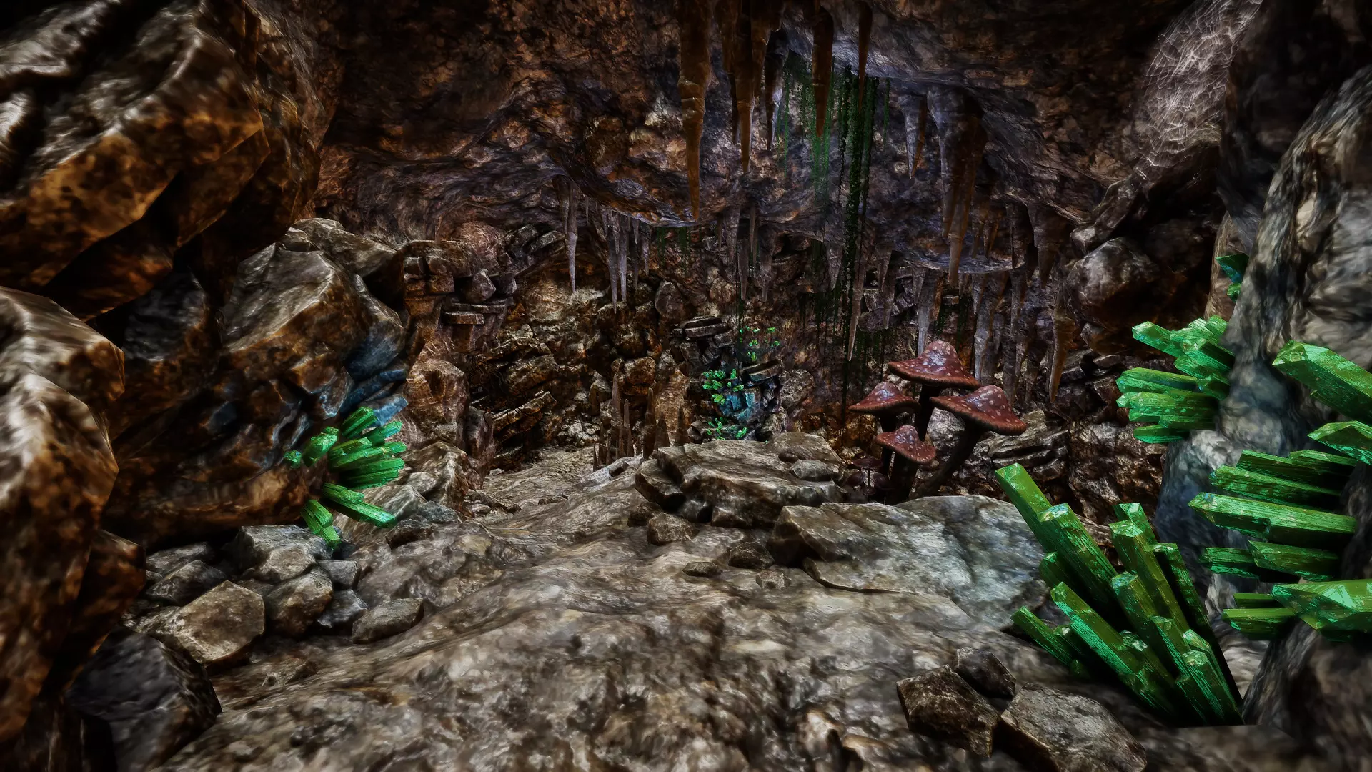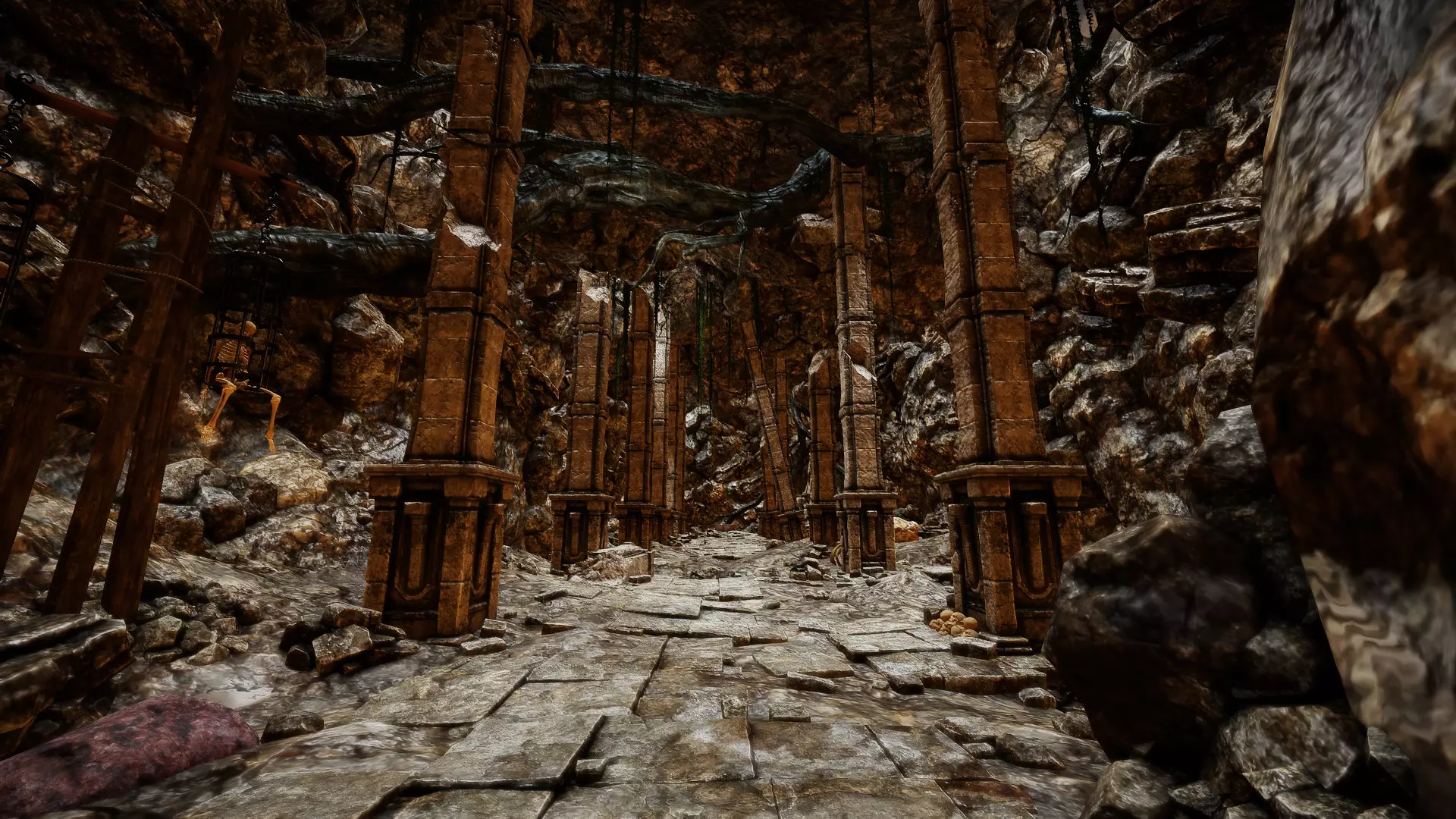 在走廊交叉口直行: 一直往下走。在有楼梯的下方走廊尽头,你会发现一个有几根洞穴石笋和钛矿石的区域。沿着下一条走廊走,很快就会遇到3只恶魔狼,要小心!