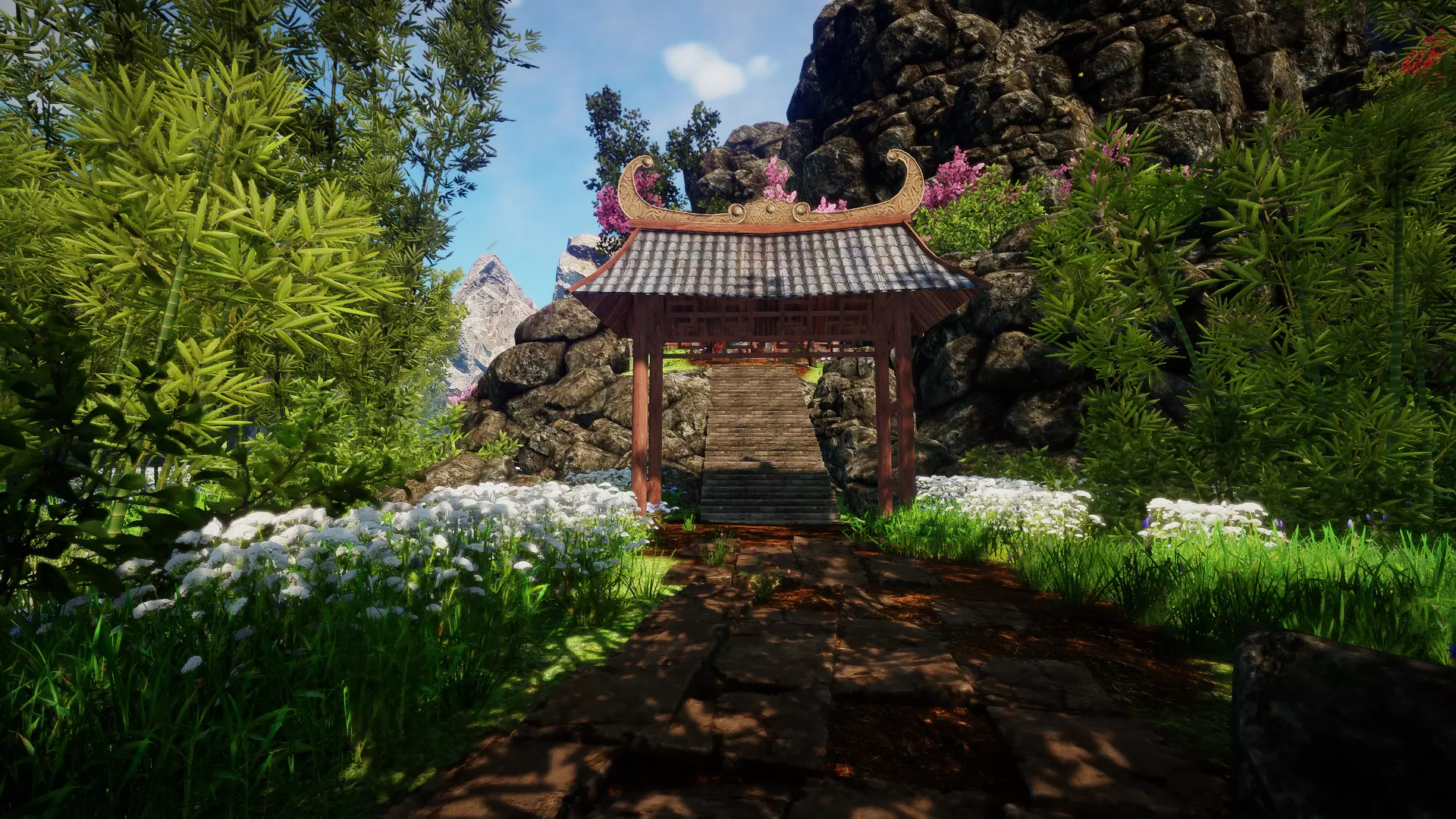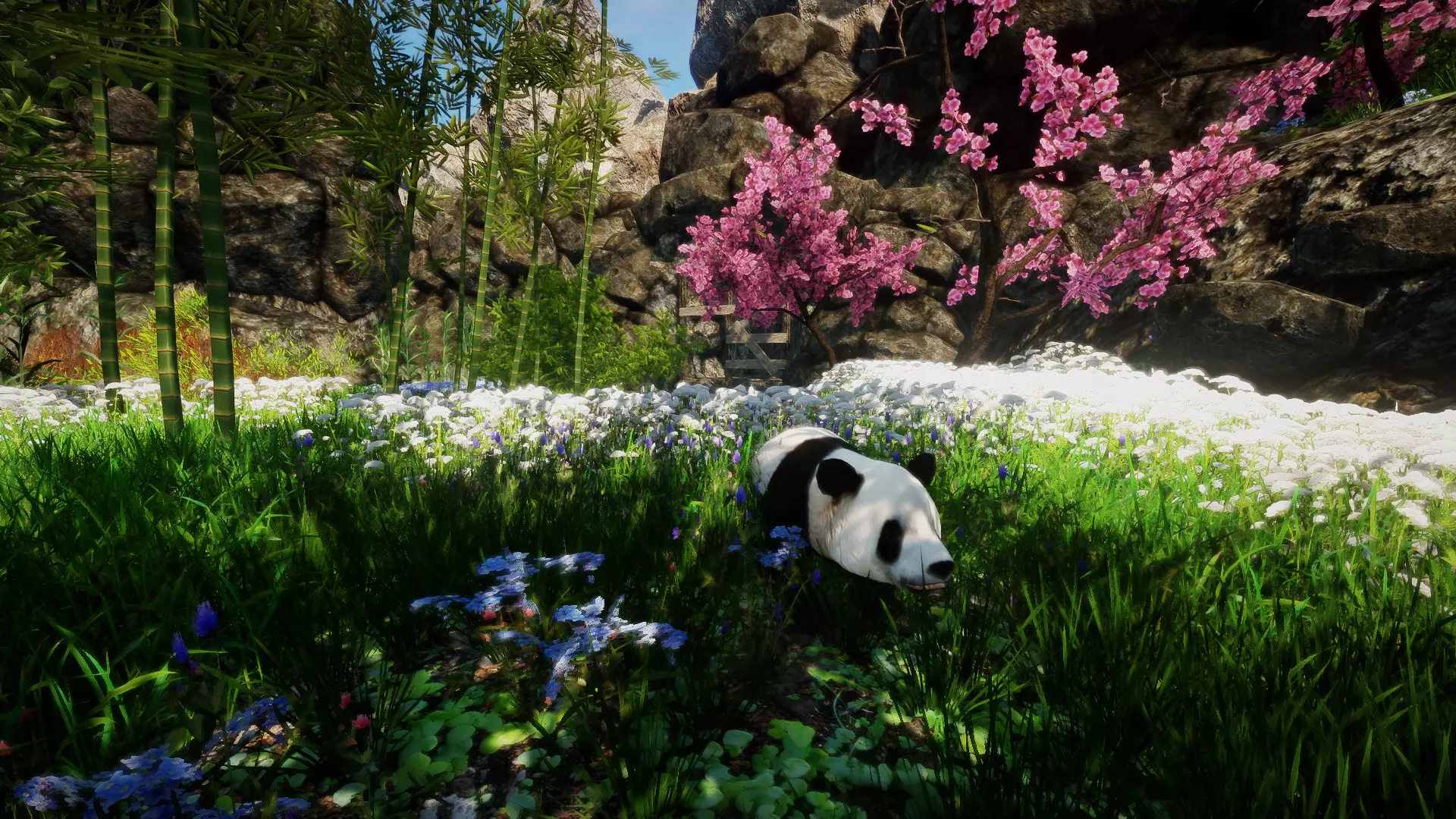 当你看到一段楼梯时,向左转并穿过竹林。不久之后你就能发现一只熊猫,继续穿过那片竹林即可。