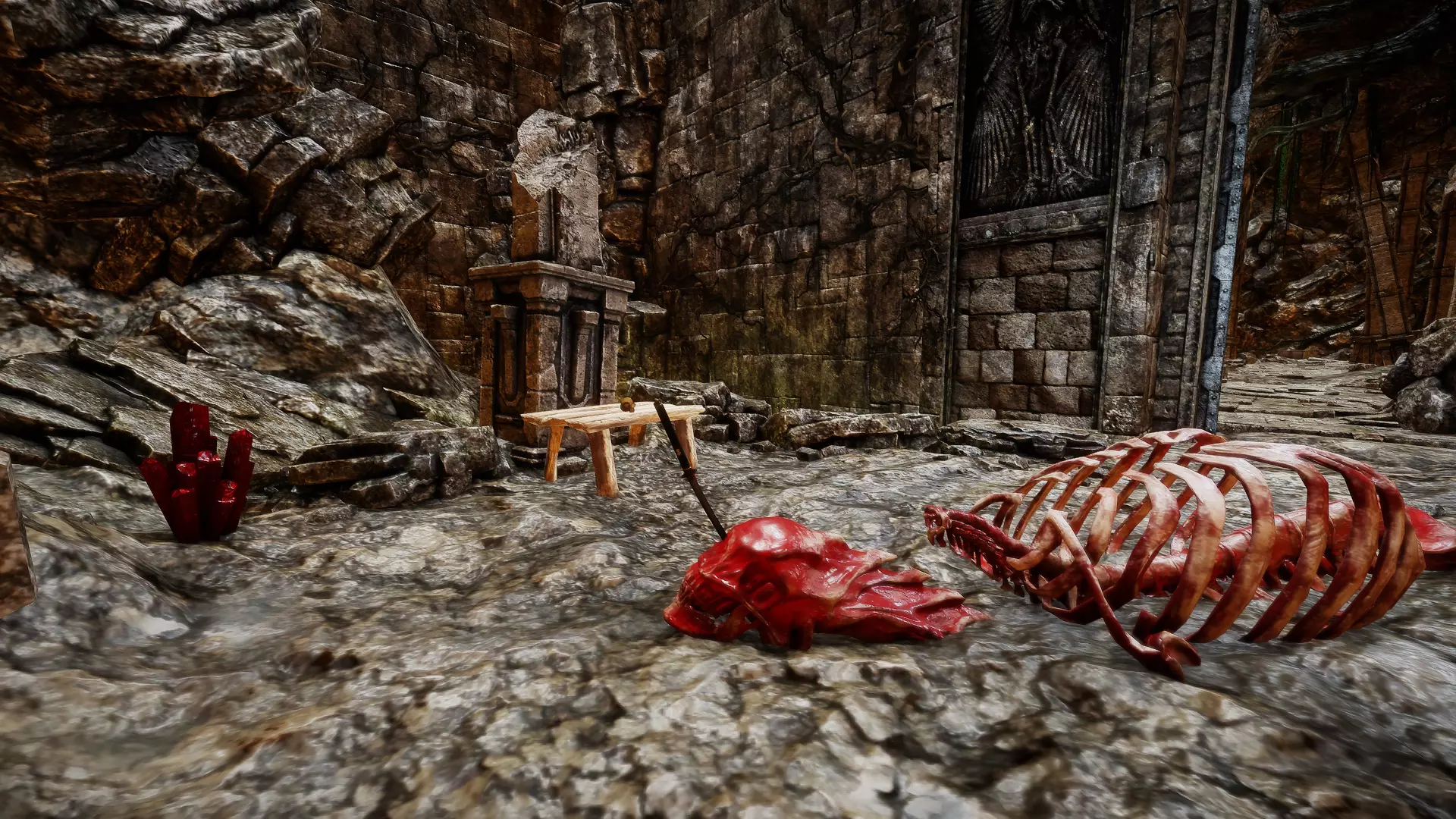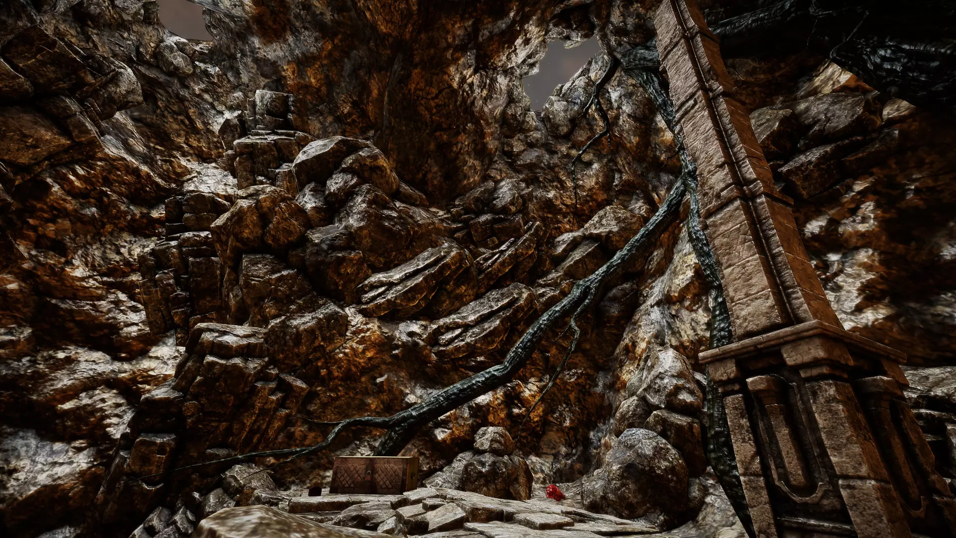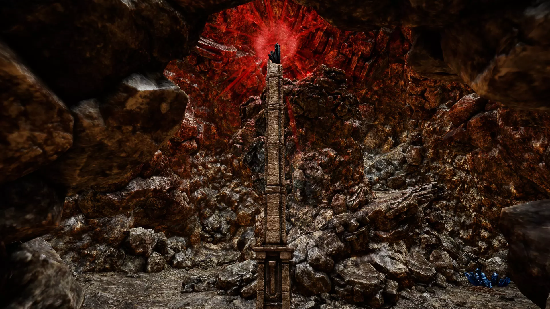 如果你向左转: 你会到达一个区域,在顶部可以找到一块黑暗灵魂碎片。 你可能会遇到2只恶魔狼。沿着石坡道上去,像开采其他种类的碎片一样开采这块碎片。别忘了也要开采右侧的蓝色碎片,这样你就完成这里的探索了。