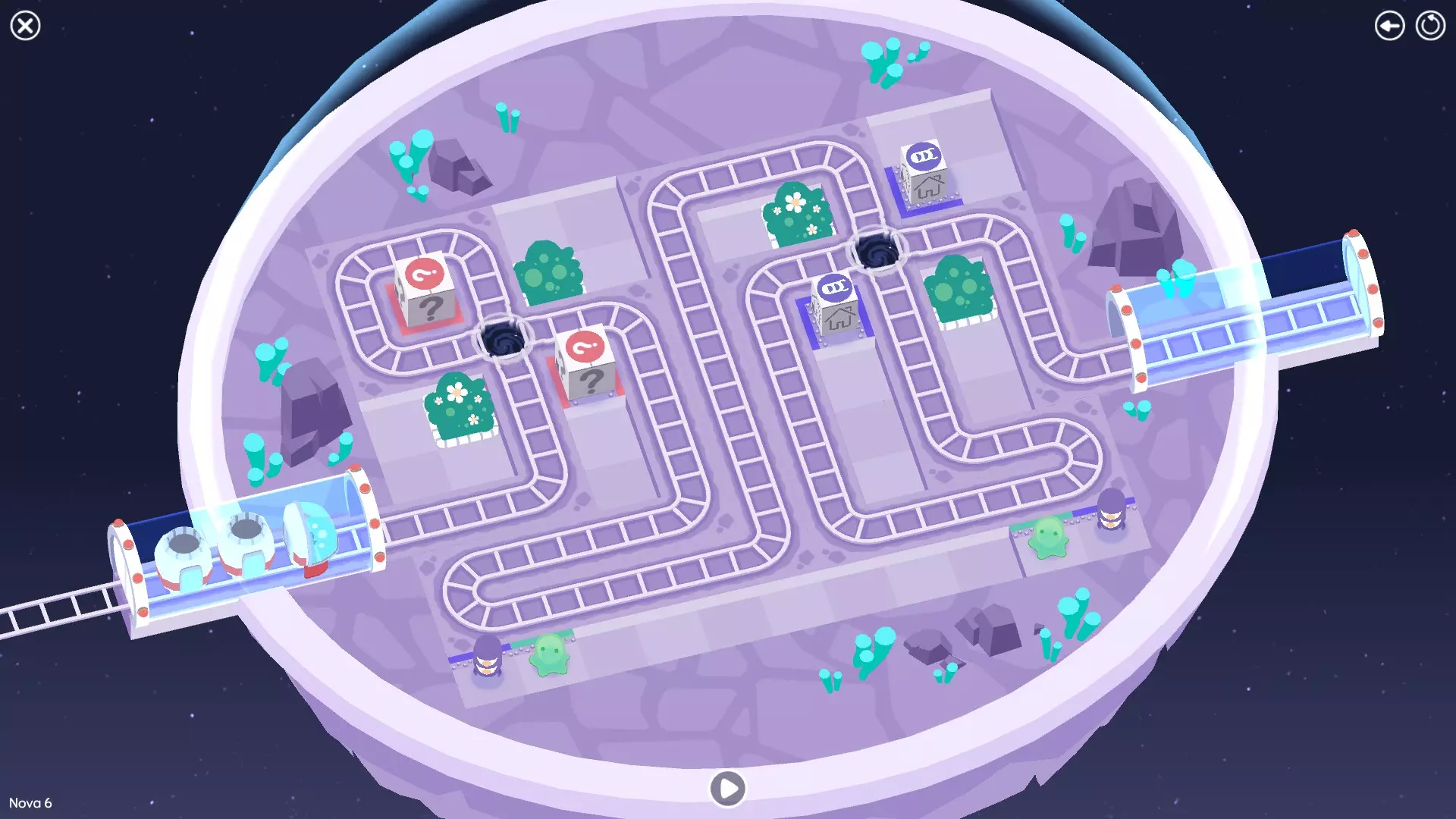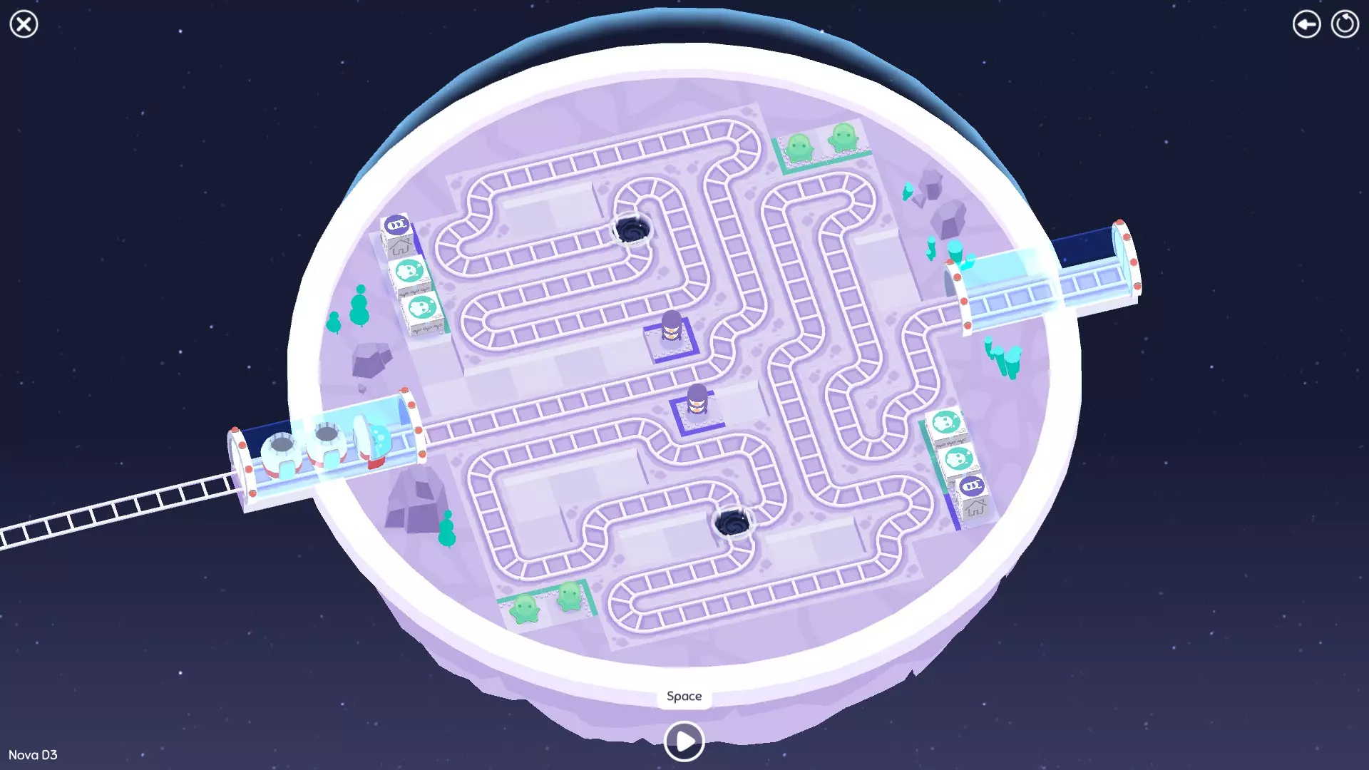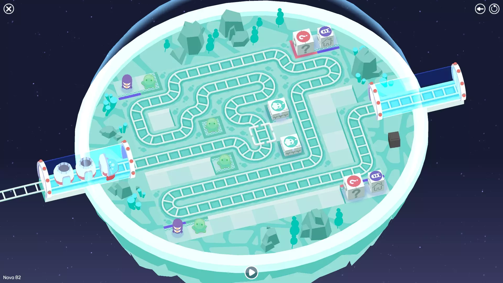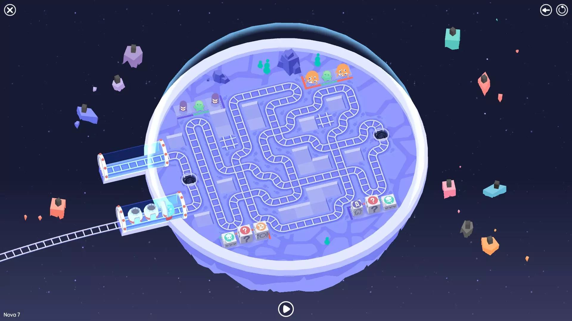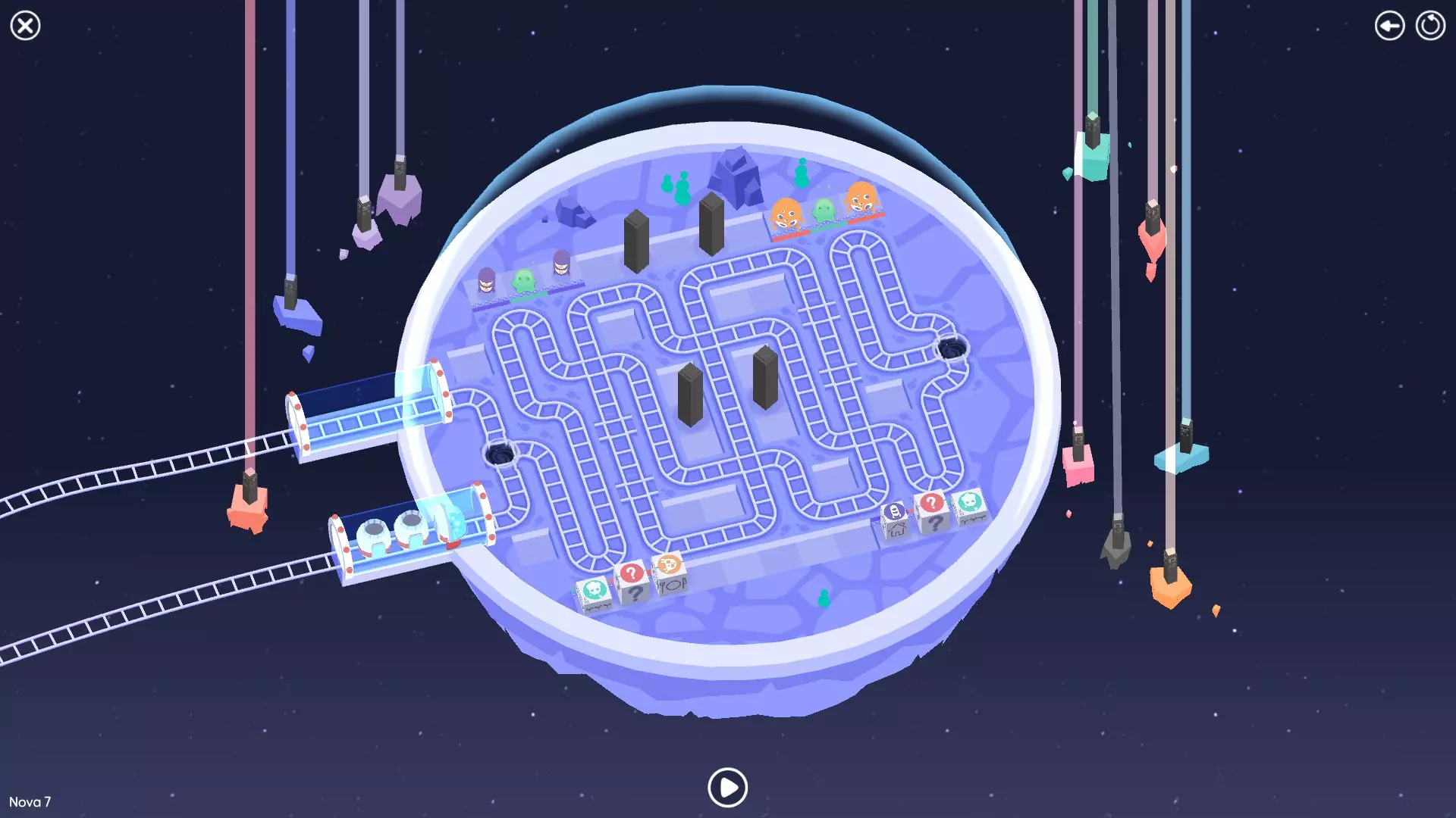 巨石阵II 新星7: 查看“新星7 - 解法”部分 新星7 - 解法 本关卡有4种不同解法。我们在此处添加了剧透内容,或许你会对特定解法感兴趣。 1. 若线路穿过顶部、中央以及传送门附近的任意绿色标记。