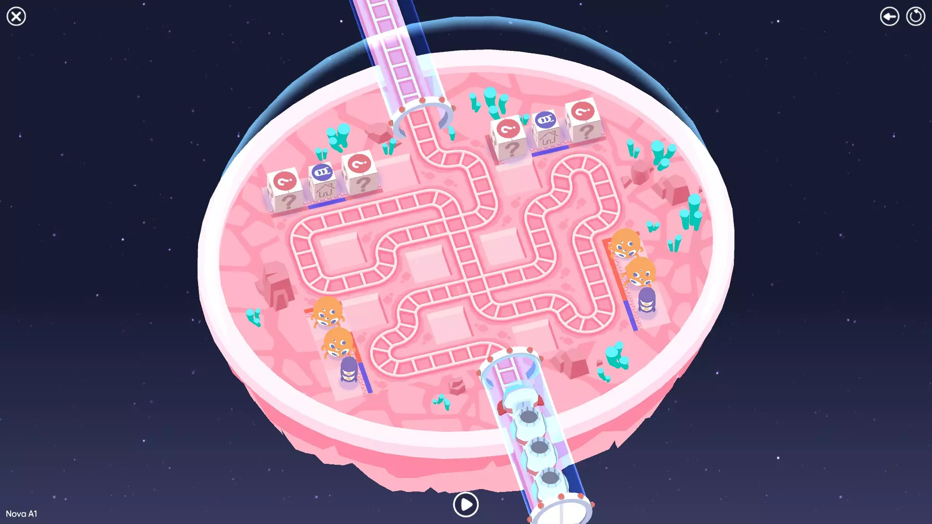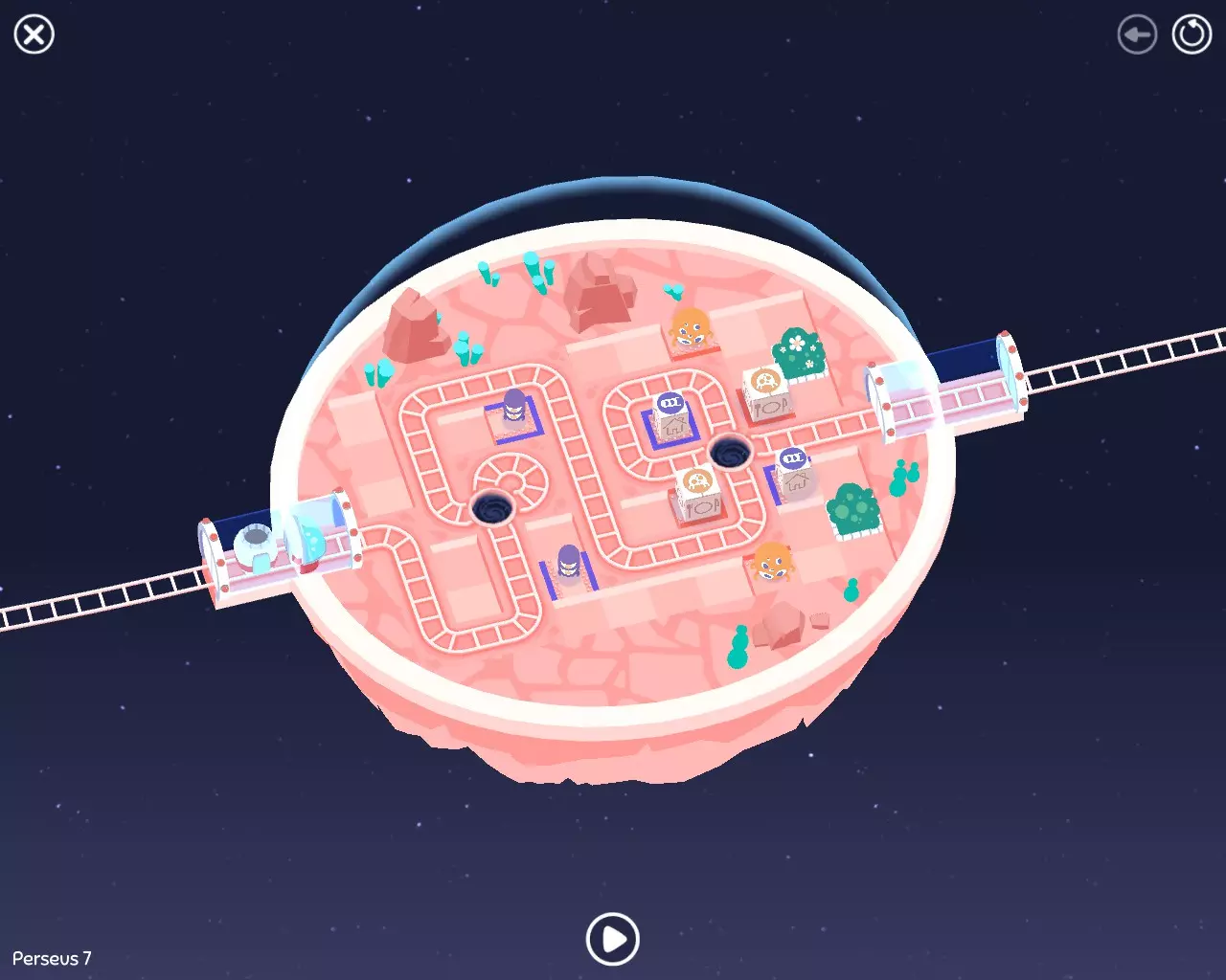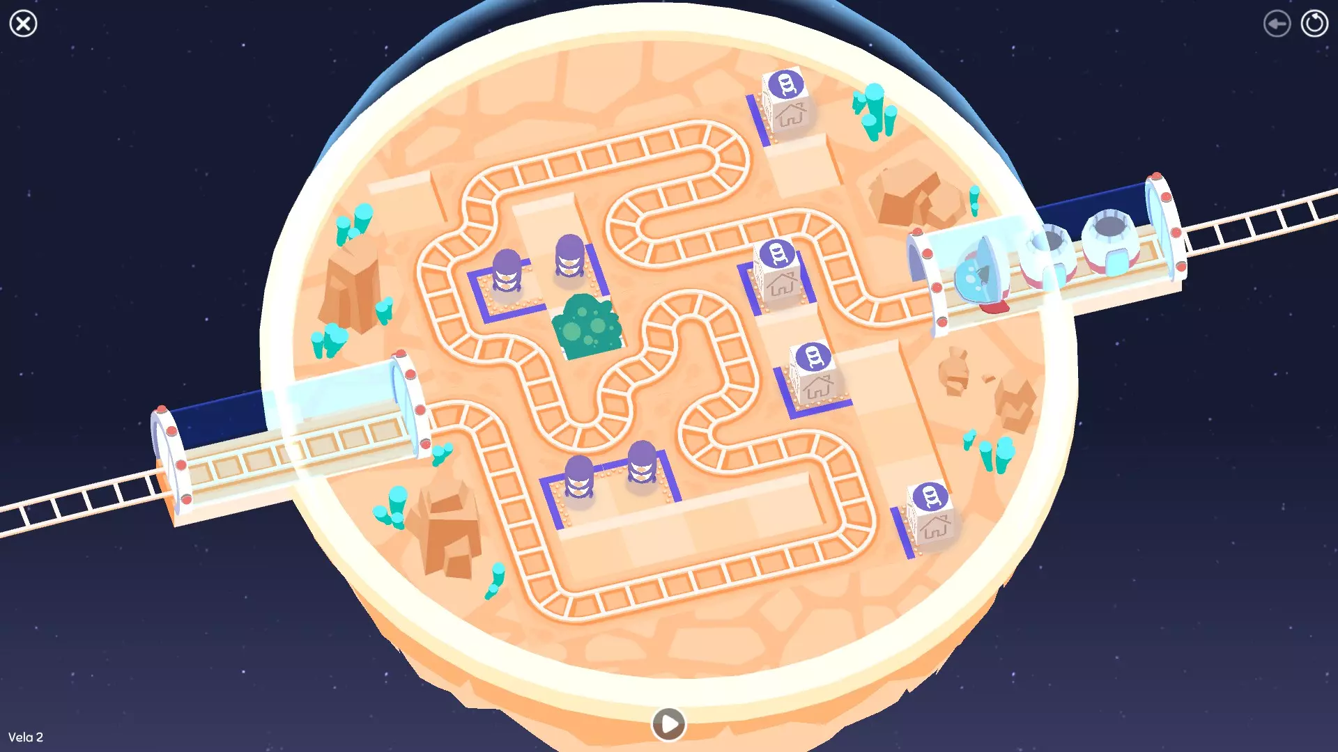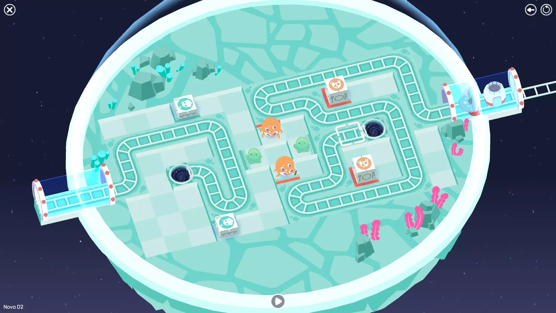巨石阵II 新星7: 查看“新星7 - 解法”部分 新星7 - 解法 本关卡有4种不同解法。我们在此处添加了剧透内容,或许你会对特定解法感兴趣。 1. 若线路穿过顶部、中央以及传送门附近的任意绿色标记。