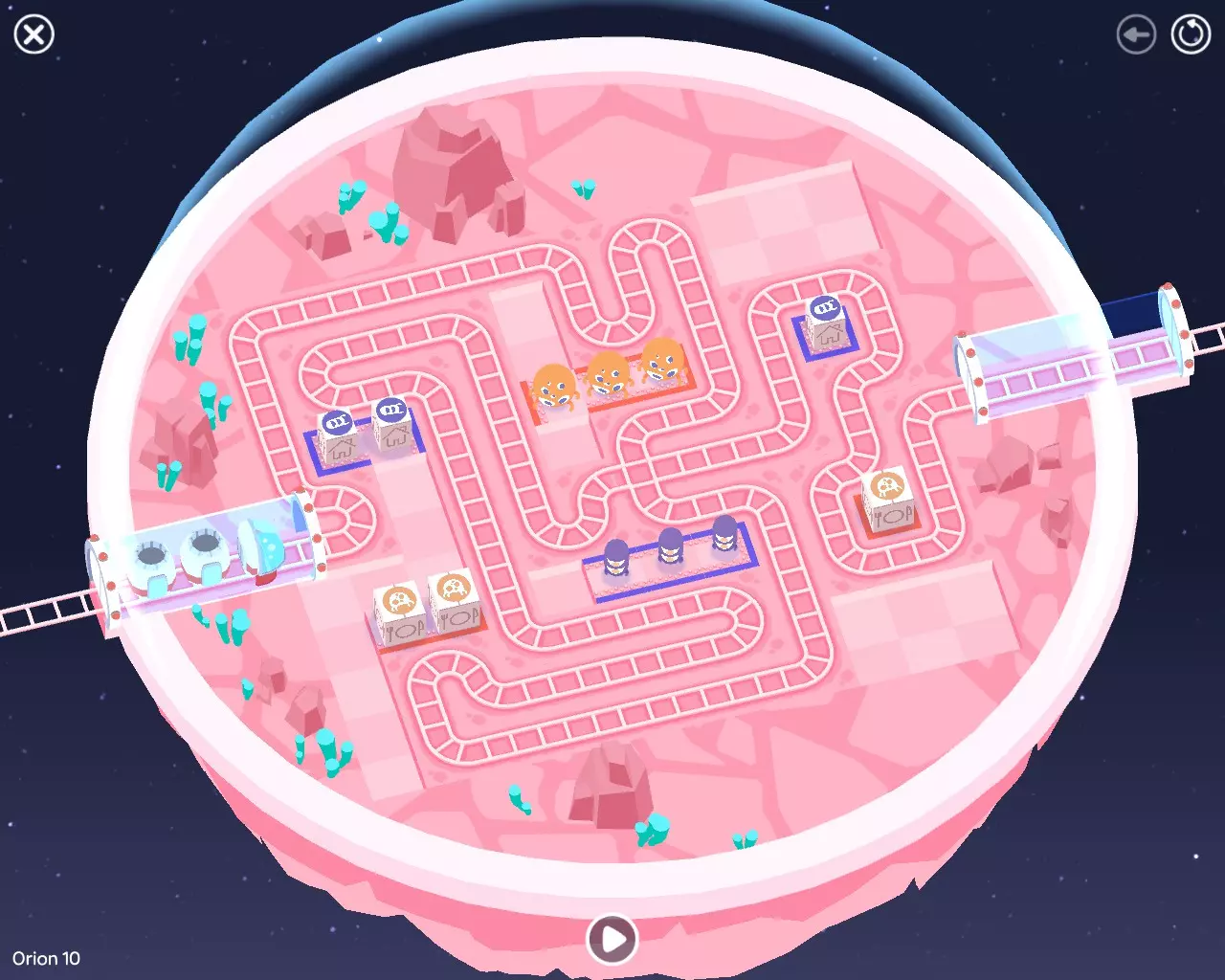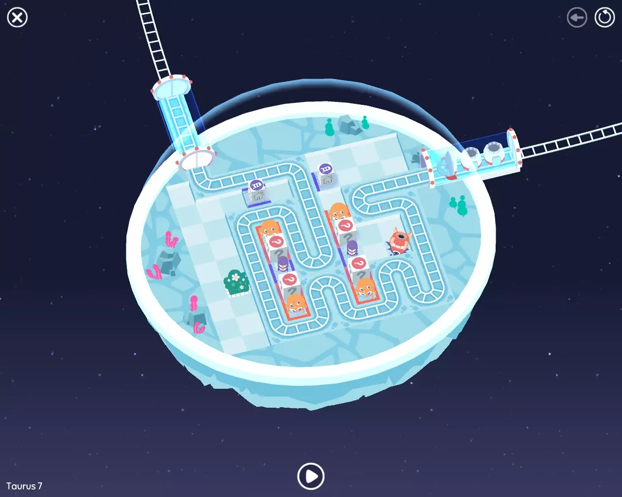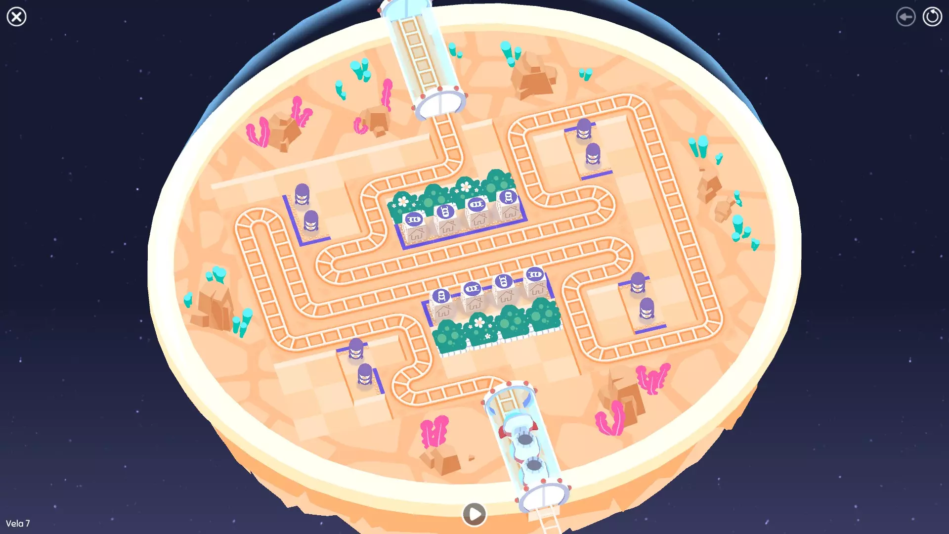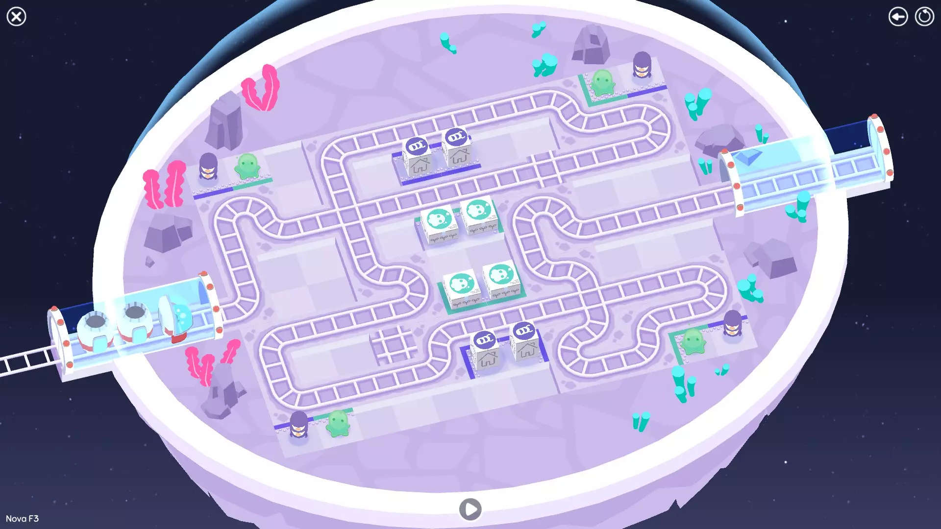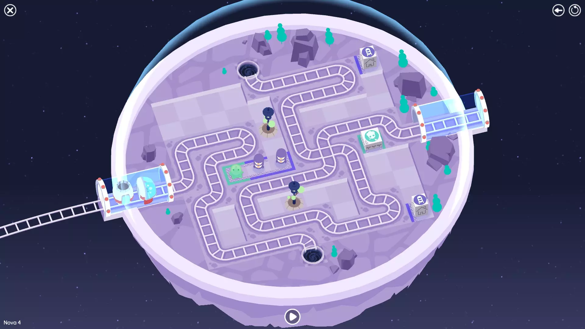 巨石阵II 新星7: 查看“新星7 - 解法”部分 新星7 - 解法 本关卡有4种不同解法。我们在此处添加了剧透内容,或许你会对特定解法感兴趣。 1. 若线路穿过顶部、中央以及传送门附近的任意绿色标记。