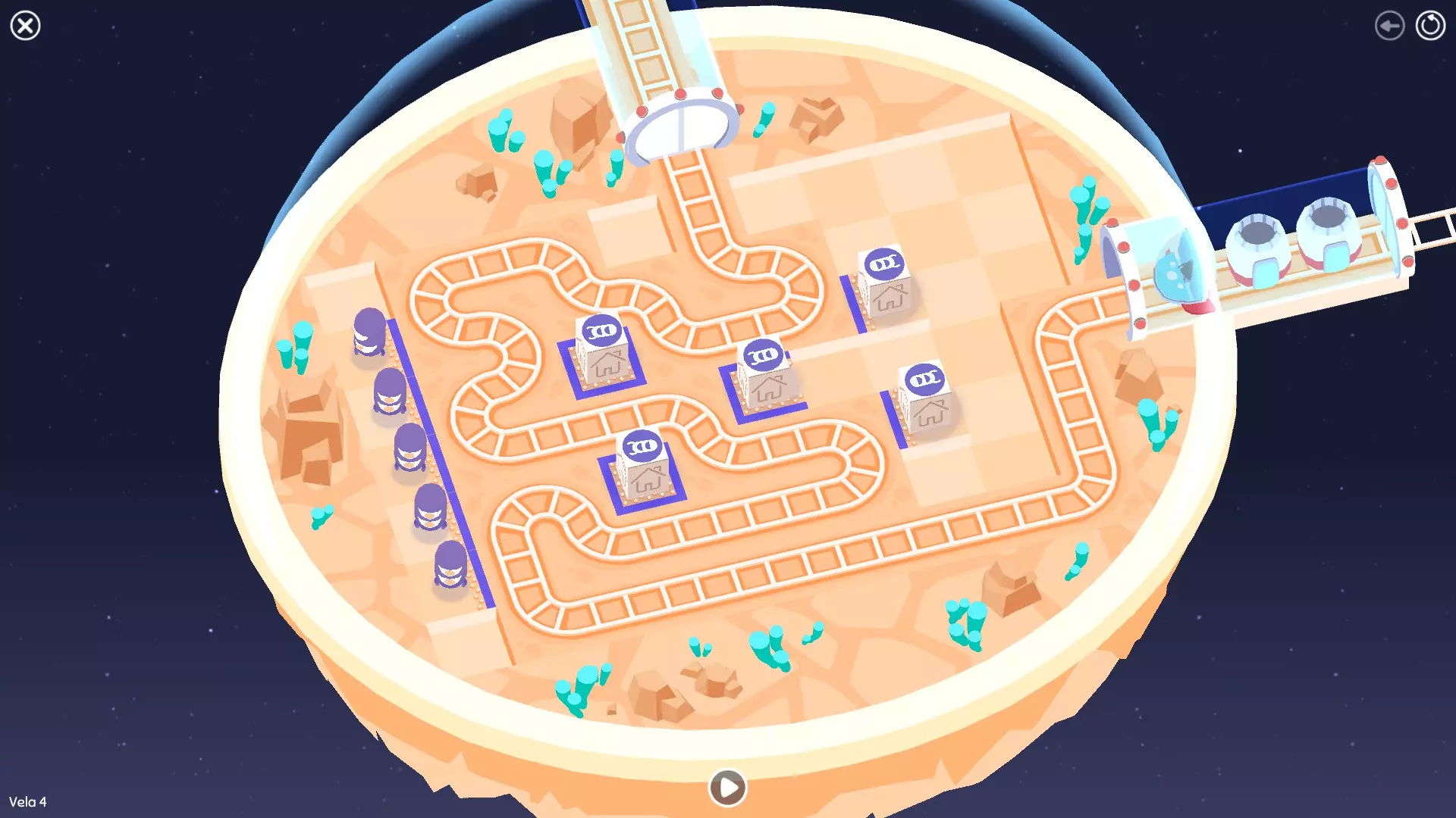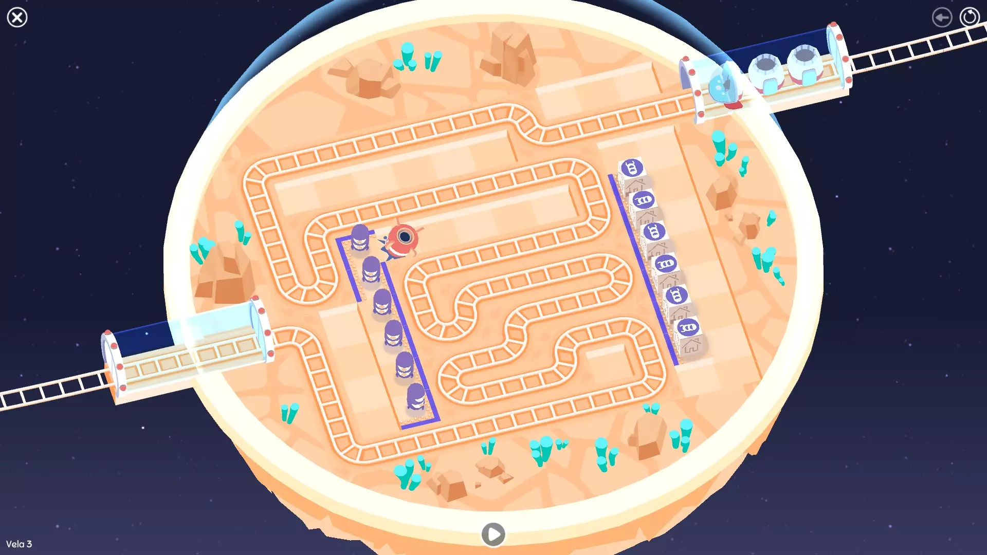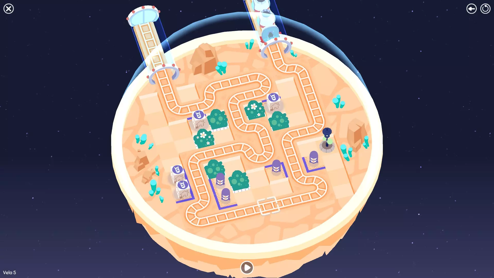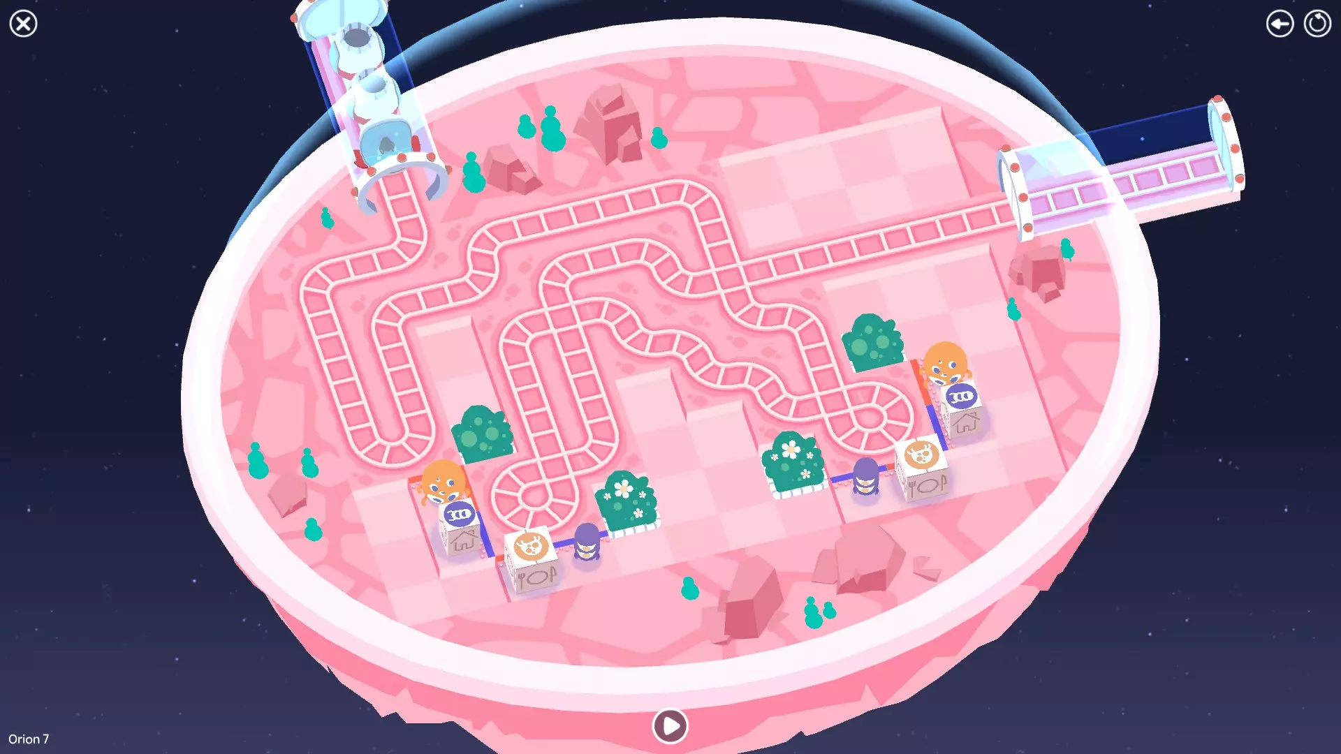 巨石阵II 新星7: 查看“新星7 - 解法”部分 新星7 - 解法 本关卡有4种不同解法。我们在此处添加了剧透内容,或许你会对特定解法感兴趣。 1. 若线路穿过顶部、中央以及传送门附近的任意绿色标记。