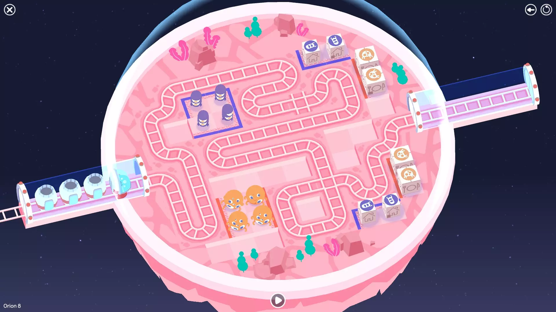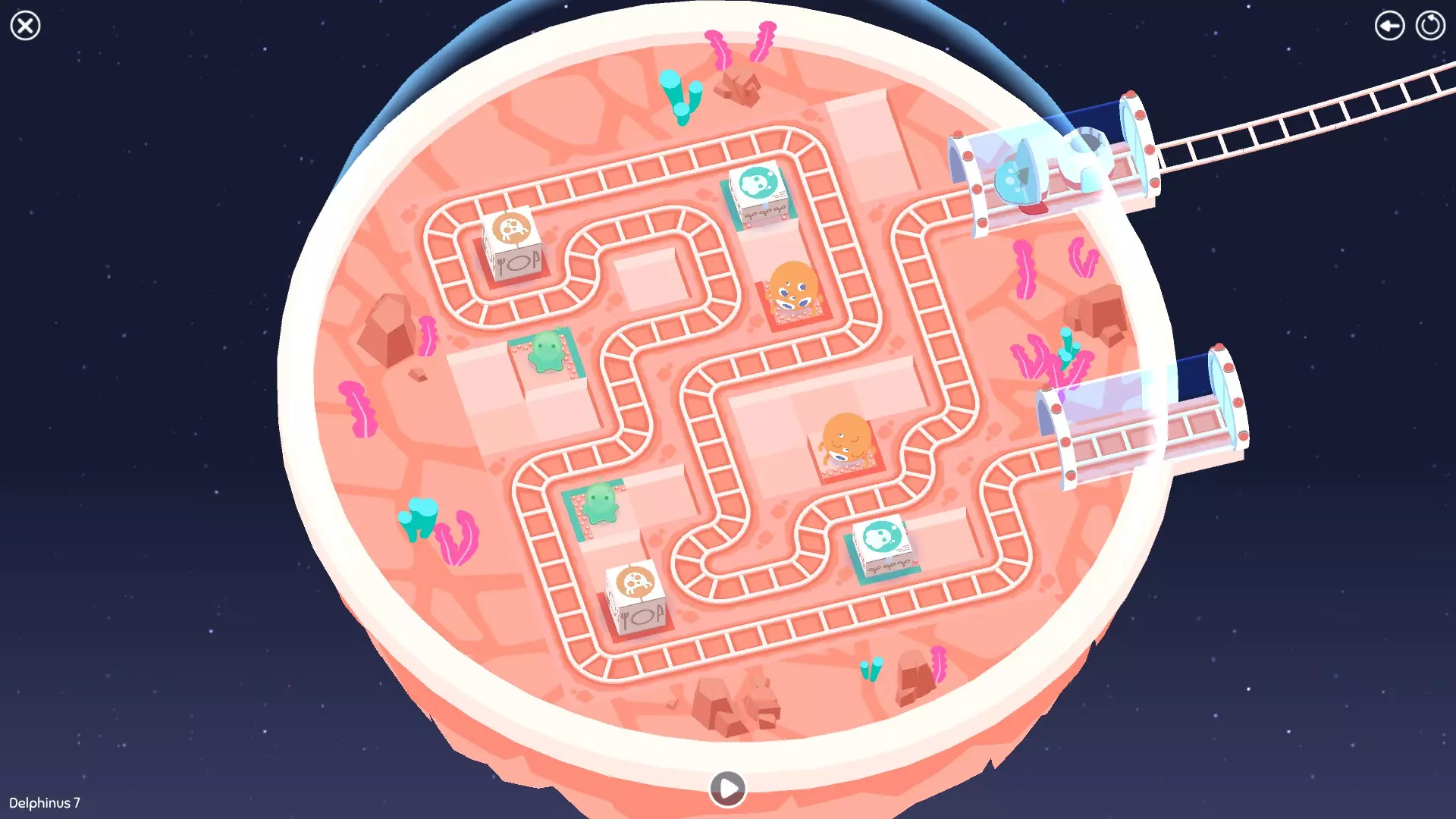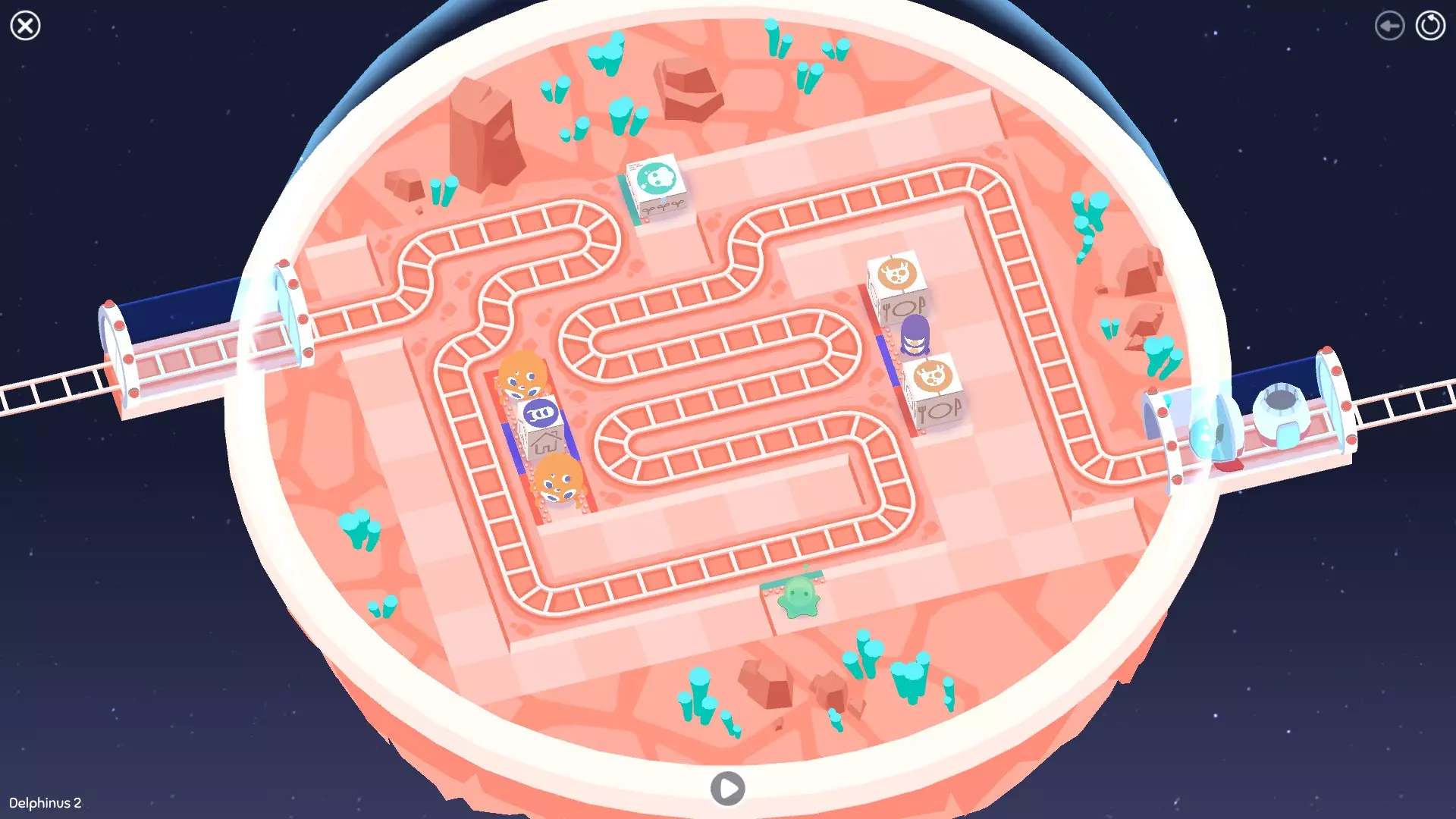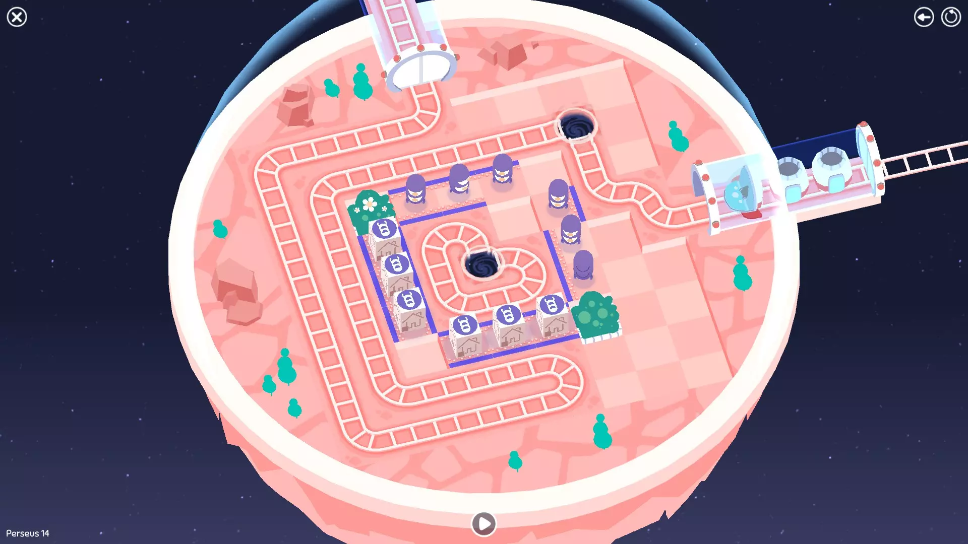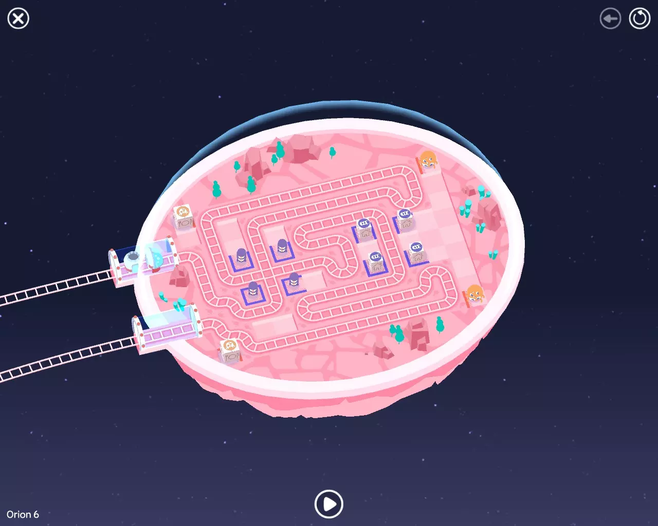 巨石阵II 新星7: 查看“新星7 - 解法”部分 新星7 - 解法 本关卡有4种不同解法。我们在此处添加了剧透内容,或许你会对特定解法感兴趣。 1. 若线路穿过顶部、中央以及传送门附近的任意绿色标记。