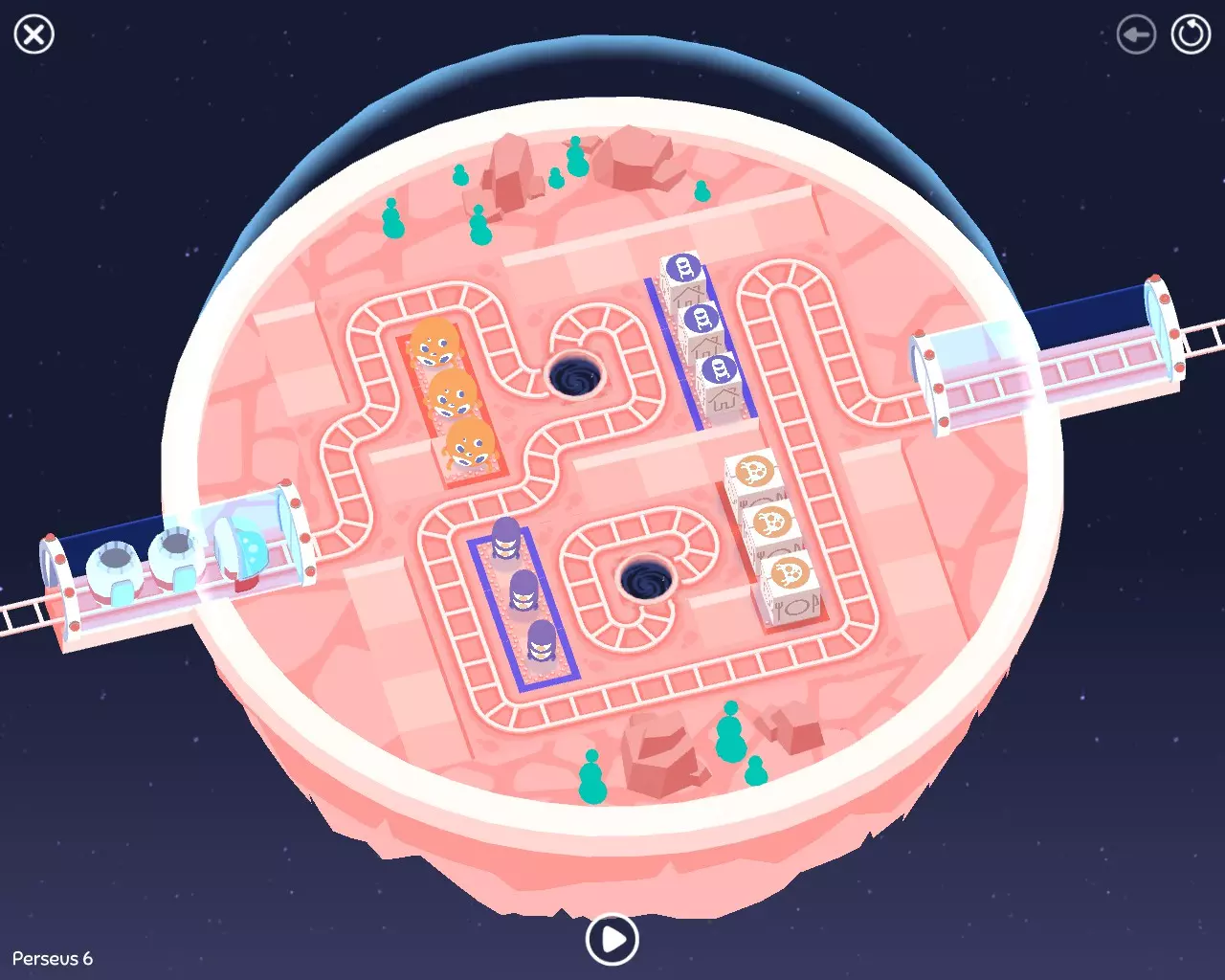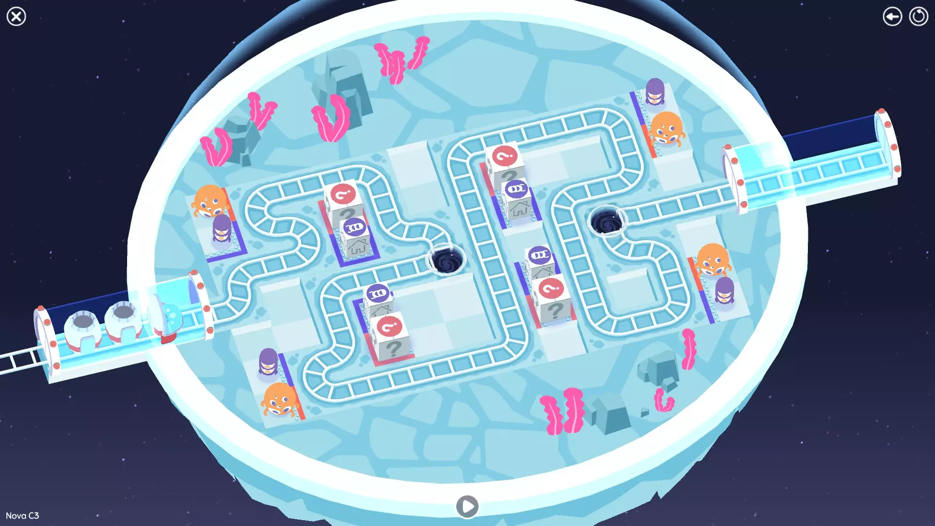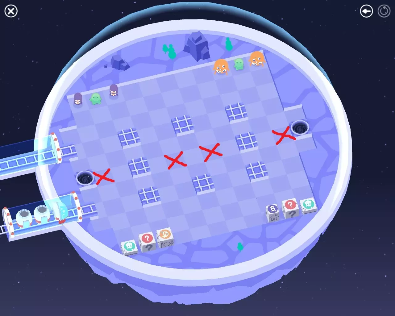 4. 线路不得穿过传送门附近及中心区域的任何红色标记。非常感谢CH提供的解决方案。