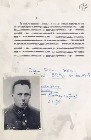 描述:当德军炸毁其中一处营房时,正在房内的团政委福明·叶菲姆·莫伊谢耶维奇被震晕并被瓦砾掩埋,随后被敌军士兵从废墟中拖出并被俘。他立即被叛徒出卖给德军军官,并在堡垒墙边被处决。他死得其所。关于福明在布列斯特要塞防御战中所发挥的重要作用,以及他所展现出的坚韧与无畏精神,有众多证据可以证明。福明因其卓越功勋被追授苏联英雄称号。档案【基斯利亚科夫 V.P.】