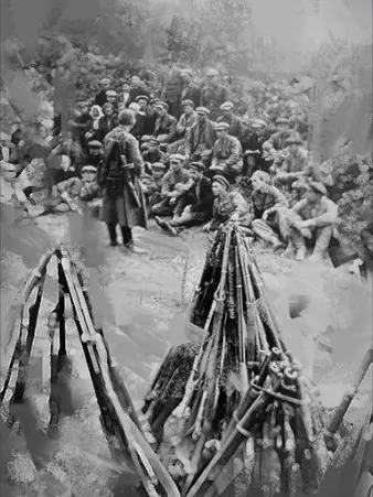 描述: 近日,三名少年在森林中采集干草时被法西斯分子枪杀。这一幕被村民季霍诺娃和老农费杜洛夫亲眼目睹,他们曾恳求德军放过孩子们,却因此遭到毒打,被剥光衣服后扔进冰冷的棚屋。当晚,纳粹分子喝得酩酊大醉,用稻草覆盖棚屋并将其点燃。在伊纳诺夫卡村,一名军官要求当地居民为德军提供30吨土豆、5头奶牛和20只绵羊,并且村民必须立即送去。由于之前到过村子的德国人已经抢走了牲畜并夺走了农民的粮食,他们无法满足法西斯军官的要求。于是,一支惩罚部队被派往了村子。法西斯分子将所有村民,包括妇女和儿童,驱赶到村庄广场,每五人就处决一人。幸存的农民被押往集中营,村庄则被付之一炬。 游击队员的同伴: