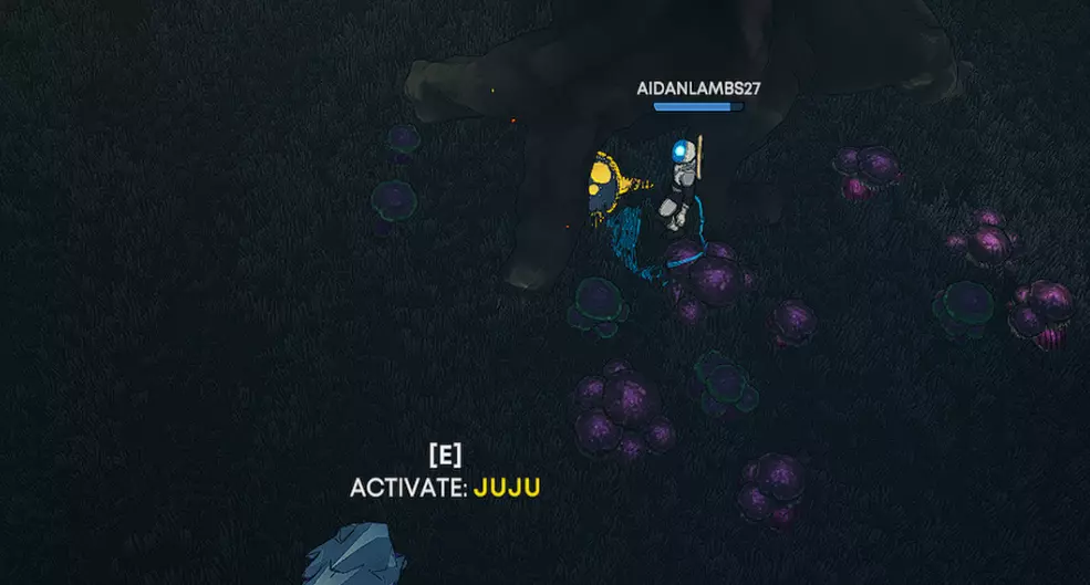 朱朱可以在塞莱斯蒂乌姆的以太桥上找到,塞莱斯蒂乌姆是你前往的第二颗星球。到达该星球后,向北走,直到找到一棵树。朱朱就坐在这棵树的树根处。要激活它,你必须靠近它。