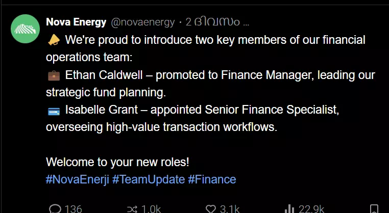 新星能源。去社交平台搜索账号,打开后得到经理姓名:伊森·考德威尔