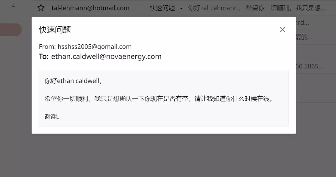 利用漏洞侵入该设备 找到文件:request-logs.log,打开找到:来自ethan.caldwell@novaenergy.com的邮件发送请求,IP:89.251.104.4 前往邮箱向他发送邮件