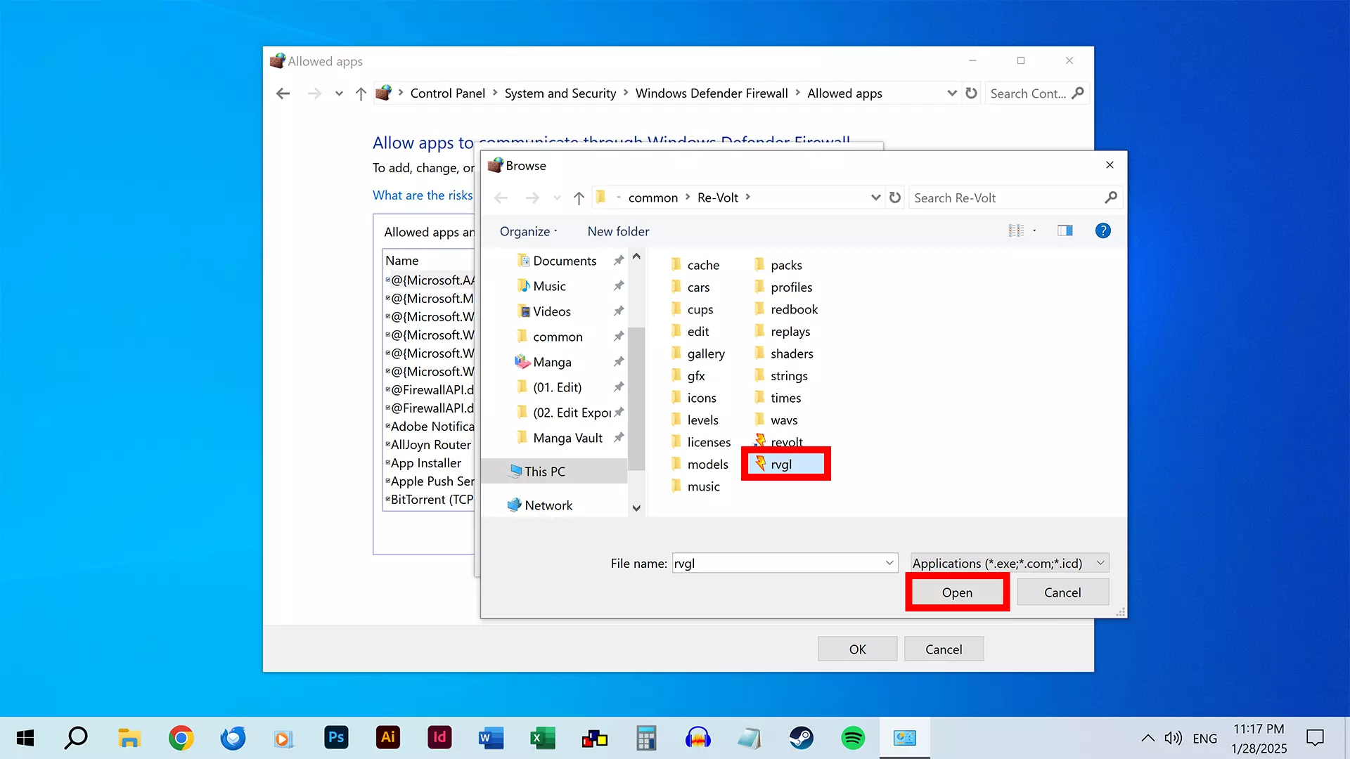 导航至游戏目录并选择“rvgl.exe”。点击“打开”。