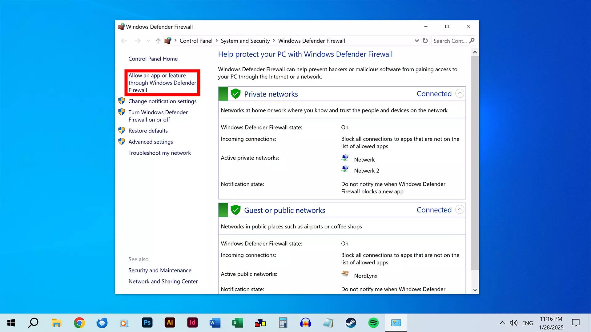 打开Windows Defender防火墙。