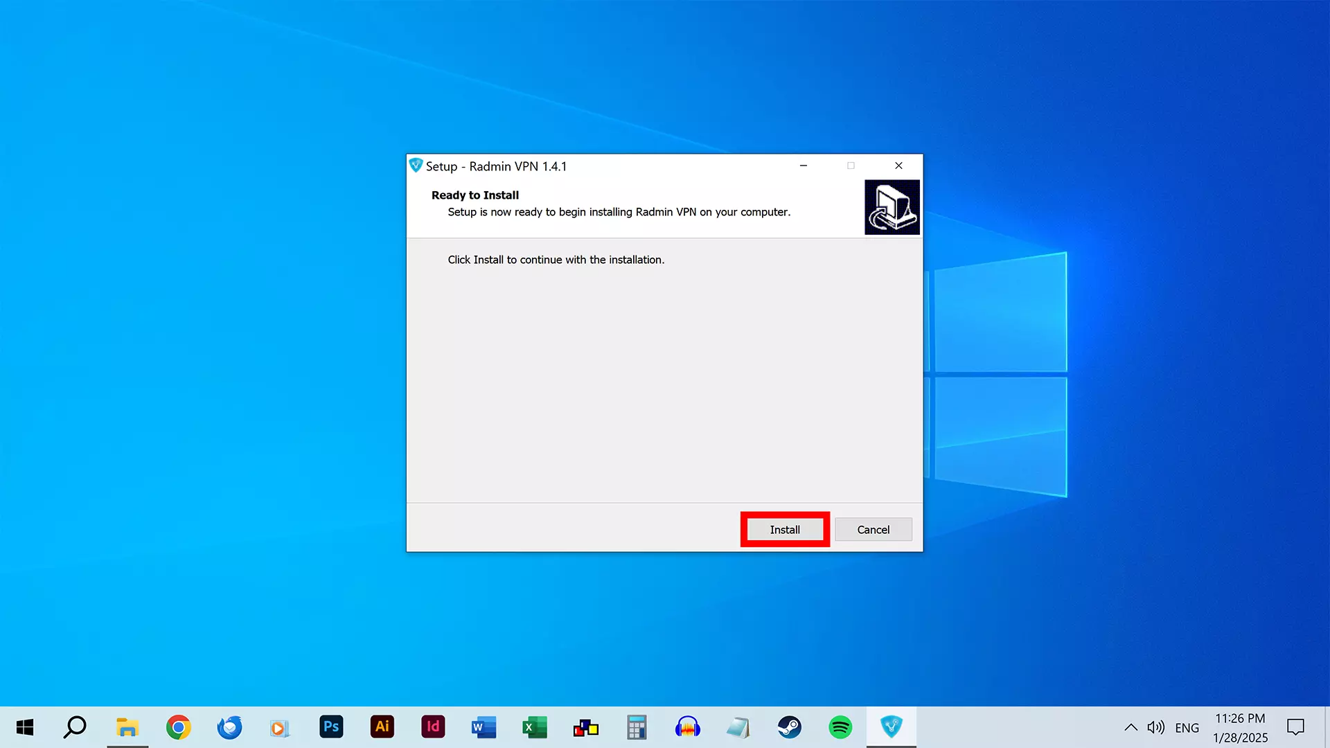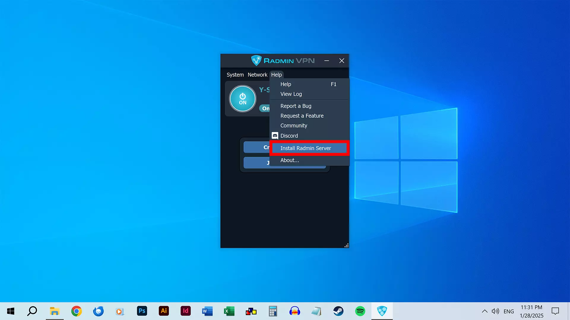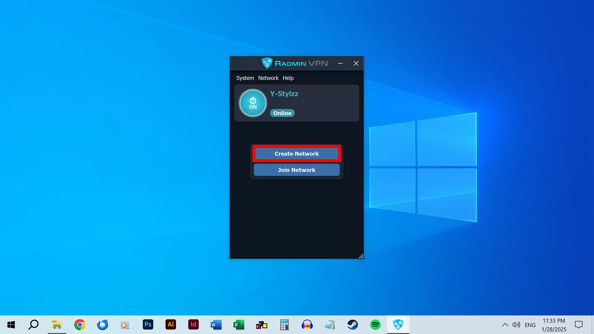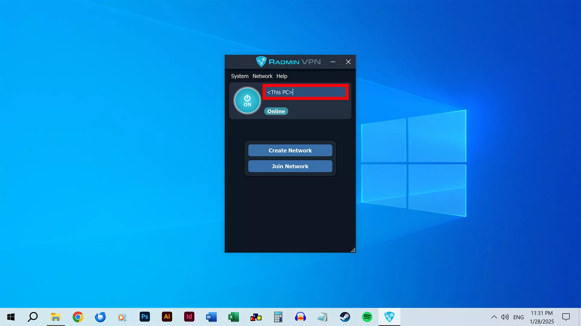 安装完成后,Radmin VPN 将打开。你需要保持在线状态。 (如果未在线,可点击电源按钮进行连接。) 你可以双击【此电脑】(你的电脑名称)来进行修改。