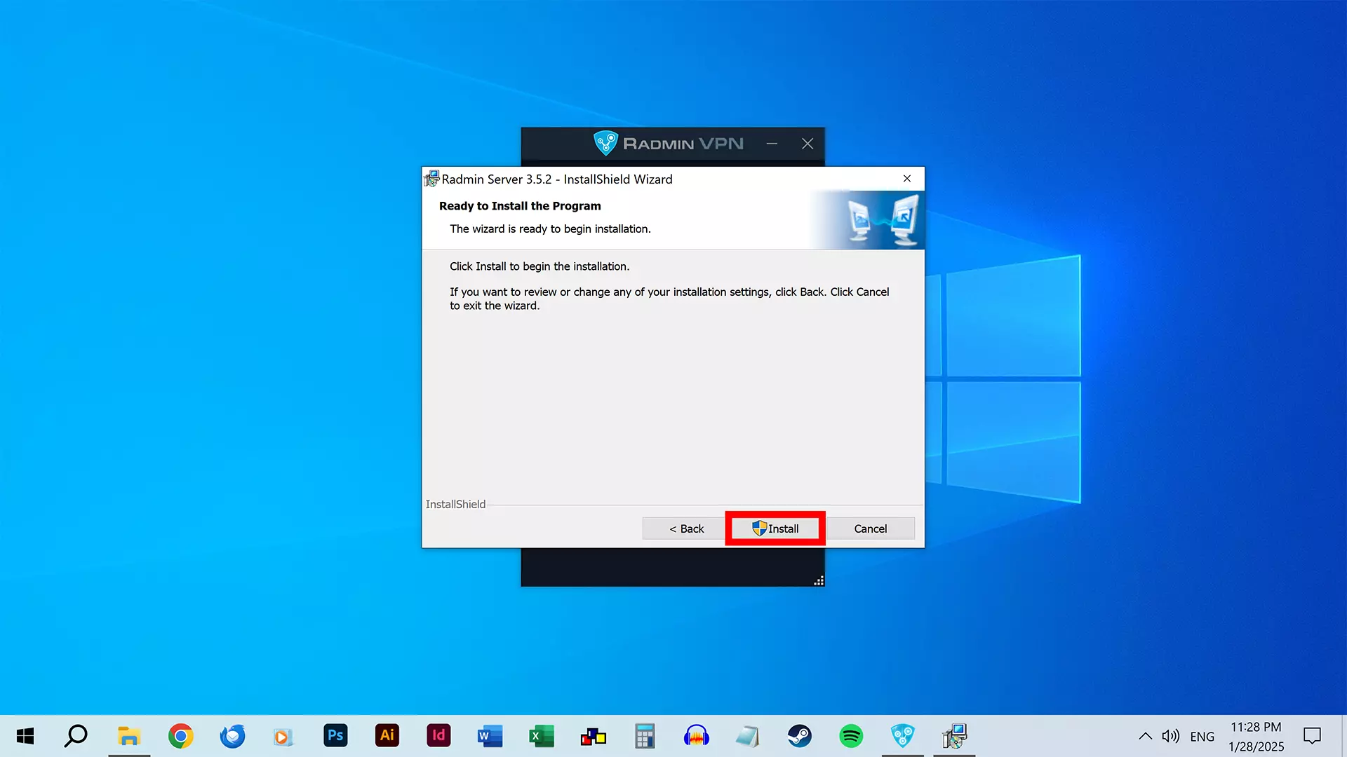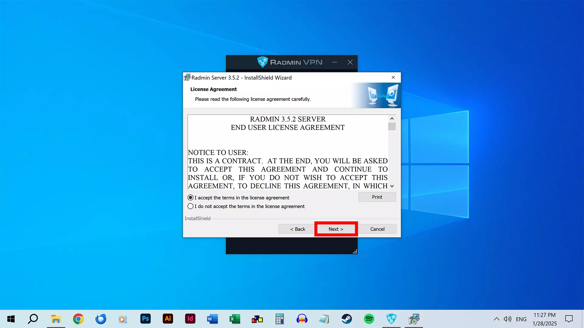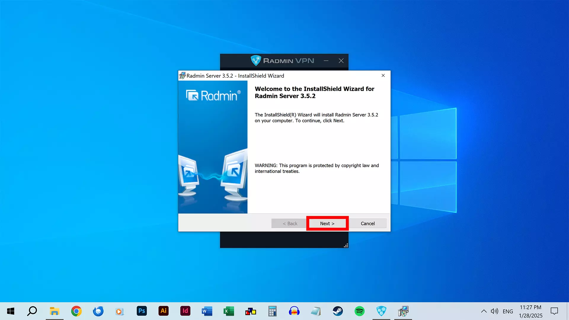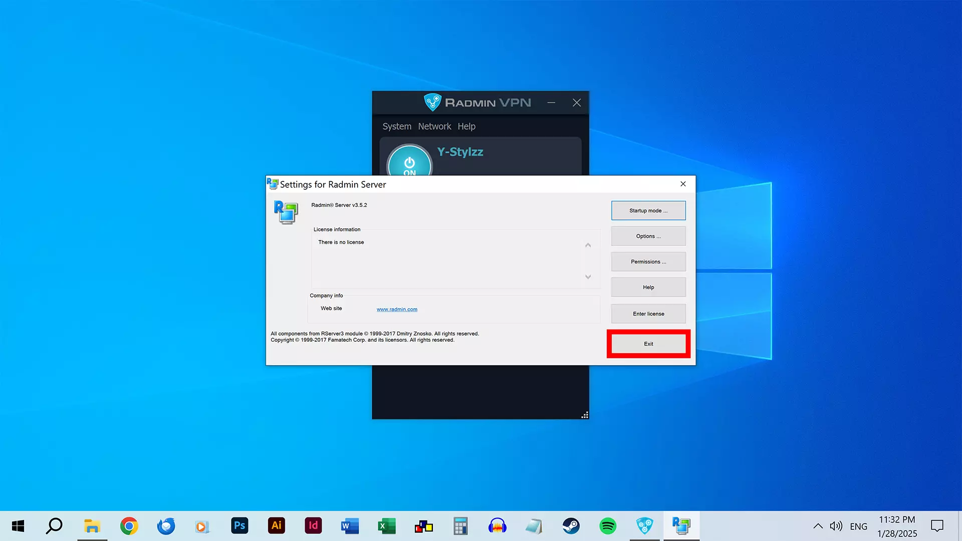 Radmin Server的设置界面将会打开。 点击【退出】。 完成! 步骤4A:创建网络 此步骤仅适用于想要创建网络并作为主机的玩家。 想要加入网络的玩家可以跳过此步骤,转而按照步骤4B操作。