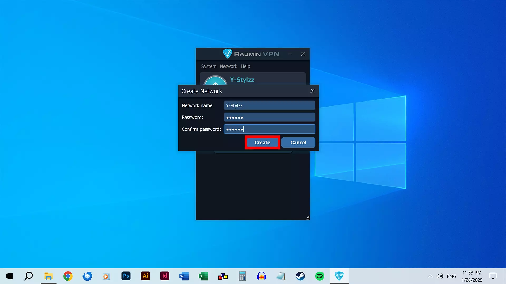 填写网络的名称和密码,然后点击【创建】。 将网络的名称和密码告知其他玩家。 步骤4B:加入网络 此步骤仅适用于想要加入网络的玩家。 如果您想创建网络并作为主机,请改为按照步骤4A操作。
