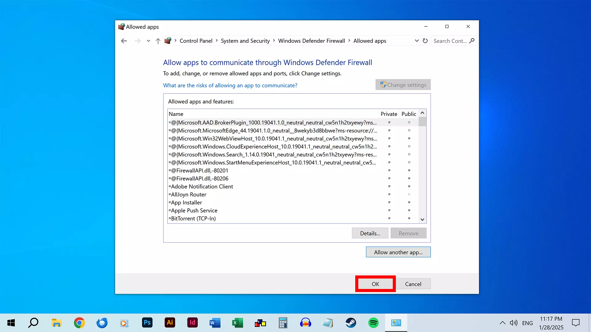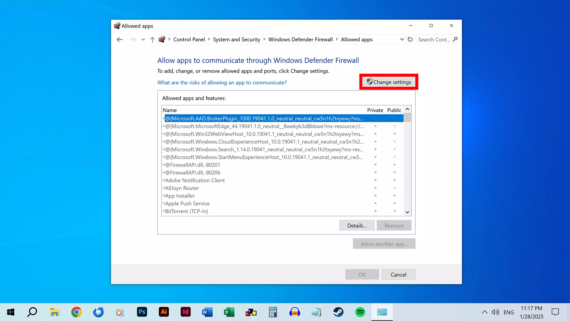 点击【允许应用或功能通过Windows Defender防火墙】