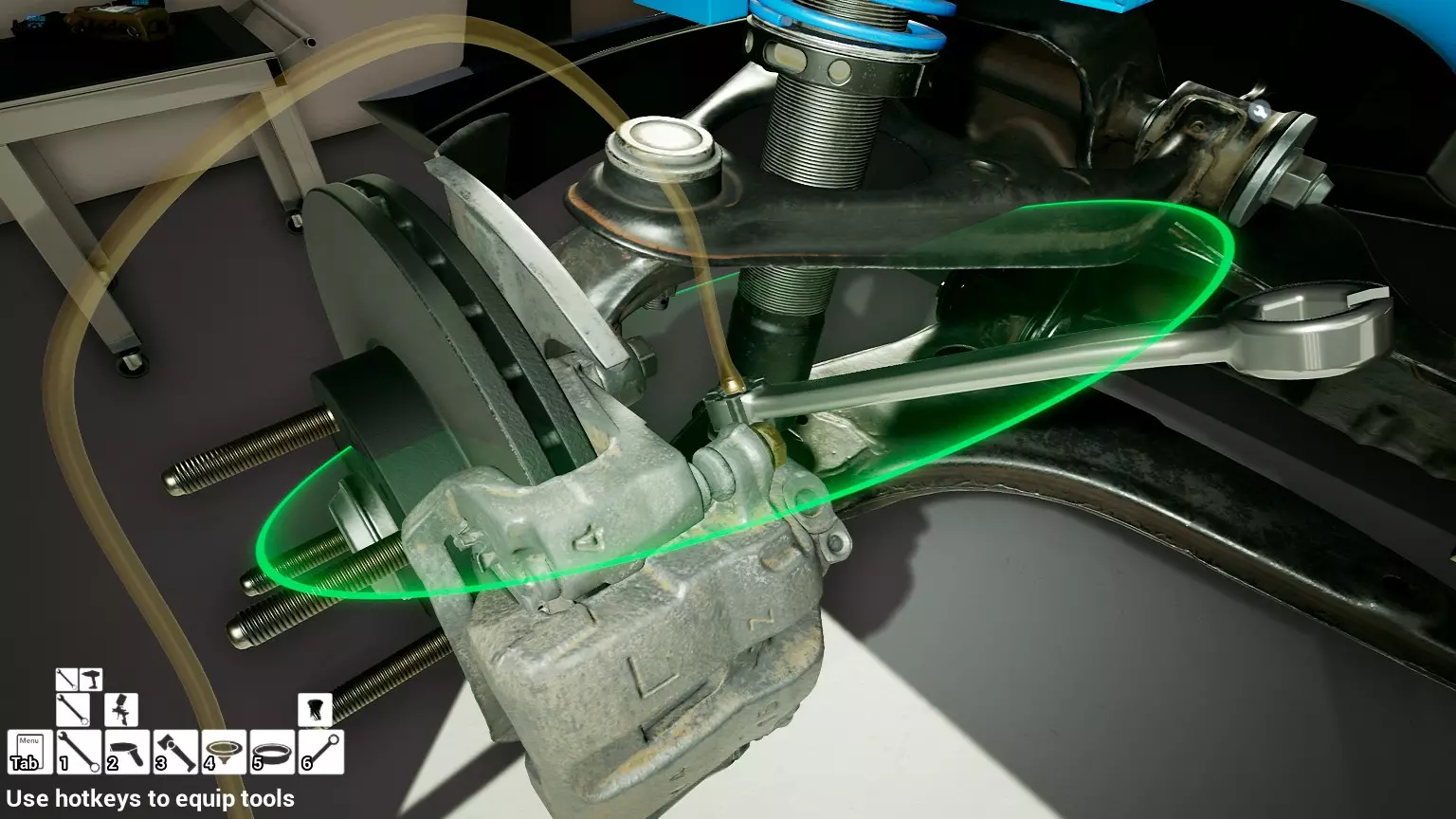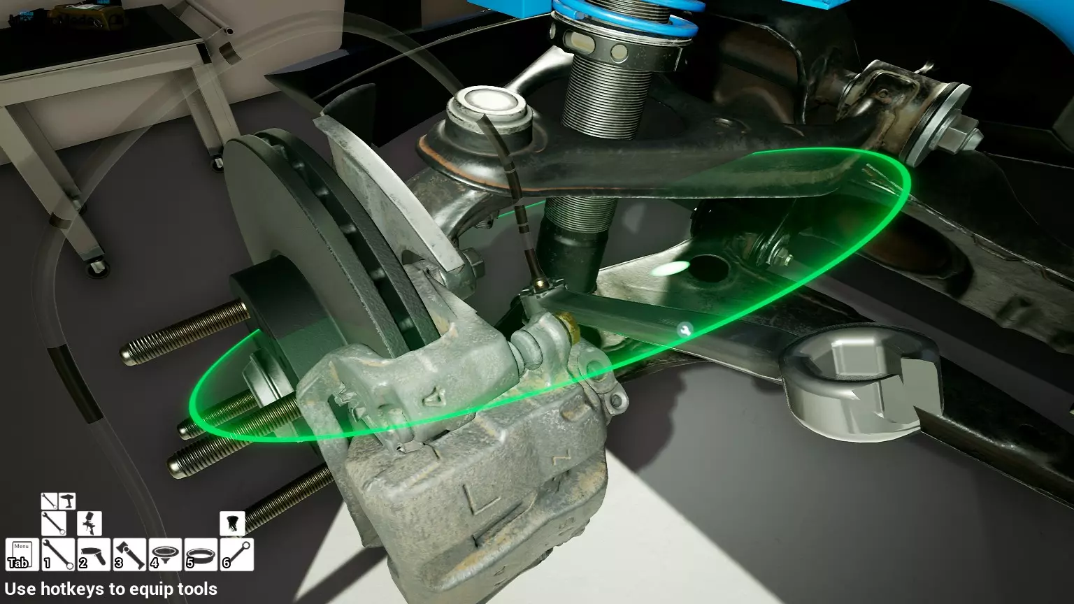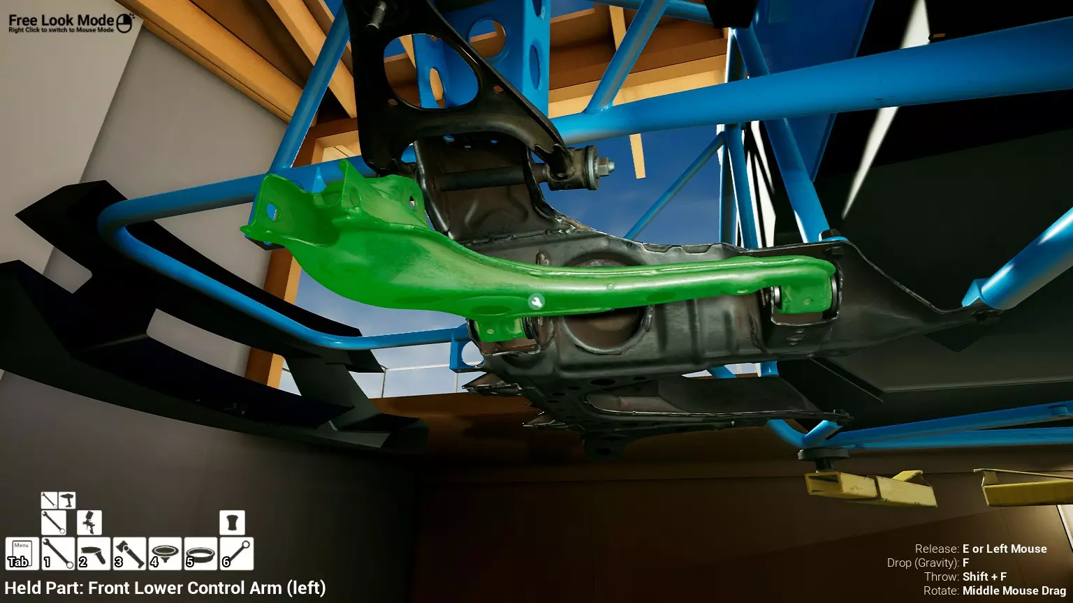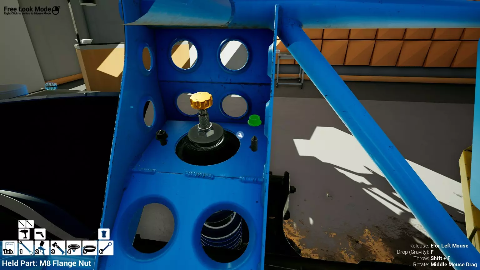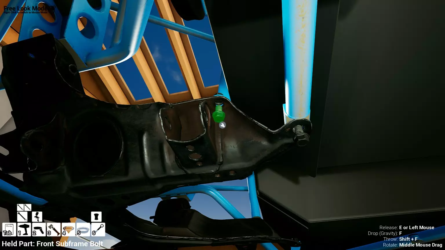 现已完全兼容141版本(2022年1月)。 本游戏处于不断变化和发展中,我一直在努力跟进并根据需要进行调整。由于开发者未提前通知,我只能通过反复试验来摸索。 不过请放心,我在将内容添加到本指南前,均已在游戏内亲自测试过所有内容,因此我确信撰写时信息是准确的。但除此之外,一切都可能随时发生变化。 请注意:游戏中并非所有可购买物品都是【磨损物品】,即它们在使用过程中不会累积磨损(至少目前不会)。 我是从一张完全空白的画布开始构建的,因此没有可重复使用的旧部件。不过,由于你很可能只是对现有的底盘进行全面检修,因此会有一些“非易损”部件可以重复使用,所以重复使用这些部件比购买新部件更合理。 因此,请仔细检查,确保你即将购买的部件确实是易损部件。你不会真的想把钱花在不需要更换的部件上。 本指南旨在帮助你从头开始构建整个底盘。 本指南不包括发动机和变速箱的安装与装配,这部分内容已在我创建的另一篇单独指南中涵盖。新的HUD系统会显示你正查看的部件,如果该部件有适用的扭矩设置,也会一并显示。 HUD现在还会列出你所查看物品的当前“磨损”程度,但这一功能仍在开发中,并非所有物品都会因使用而产生磨损。 至于旧扫描仪系统中曾有的安装说明,现在可以在独立的“手册”中找到,可通过平板电脑访问。 不过请注意,这些手册仍在完善中,因此部分内容可能存在误导。开发团队已意识到这一问题,并会及时更新和优化,但整个项目仅由两人负责,他们需要相应地优先安排时间和工作量。希望这部分内容没有让你感到过于枯燥,同时也希望它能帮助澄清一些玩家最近根据我收到的一些评论所遇到的问题。 感谢你抽出时间阅读这篇内容,也再次感谢你花时间阅读和使用这份指南。 你能购买自己的空机箱吗? 目前这个问题的简单答案是否定的。 开发者们在私下里讨论过这个问题,开发者和社区也在Discord上进行过讨论。 因此,这可能会在未来成为可用功能,但目前你还无法做到这一点。目前,最接近的方法是通过你的平板从【分类广告】中购买一辆汽车,然后自行将其拆解至只剩底盘。从这一步开始,你就可以随心所欲地对它进行操作了。 现在,底盘也不会产生任何磨损,所以无论你打算购买的汽车状况好坏,底盘都将始终保持完全相同的状态。 我只是觉得应该在这里提一下,因为这个问题经常出现。 当然,随着情况的变化,我会根据需要对这部分内容进行编辑或删除。 如何使用发动机支架和龙门吊。 这是最近很多人似乎都在纠结的问题,所以我想把这个添加到指南中。 发动机支架。你可以通过抓住支架顶部环绕着细长倒“U”形挂钩的半透明蓝色区域来升高或降低其高度,具体可参考下方截图。 当发动机放在支架上时,你还可以抓住覆盖着手柄的半透明蓝色区域,并朝着想要的方向旋转,以此来旋转发动机。你可以向任意方向旋转,且旋转的幅度没有限制。不过,本指南涵盖了整个底盘部分,包括副车架、悬架、转向系统、制动系统、车轮以及车身部件。 结合我已制作的发动机组装指南,你应该能够从头到尾打造出一整辆汽车。 我是在桌面模式下制作本指南的,因为我自己没有VR设备,所以无法保证所有信息对VR用户都100%准确。据我所知,VR模式与桌面模式的主要区别应该仅在于使用虚拟手操作而非鼠标点击,因此理论上其他所有信息都应该是通用的。如果我说错了,还请手下留情!在本指南中,我将使用全新的零件,因此如果你看到需要购买某个你已有的零件,你可以自行选择是重复使用旧零件还是购买新零件。 我决定使用全新零件,而非部分磨损的零件。这不仅能确保它们拥有最长的使用寿命,还能避免过早地再次经历零件拆卸和更换的过程。 作为参考,我所指的汽车左右两侧,是以驾驶员坐在车内并面向前方时的视角来确定的。即使你没有通读本指南,也请花点时间阅读我在末尾添加的题为【真实故事 - 引人深思】的部分。 这部分内容并非想让你对现实中自己动手修车望而却步,因为有些任务即使是新手,只要寻求并遵循专业建议和指导,也能相对轻松地完成。 不过,我想分享这个故事,是为了提醒大家,在进行维修工作时,哪怕是片刻的注意力不集中,都可能轻易演变成大麻烦。正如标题所示,这确实是一个真实的故事,引人深思。 那二三十秒的经历,我永生难忘。 在我们开始之前。需要注意的是,本指南的原始部分撰写于2019年初。从那以后,游戏和本指南都经历了多次变更,游戏内容有了大量新增和调整,本指南也相应地进行了补充和修改。让本指南一开始就引导你完成整个底盘的建造,似乎让一些新玩家感到些许困惑,他们可能在购买游戏前就阅读了本指南,或者刚购买游戏还没真正理解游戏的“运作”概念。此外,一些回归玩家可能也阅读过本指南,他们或许玩过游戏试玩版但从未购买,或者在游戏刚推出时就买了,却搁置了好几年,不了解游戏后续的发展,所以当他们最终重新进入游戏时,似乎也有些困惑。 那么我们就来澄清一下。 早在2018年12月,游戏首次在Steam抢先体验平台发布,以及2019年1月我首次撰写本指南时,玩家只需完成一些非常基础的工作,比如更换机油和轮胎,熟悉一下游戏的基本操作后,就可以完全拆解并重建自己的赛车,然后以“按场次”的方式将其出租。 这就是为什么本指南一