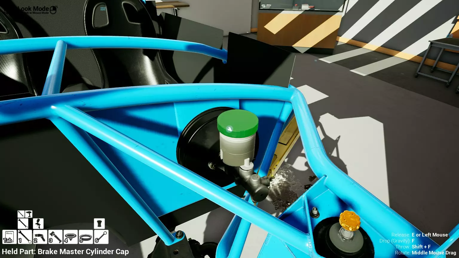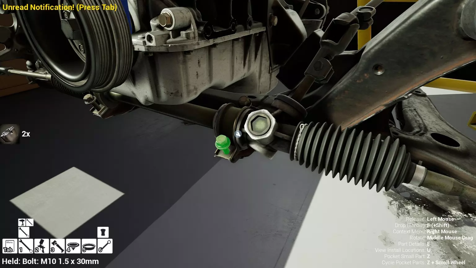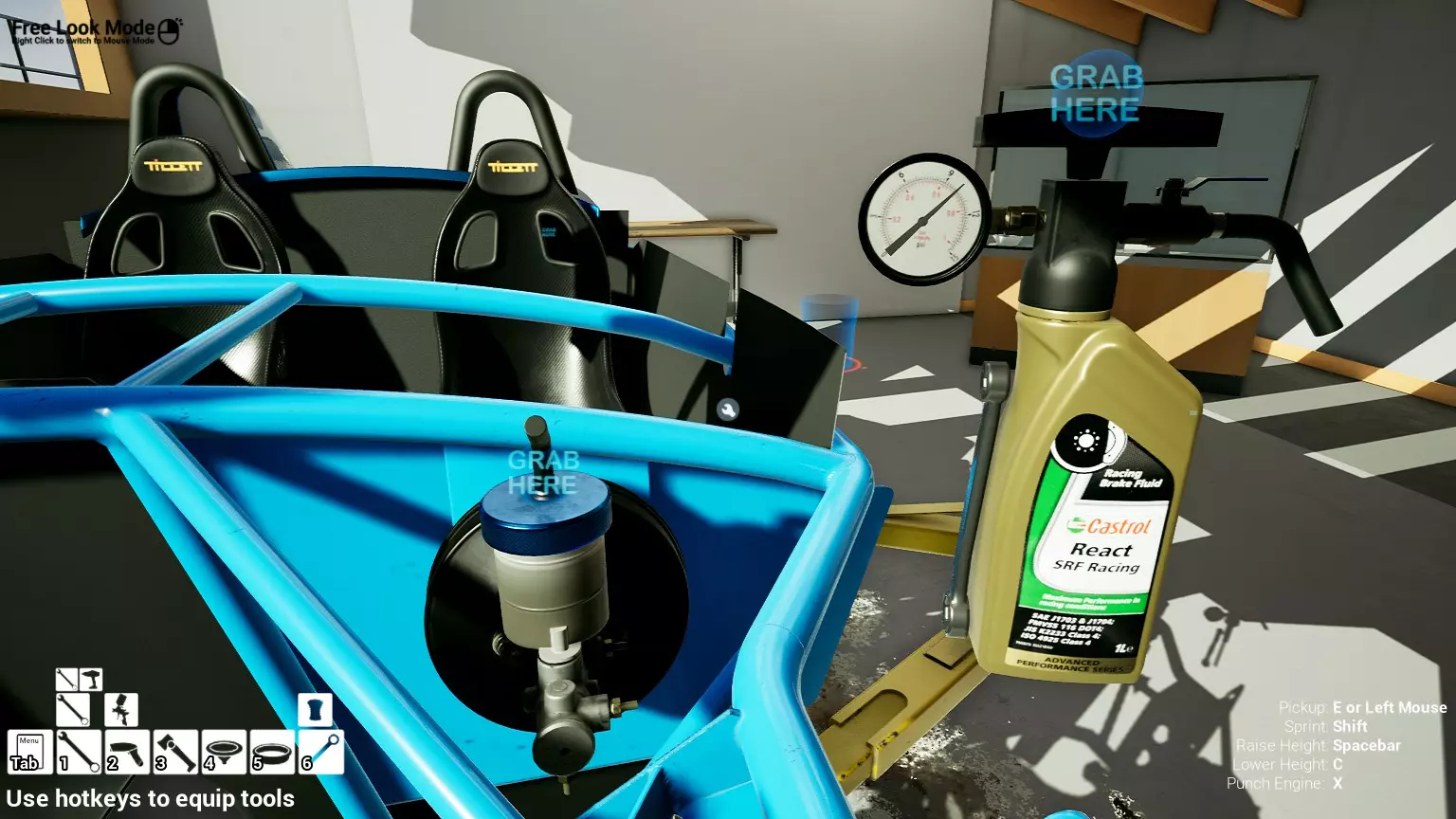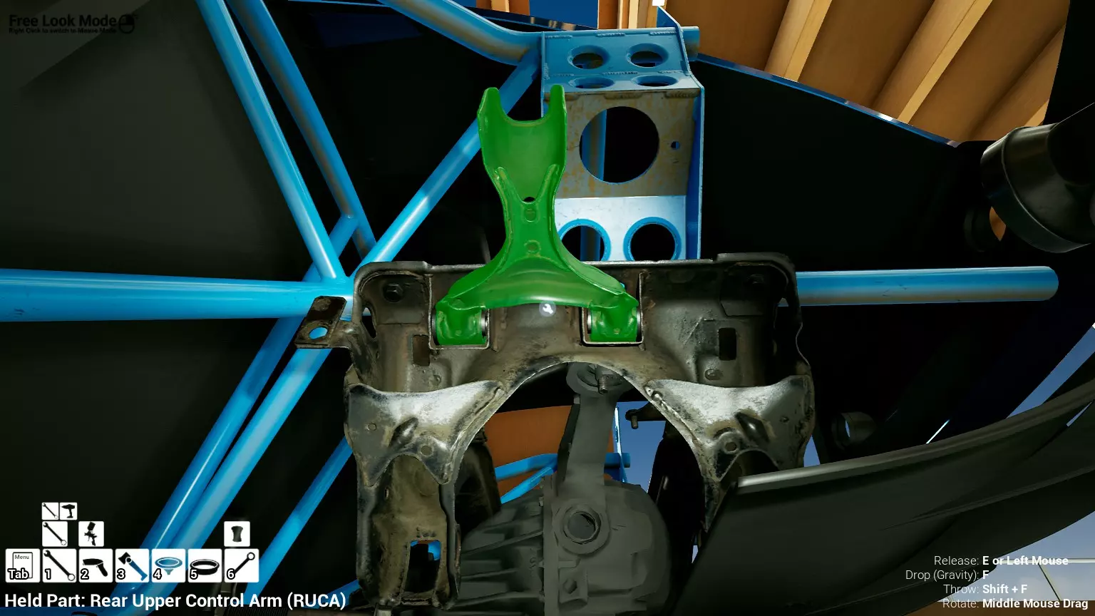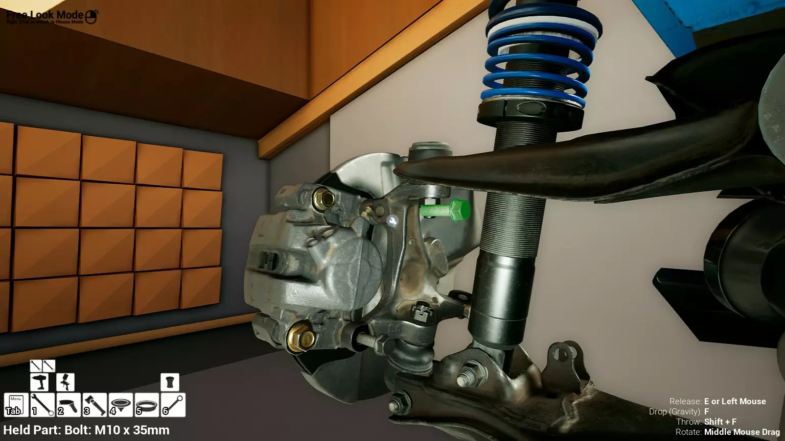 现已完全兼容141版本(2022年1月)。 本游戏处于不断变化和发展中,我一直在努力跟进并根据需要进行调整。由于开发者未提前通知,我只能通过反复试验来摸索。 不过请放心,我在将内容添加到本指南前,均已在游戏内亲自测试过所有内容,因此我确信撰写时信息是准确的。但除此之外,一切都可能随时发生变化。 请注意:游戏中并非所有可购买物品都是【磨损物品】,即它们在使用过程中不会累积磨损(至少目前不会)。 我是从一张完全空白的画布开始构建的,因此没有可重复使用的旧部件。不过,由于你很可能只是对现有的底盘进行全面检修,因此会有一些“非易损”部件可以重复使用,所以重复使用这些部件比购买新部件更合理。 因此,请仔细检查,确保你即将购买的部件确实是易损部件。你不会真的想把钱花在不需要更换的部件上。 本指南旨在帮助你从头开始构建整个底盘。 本指南不包括发动机和变速箱的安装与装配,这部分内容已在我创建的另一篇单独指南中涵盖。新的HUD系统会显示你正查看的部件,如果该部件有适用的扭矩设置,也会一并显示。 HUD现在还会列出你所查看物品的当前“磨损”程度,但这一功能仍在开发中,并非所有物品都会因使用而产生磨损。 至于旧扫描仪系统中曾有的安装说明,现在可以在独立的“手册”中找到,可通过平板电脑访问。 不过请注意,这些手册仍在完善中,因此部分内容可能存在误导。开发团队已意识到这一问题,并会及时更新和优化,但整个项目仅由两人负责,他们需要相应地优先安排时间和工作量。希望这部分内容没有让你感到过于枯燥,同时也希望它能帮助澄清一些玩家最近根据我收到的一些评论所遇到的问题。 感谢你抽出时间阅读这篇内容,也再次感谢你花时间阅读和使用这份指南。 你能购买自己的空机箱吗? 目前这个问题的简单答案是否定的。 开发者们在私下里讨论过这个问题,开发者和社区也在Discord上进行过讨论。 因此,这可能会在未来成为可用功能,但目前你还无法做到这一点。目前,最接近的方法是通过你的平板从【分类广告】中购买一辆汽车,然后自行将其拆解至只剩底盘。从这一步开始,你就可以随心所欲地对它进行操作了。 现在,底盘也不会产生任何磨损,所以无论你打算购买的汽车状况好坏,底盘都将始终保持完全相同的状态。 我只是觉得应该在这里提一下,因为这个问题经常出现。 当然,随着情况的变化,我会根据需要对这部分内容进行编辑或删除。 如何使用发动机支架和龙门吊。 这是最近很多人似乎都在纠结的问题,所以我想把这个添加到指南中。 发动机支架。你可以通过抓住支架顶部环绕着细长倒“U”形挂钩的半透明蓝色区域来升高或降低其高度,具体可参考下方截图。 当发动机放在支架上时,你还可以抓住覆盖着手柄的半透明蓝色区域,并朝着想要的方向旋转,以此来旋转发动机。你可以向任意方向旋转,且旋转的幅度没有限制。不过,本指南涵盖了整个底盘部分,包括副车架、悬架、转向系统、制动系统、车轮以及车身部件。 结合我已制作的发动机组装指南,你应该能够从头到尾打造出一整辆汽车。 我是在桌面模式下制作本指南的,因为我自己没有VR设备,所以无法保证所有信息对VR用户都100%准确。据我所知,VR模式与桌面模式的主要区别应该仅在于使用虚拟手操作而非鼠标点击,因此理论上其他所有信息都应该是通用的。如果我说错了,还请手下留情!在本指南中,我将使用全新的零件,因此如果你看到需要购买某个你已有的零件,你可以自行选择是重复使用旧零件还是购买新零件。 我决定使用全新零件,而非部分磨损的零件。这不仅能确保它们拥有最长的使用寿命,还能避免过早地再次经历零件拆卸和更换的过程。 作为参考,我所指的汽车左右两侧,是以驾驶员坐在车内并面向前方时的视角来确定的。即使你没有通读本指南,也请花点时间阅读我在末尾添加的题为【真实故事 - 引人深思】的部分。 这部分内容并非想让你对现实中自己动手修车望而却步,因为有些任务即使是新手,只要寻求并遵循专业建议和指导,也能相对轻松地完成。 不过,我想分享这个故事,是为了提醒大家,在进行维修工作时,哪怕是片刻的注意力不集中,都可能轻易演变成大麻烦。正如标题所示,这确实是一个真实的故事,引人深思。 那二三十秒的经历,我永生难忘。 在我们开始之前。需要注意的是,本指南的原始部分撰写于2019年初。从那以后,游戏和本指南都经历了多次变更,游戏内容有了大量新增和调整,本指南也相应地进行了补充和修改。让本指南一开始就引导你完成整个底盘的建造,似乎让一些新玩家感到些许困惑,他们可能在购买游戏前就阅读了本指南,或者刚购买游戏还没真正理解游戏的“运作”概念。此外,一些回归玩家可能也阅读过本指南,他们或许玩过游戏试玩版但从未购买,或者在游戏刚推出时就买了,却搁置了好几年,不了解游戏后续的发展,所以当他们最终重新进入游戏时,似乎也有些困惑。 那么我们就来澄清一下。 早在2018年12月,游戏首次在Steam抢先体验平台发布,以及2019年1月我首次撰写本指南时,玩家只需完成一些非常基础的工作,比如更换机油和轮胎,熟悉一下游戏的基本操作后,就可以完全拆解并重建自己的赛车,然后以“按场次”的方式将其出租。 这就是为什么本指南一