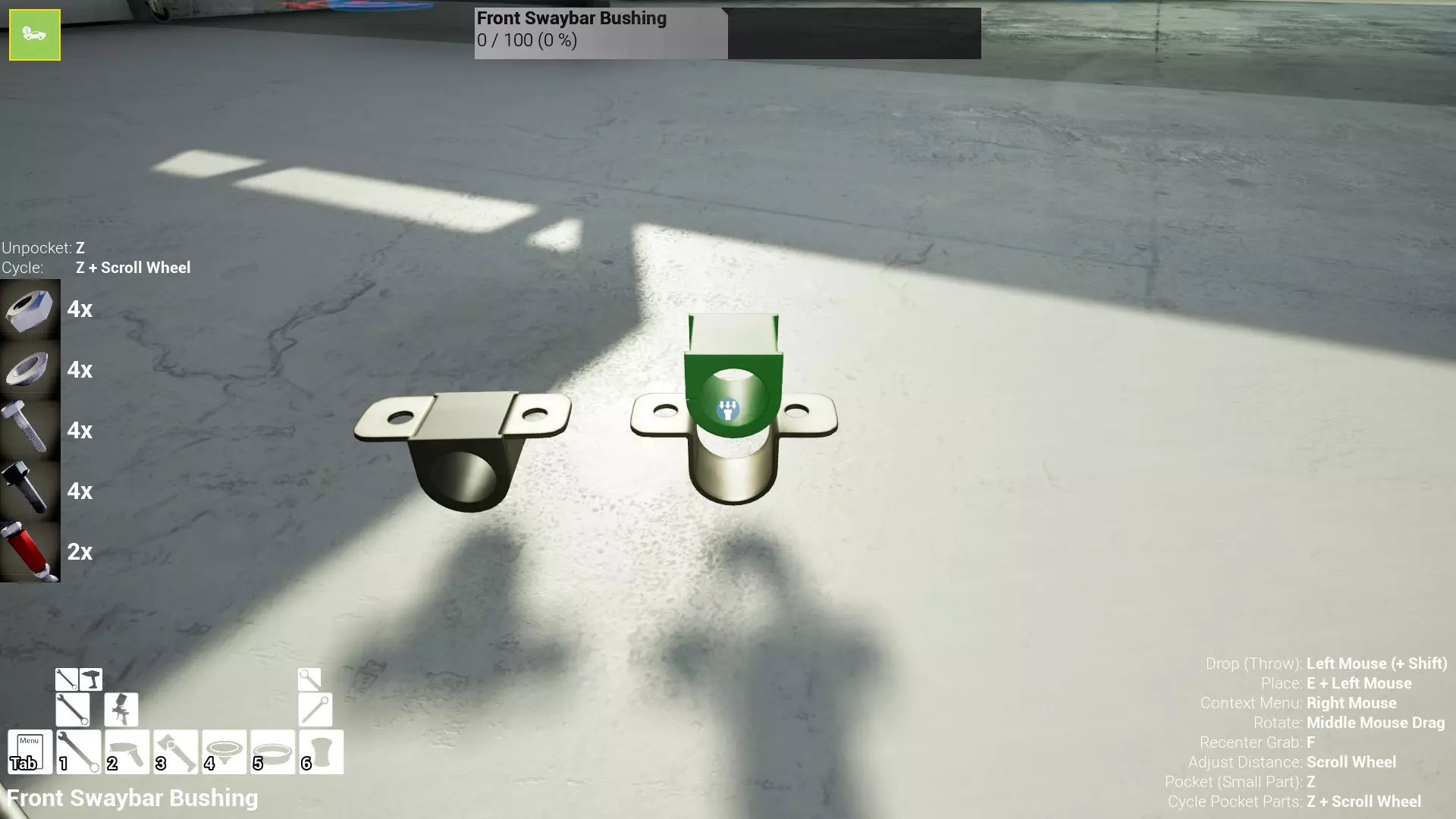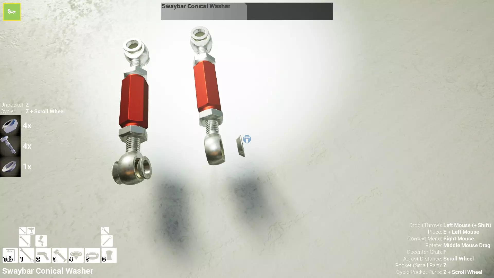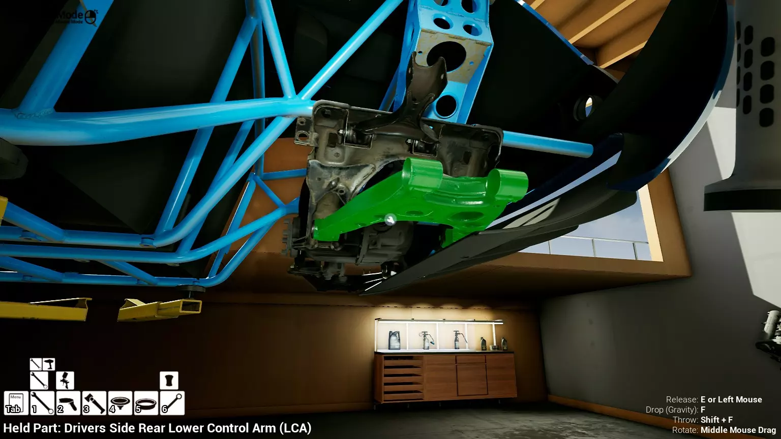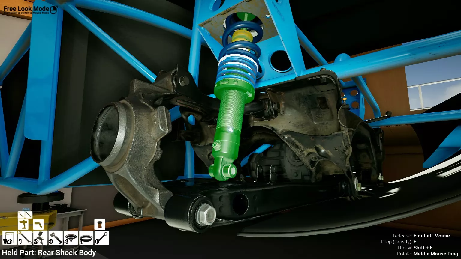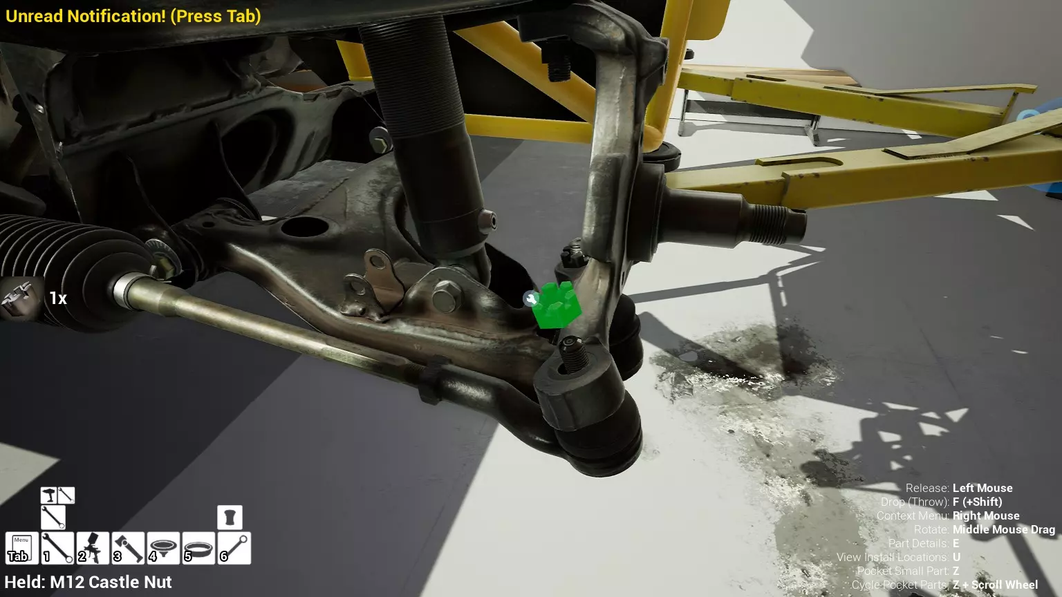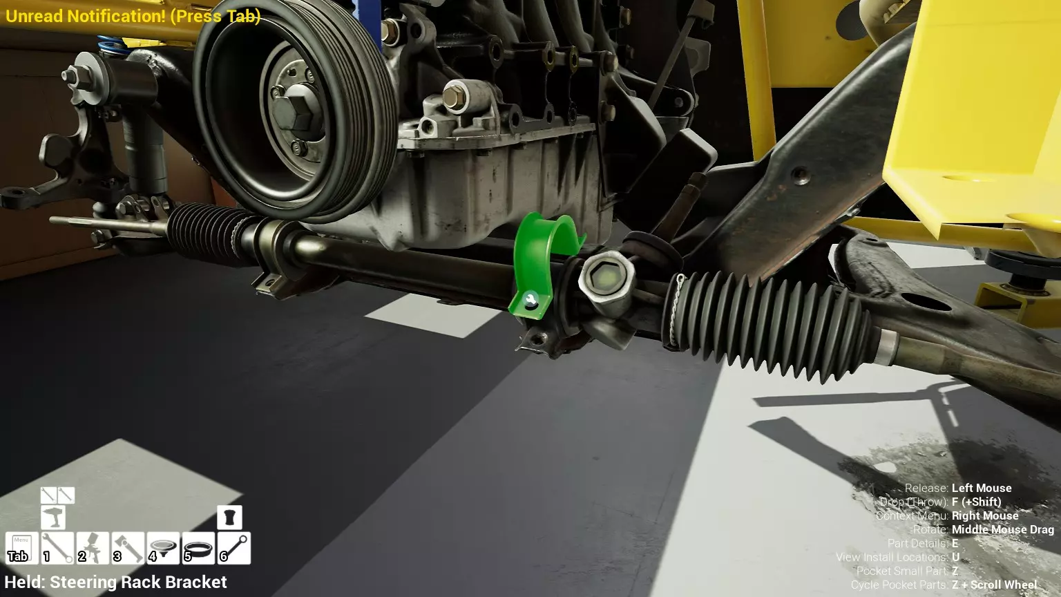 现已完全兼容141版本(2022年1月)。 本游戏处于不断变化和发展中,我一直在努力跟进并根据需要进行调整。由于开发者未提前通知,我只能通过反复试验来摸索。 不过请放心,我在将内容添加到本指南前,均已在游戏内亲自测试过所有内容,因此我确信撰写时信息是准确的。但除此之外,一切都可能随时发生变化。 请注意:游戏中并非所有可购买物品都是【磨损物品】,即它们在使用过程中不会累积磨损(至少目前不会)。 我是从一张完全空白的画布开始构建的,因此没有可重复使用的旧部件。不过,由于你很可能只是对现有的底盘进行全面检修,因此会有一些“非易损”部件可以重复使用,所以重复使用这些部件比购买新部件更合理。 因此,请仔细检查,确保你即将购买的部件确实是易损部件。你不会真的想把钱花在不需要更换的部件上。 本指南旨在帮助你从头开始构建整个底盘。 本指南不包括发动机和变速箱的安装与装配,这部分内容已在我创建的另一篇单独指南中涵盖。新的HUD系统会显示你正查看的部件,如果该部件有适用的扭矩设置,也会一并显示。 HUD现在还会列出你所查看物品的当前“磨损”程度,但这一功能仍在开发中,并非所有物品都会因使用而产生磨损。 至于旧扫描仪系统中曾有的安装说明,现在可以在独立的“手册”中找到,可通过平板电脑访问。 不过请注意,这些手册仍在完善中,因此部分内容可能存在误导。开发团队已意识到这一问题,并会及时更新和优化,但整个项目仅由两人负责,他们需要相应地优先安排时间和工作量。希望这部分内容没有让你感到过于枯燥,同时也希望它能帮助澄清一些玩家最近根据我收到的一些评论所遇到的问题。 感谢你抽出时间阅读这篇内容,也再次感谢你花时间阅读和使用这份指南。 你能购买自己的空机箱吗? 目前这个问题的简单答案是否定的。 开发者们在私下里讨论过这个问题,开发者和社区也在Discord上进行过讨论。 因此,这可能会在未来成为可用功能,但目前你还无法做到这一点。目前,最接近的方法是通过你的平板从【分类广告】中购买一辆汽车,然后自行将其拆解至只剩底盘。从这一步开始,你就可以随心所欲地对它进行操作了。 现在,底盘也不会产生任何磨损,所以无论你打算购买的汽车状况好坏,底盘都将始终保持完全相同的状态。 我只是觉得应该在这里提一下,因为这个问题经常出现。 当然,随着情况的变化,我会根据需要对这部分内容进行编辑或删除。 如何使用发动机支架和龙门吊。 这是最近很多人似乎都在纠结的问题,所以我想把这个添加到指南中。 发动机支架。你可以通过抓住支架顶部环绕着细长倒“U”形挂钩的半透明蓝色区域来升高或降低其高度,具体可参考下方截图。 当发动机放在支架上时,你还可以抓住覆盖着手柄的半透明蓝色区域,并朝着想要的方向旋转,以此来旋转发动机。你可以向任意方向旋转,且旋转的幅度没有限制。不过,本指南涵盖了整个底盘部分,包括副车架、悬架、转向系统、制动系统、车轮以及车身部件。 结合我已制作的发动机组装指南,你应该能够从头到尾打造出一整辆汽车。 我是在桌面模式下制作本指南的,因为我自己没有VR设备,所以无法保证所有信息对VR用户都100%准确。据我所知,VR模式与桌面模式的主要区别应该仅在于使用虚拟手操作而非鼠标点击,因此理论上其他所有信息都应该是通用的。如果我说错了,还请手下留情!在本指南中,我将使用全新的零件,因此如果你看到需要购买某个你已有的零件,你可以自行选择是重复使用旧零件还是购买新零件。 我决定使用全新零件,而非部分磨损的零件。这不仅能确保它们拥有最长的使用寿命,还能避免过早地再次经历零件拆卸和更换的过程。 作为参考,我所指的汽车左右两侧,是以驾驶员坐在车内并面向前方时的视角来确定的。即使你没有通读本指南,也请花点时间阅读我在末尾添加的题为【真实故事 - 引人深思】的部分。 这部分内容并非想让你对现实中自己动手修车望而却步,因为有些任务即使是新手,只要寻求并遵循专业建议和指导,也能相对轻松地完成。 不过,我想分享这个故事,是为了提醒大家,在进行维修工作时,哪怕是片刻的注意力不集中,都可能轻易演变成大麻烦。正如标题所示,这确实是一个真实的故事,引人深思。 那二三十秒的经历,我永生难忘。 在我们开始之前。需要注意的是,本指南的原始部分撰写于2019年初。从那以后,游戏和本指南都经历了多次变更,游戏内容有了大量新增和调整,本指南也相应地进行了补充和修改。让本指南一开始就引导你完成整个底盘的建造,似乎让一些新玩家感到些许困惑,他们可能在购买游戏前就阅读了本指南,或者刚购买游戏还没真正理解游戏的“运作”概念。此外,一些回归玩家可能也阅读过本指南,他们或许玩过游戏试玩版但从未购买,或者在游戏刚推出时就买了,却搁置了好几年,不了解游戏后续的发展,所以当他们最终重新进入游戏时,似乎也有些困惑。 那么我们就来澄清一下。 早在2018年12月,游戏首次在Steam抢先体验平台发布,以及2019年1月我首次撰写本指南时,玩家只需完成一些非常基础的工作,比如更换机油和轮胎,熟悉一下游戏的基本操作后,就可以完全拆解并重建自己的赛车,然后以“按场次”的方式将其出租。 这就是为什么本指南一