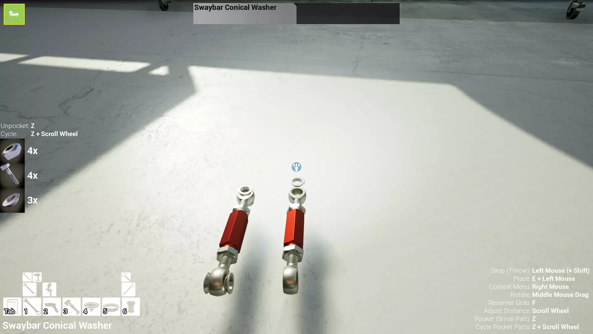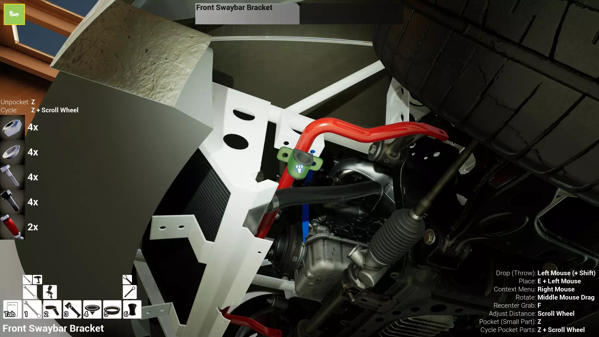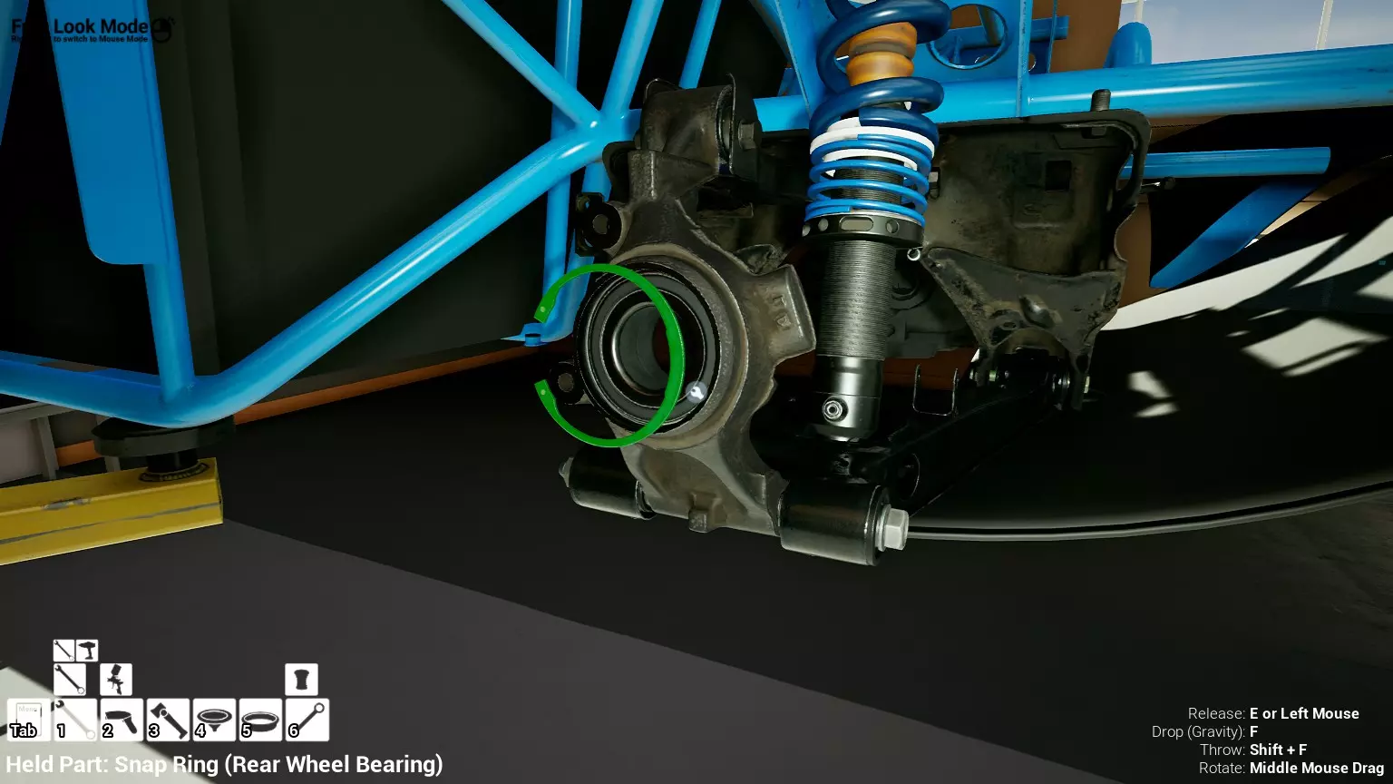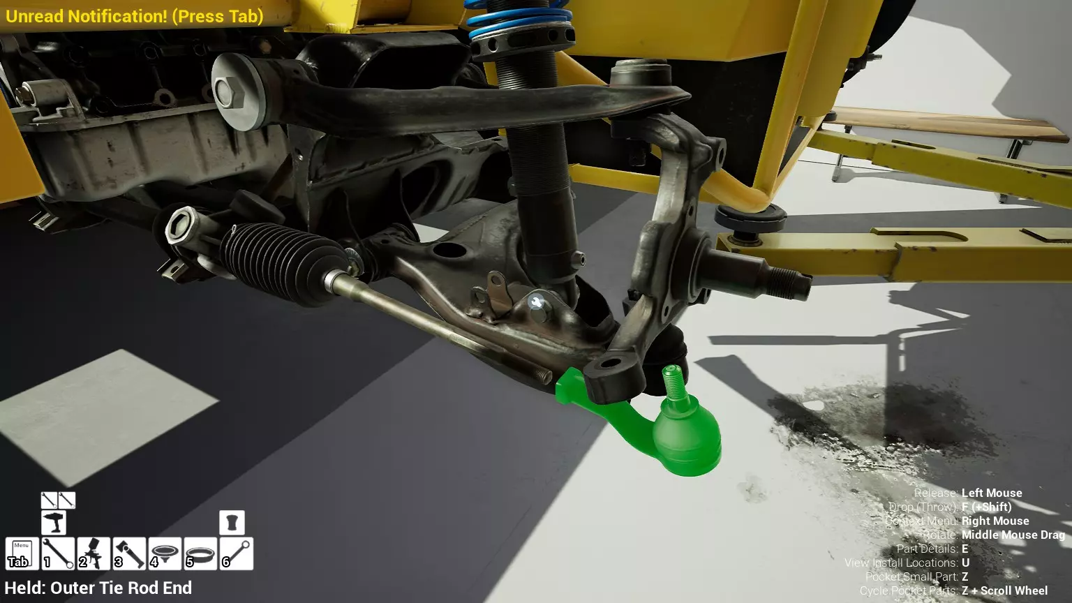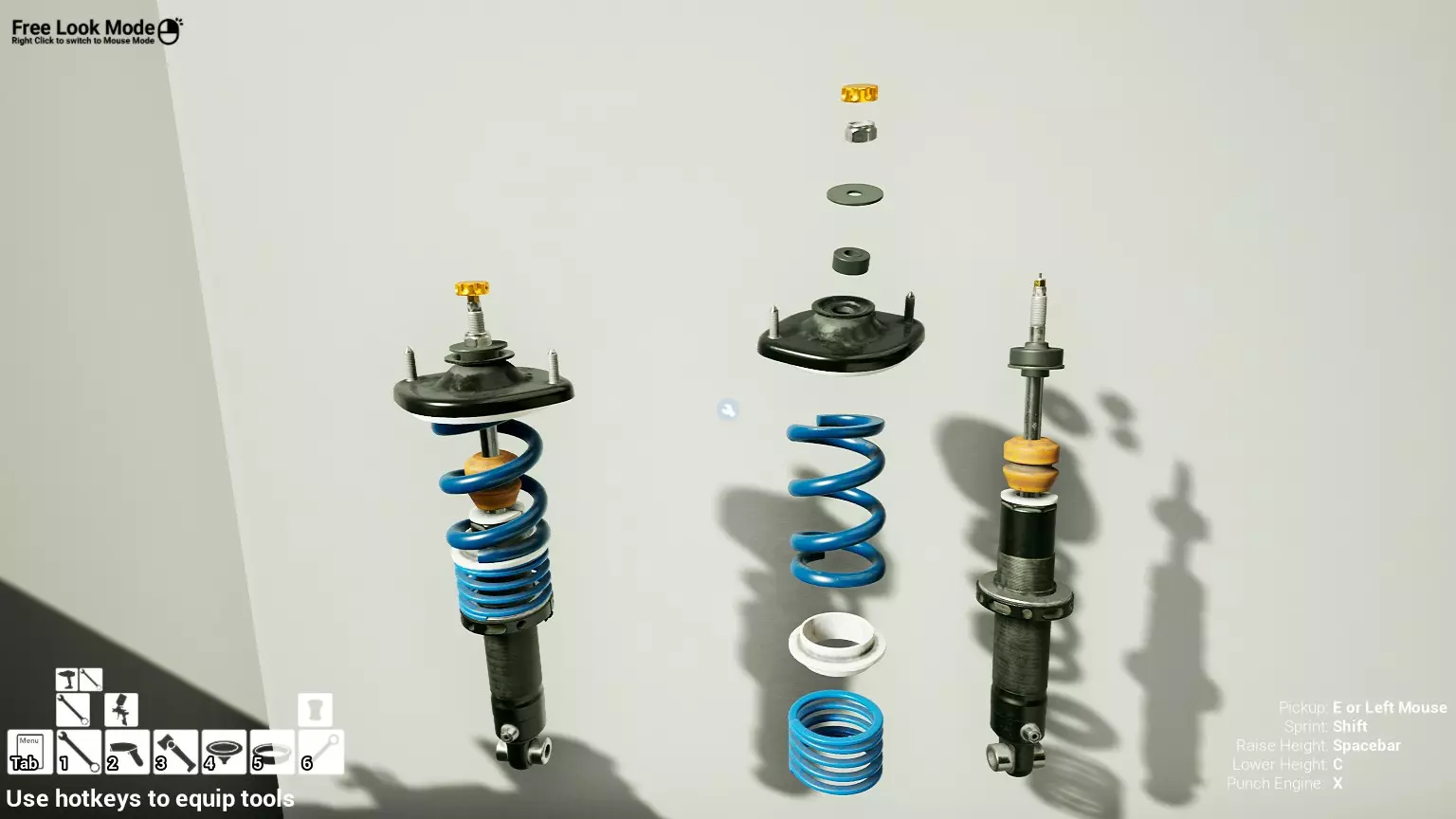 现已完全兼容141版本(2022年1月)。 本游戏处于不断变化和发展中,我一直在努力跟进并根据需要进行调整。由于开发者未提前通知,我只能通过反复试验来摸索。 不过请放心,我在将内容添加到本指南前,均已在游戏内亲自测试过所有内容,因此我确信撰写时信息是准确的。但除此之外,一切都可能随时发生变化。 请注意:游戏中并非所有可购买物品都是【磨损物品】,即它们在使用过程中不会累积磨损(至少目前不会)。 我是从一张完全空白的画布开始构建的,因此没有可重复使用的旧部件。不过,由于你很可能只是对现有的底盘进行全面检修,因此会有一些“非易损”部件可以重复使用,所以重复使用这些部件比购买新部件更合理。 因此,请仔细检查,确保你即将购买的部件确实是易损部件。你不会真的想把钱花在不需要更换的部件上。 本指南旨在帮助你从头开始构建整个底盘。 本指南不包括发动机和变速箱的安装与装配,这部分内容已在我创建的另一篇单独指南中涵盖。新的HUD系统会显示你正查看的部件,如果该部件有适用的扭矩设置,也会一并显示。 HUD现在还会列出你所查看物品的当前“磨损”程度,但这一功能仍在开发中,并非所有物品都会因使用而产生磨损。 至于旧扫描仪系统中曾有的安装说明,现在可以在独立的“手册”中找到,可通过平板电脑访问。 不过请注意,这些手册仍在完善中,因此部分内容可能存在误导。开发团队已意识到这一问题,并会及时更新和优化,但整个项目仅由两人负责,他们需要相应地优先安排时间和工作量。希望这部分内容没有让你感到过于枯燥,同时也希望它能帮助澄清一些玩家最近根据我收到的一些评论所遇到的问题。 感谢你抽出时间阅读这篇内容,也再次感谢你花时间阅读和使用这份指南。 你能购买自己的空机箱吗? 目前这个问题的简单答案是否定的。 开发者们在私下里讨论过这个问题,开发者和社区也在Discord上进行过讨论。 因此,这可能会在未来成为可用功能,但目前你还无法做到这一点。目前,最接近的方法是通过你的平板从【分类广告】中购买一辆汽车,然后自行将其拆解至只剩底盘。从这一步开始,你就可以随心所欲地对它进行操作了。 现在,底盘也不会产生任何磨损,所以无论你打算购买的汽车状况好坏,底盘都将始终保持完全相同的状态。 我只是觉得应该在这里提一下,因为这个问题经常出现。 当然,随着情况的变化,我会根据需要对这部分内容进行编辑或删除。 如何使用发动机支架和龙门吊。 这是最近很多人似乎都在纠结的问题,所以我想把这个添加到指南中。 发动机支架。你可以通过抓住支架顶部环绕着细长倒“U”形挂钩的半透明蓝色区域来升高或降低其高度,具体可参考下方截图。 当发动机放在支架上时,你还可以抓住覆盖着手柄的半透明蓝色区域,并朝着想要的方向旋转,以此来旋转发动机。你可以向任意方向旋转,且旋转的幅度没有限制。不过,本指南涵盖了整个底盘部分,包括副车架、悬架、转向系统、制动系统、车轮以及车身部件。 结合我已制作的发动机组装指南,你应该能够从头到尾打造出一整辆汽车。 我是在桌面模式下制作本指南的,因为我自己没有VR设备,所以无法保证所有信息对VR用户都100%准确。据我所知,VR模式与桌面模式的主要区别应该仅在于使用虚拟手操作而非鼠标点击,因此理论上其他所有信息都应该是通用的。如果我说错了,还请手下留情!在本指南中,我将使用全新的零件,因此如果你看到需要购买某个你已有的零件,你可以自行选择是重复使用旧零件还是购买新零件。 我决定使用全新零件,而非部分磨损的零件。这不仅能确保它们拥有最长的使用寿命,还能避免过早地再次经历零件拆卸和更换的过程。 作为参考,我所指的汽车左右两侧,是以驾驶员坐在车内并面向前方时的视角来确定的。即使你没有通读本指南,也请花点时间阅读我在末尾添加的题为【真实故事 - 引人深思】的部分。 这部分内容并非想让你对现实中自己动手修车望而却步,因为有些任务即使是新手,只要寻求并遵循专业建议和指导,也能相对轻松地完成。 不过,我想分享这个故事,是为了提醒大家,在进行维修工作时,哪怕是片刻的注意力不集中,都可能轻易演变成大麻烦。正如标题所示,这确实是一个真实的故事,引人深思。 那二三十秒的经历,我永生难忘。 在我们开始之前。需要注意的是,本指南的原始部分撰写于2019年初。从那以后,游戏和本指南都经历了多次变更,游戏内容有了大量新增和调整,本指南也相应地进行了补充和修改。让本指南一开始就引导你完成整个底盘的建造,似乎让一些新玩家感到些许困惑,他们可能在购买游戏前就阅读了本指南,或者刚购买游戏还没真正理解游戏的“运作”概念。此外,一些回归玩家可能也阅读过本指南,他们或许玩过游戏试玩版但从未购买,或者在游戏刚推出时就买了,却搁置了好几年,不了解游戏后续的发展,所以当他们最终重新进入游戏时,似乎也有些困惑。 那么我们就来澄清一下。 早在2018年12月,游戏首次在Steam抢先体验平台发布,以及2019年1月我首次撰写本指南时,玩家只需完成一些非常基础的工作,比如更换机油和轮胎,熟悉一下游戏的基本操作后,就可以完全拆解并重建自己的赛车,然后以“按场次”的方式将其出租。 这就是为什么本指南一