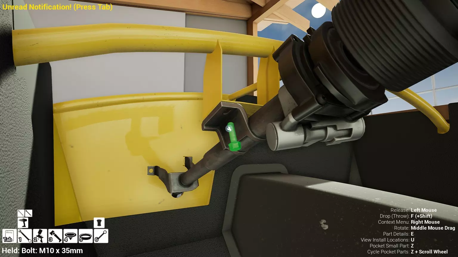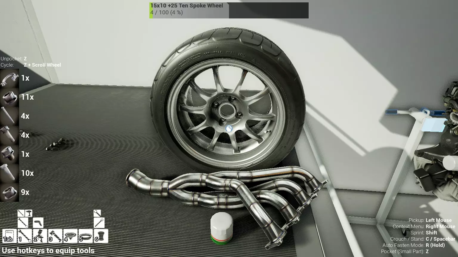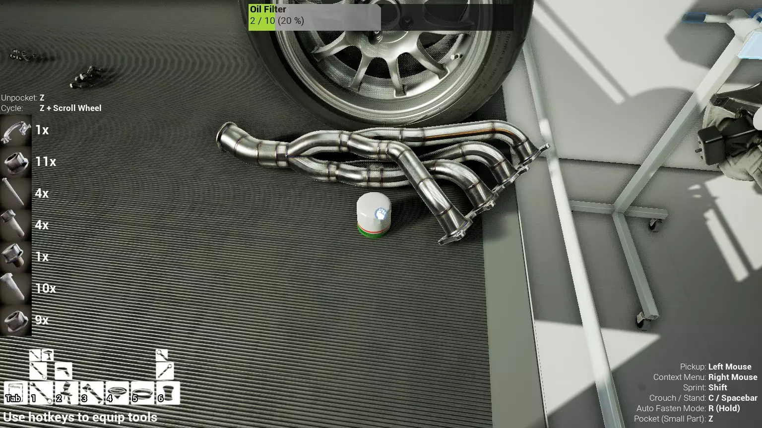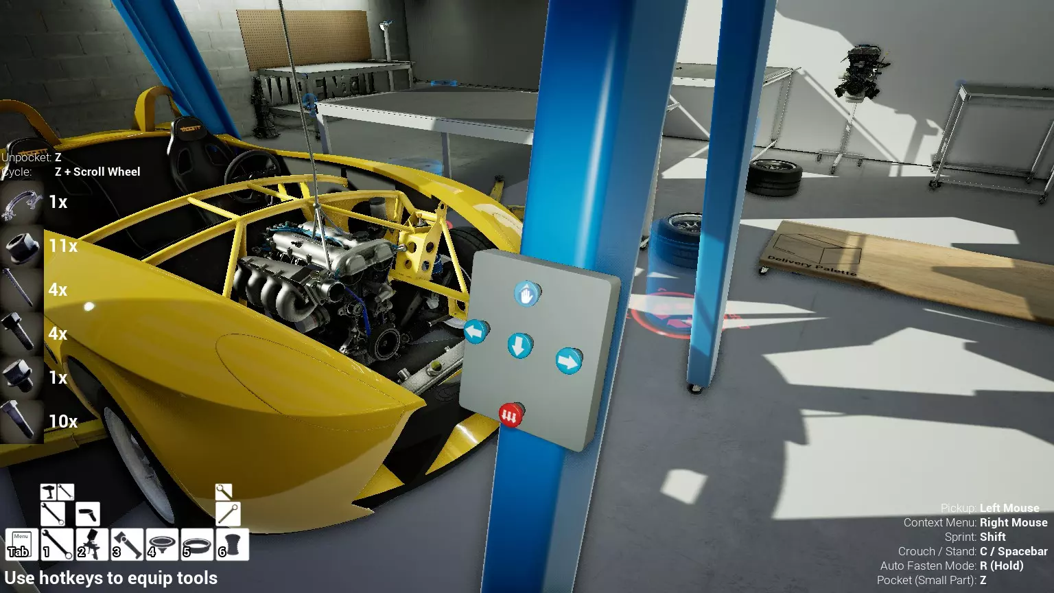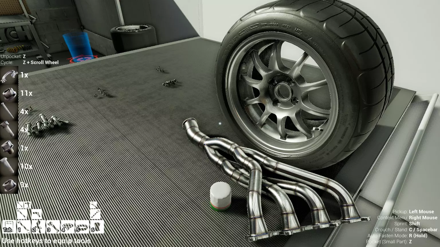 现已完全兼容141版本(2022年1月)。 本游戏处于不断变化和发展中,我一直在努力跟进并根据需要进行调整。由于开发者未提前通知,我只能通过反复试验来摸索。 不过请放心,我在将内容添加到本指南前,均已在游戏内亲自测试过所有内容,因此我确信撰写时信息是准确的。但除此之外,一切都可能随时发生变化。 请注意:游戏中并非所有可购买物品都是【磨损物品】,即它们在使用过程中不会累积磨损(至少目前不会)。 我是从一张完全空白的画布开始构建的,因此没有可重复使用的旧部件。不过,由于你很可能只是对现有的底盘进行全面检修,因此会有一些“非易损”部件可以重复使用,所以重复使用这些部件比购买新部件更合理。 因此,请仔细检查,确保你即将购买的部件确实是易损部件。你不会真的想把钱花在不需要更换的部件上。 本指南旨在帮助你从头开始构建整个底盘。 本指南不包括发动机和变速箱的安装与装配,这部分内容已在我创建的另一篇单独指南中涵盖。新的HUD系统会显示你正查看的部件,如果该部件有适用的扭矩设置,也会一并显示。 HUD现在还会列出你所查看物品的当前“磨损”程度,但这一功能仍在开发中,并非所有物品都会因使用而产生磨损。 至于旧扫描仪系统中曾有的安装说明,现在可以在独立的“手册”中找到,可通过平板电脑访问。 不过请注意,这些手册仍在完善中,因此部分内容可能存在误导。开发团队已意识到这一问题,并会及时更新和优化,但整个项目仅由两人负责,他们需要相应地优先安排时间和工作量。希望这部分内容没有让你感到过于枯燥,同时也希望它能帮助澄清一些玩家最近根据我收到的一些评论所遇到的问题。 感谢你抽出时间阅读这篇内容,也再次感谢你花时间阅读和使用这份指南。 你能购买自己的空机箱吗? 目前这个问题的简单答案是否定的。 开发者们在私下里讨论过这个问题,开发者和社区也在Discord上进行过讨论。 因此,这可能会在未来成为可用功能,但目前你还无法做到这一点。目前,最接近的方法是通过你的平板从【分类广告】中购买一辆汽车,然后自行将其拆解至只剩底盘。从这一步开始,你就可以随心所欲地对它进行操作了。 现在,底盘也不会产生任何磨损,所以无论你打算购买的汽车状况好坏,底盘都将始终保持完全相同的状态。 我只是觉得应该在这里提一下,因为这个问题经常出现。 当然,随着情况的变化,我会根据需要对这部分内容进行编辑或删除。 如何使用发动机支架和龙门吊。 这是最近很多人似乎都在纠结的问题,所以我想把这个添加到指南中。 发动机支架。你可以通过抓住支架顶部环绕着细长倒“U”形挂钩的半透明蓝色区域来升高或降低其高度,具体可参考下方截图。 当发动机放在支架上时,你还可以抓住覆盖着手柄的半透明蓝色区域,并朝着想要的方向旋转,以此来旋转发动机。你可以向任意方向旋转,且旋转的幅度没有限制。不过,本指南涵盖了整个底盘部分,包括副车架、悬架、转向系统、制动系统、车轮以及车身部件。 结合我已制作的发动机组装指南,你应该能够从头到尾打造出一整辆汽车。 我是在桌面模式下制作本指南的,因为我自己没有VR设备,所以无法保证所有信息对VR用户都100%准确。据我所知,VR模式与桌面模式的主要区别应该仅在于使用虚拟手操作而非鼠标点击,因此理论上其他所有信息都应该是通用的。如果我说错了,还请手下留情!在本指南中,我将使用全新的零件,因此如果你看到需要购买某个你已有的零件,你可以自行选择是重复使用旧零件还是购买新零件。 我决定使用全新零件,而非部分磨损的零件。这不仅能确保它们拥有最长的使用寿命,还能避免过早地再次经历零件拆卸和更换的过程。 作为参考,我所指的汽车左右两侧,是以驾驶员坐在车内并面向前方时的视角来确定的。即使你没有通读本指南,也请花点时间阅读我在末尾添加的题为【真实故事 - 引人深思】的部分。 这部分内容并非想让你对现实中自己动手修车望而却步,因为有些任务即使是新手,只要寻求并遵循专业建议和指导,也能相对轻松地完成。 不过,我想分享这个故事,是为了提醒大家,在进行维修工作时,哪怕是片刻的注意力不集中,都可能轻易演变成大麻烦。正如标题所示,这确实是一个真实的故事,引人深思。 那二三十秒的经历,我永生难忘。 在我们开始之前。需要注意的是,本指南的原始部分撰写于2019年初。从那以后,游戏和本指南都经历了多次变更,游戏内容有了大量新增和调整,本指南也相应地进行了补充和修改。让本指南一开始就引导你完成整个底盘的建造,似乎让一些新玩家感到些许困惑,他们可能在购买游戏前就阅读了本指南,或者刚购买游戏还没真正理解游戏的“运作”概念。此外,一些回归玩家可能也阅读过本指南,他们或许玩过游戏试玩版但从未购买,或者在游戏刚推出时就买了,却搁置了好几年,不了解游戏后续的发展,所以当他们最终重新进入游戏时,似乎也有些困惑。 那么我们就来澄清一下。 早在2018年12月,游戏首次在Steam抢先体验平台发布,以及2019年1月我首次撰写本指南时,玩家只需完成一些非常基础的工作,比如更换机油和轮胎,熟悉一下游戏的基本操作后,就可以完全拆解并重建自己的赛车,然后以“按场次”的方式将其出租。 这就是为什么本指南一